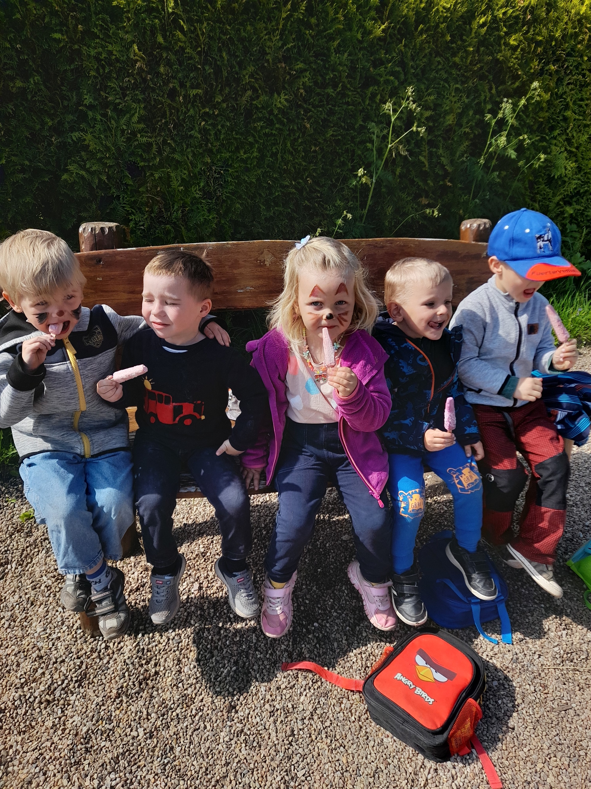 Svátek všech dětí jsme společně slavili i v mateřské škole. Děti ze třídy Kočiček a Vrabčáků hrály stopovanou zakončenou hledáním pokladu, na trase za pokladem plnily různé úkoly. Broučci jeli na krátký výlet, kde si zadováděly na hřišti a zahrály několik her. Za odvahu a statečnost při plnění úkolů a her všechny děti získaly krásný diplom. Odměnou byla i zmrzlina či nanuk. Všichni jsme byli moc rádi, že se nám tento den vydařil.