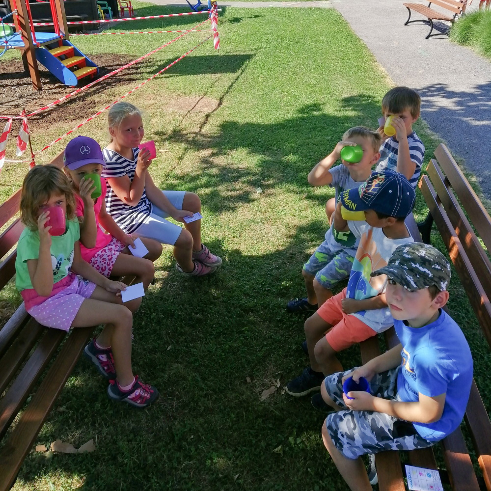 V úterý jsme uspořádali koloběžkové závody, děti nakreslily obrázky ke sportům a užívali jsme si sluníčka na zahrádce.