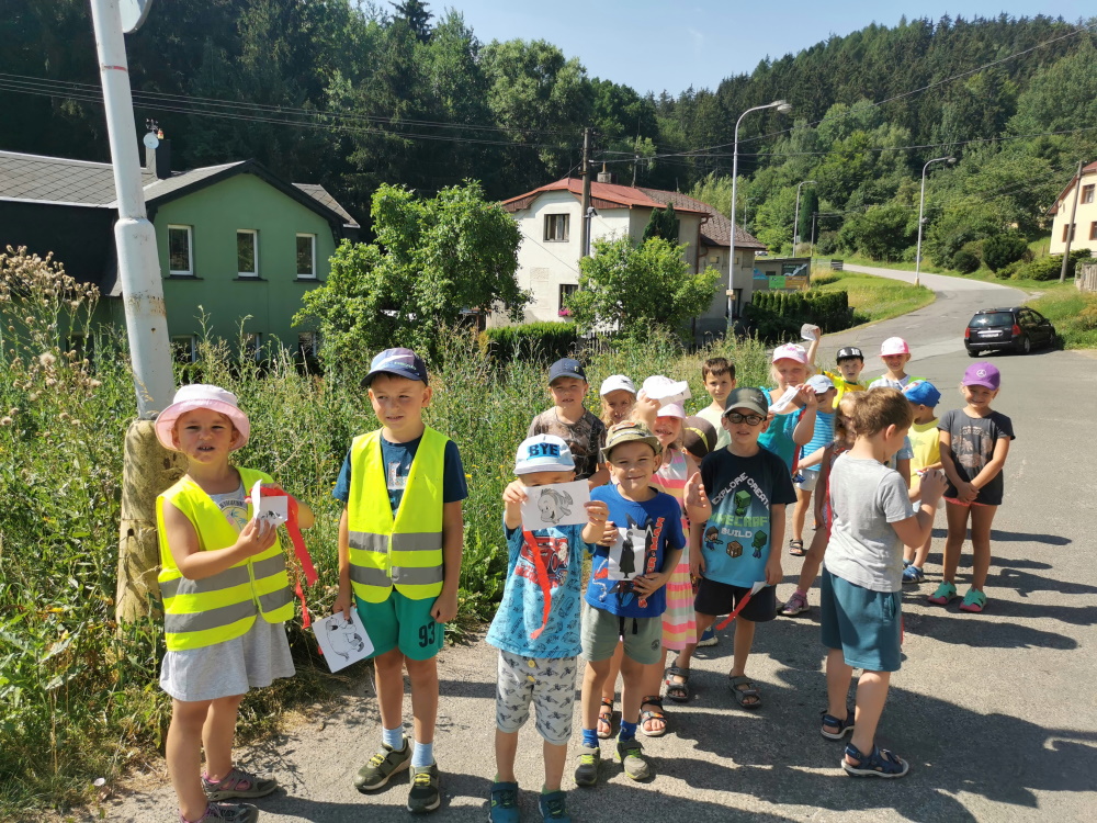 V úterý jsme se vydaly na hřiště, kde děti kreslily pomocí kříd perníkovou chaloupku, Karkulku nebo vlka.