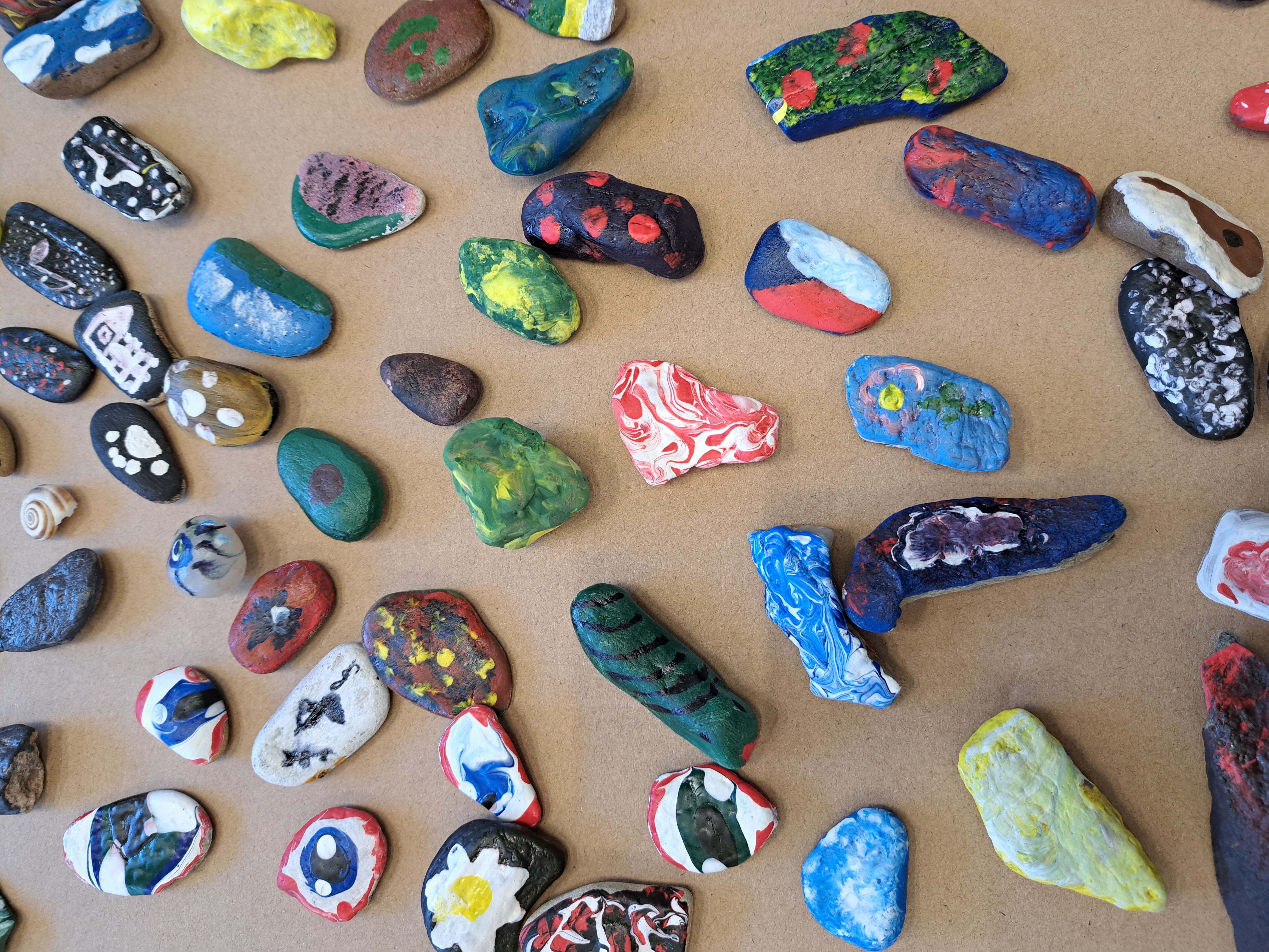 S dětmi jsme namalovali spoustu malých kamínků, které, jak doufáme, se budou líbit a trochu někomu pomohou.