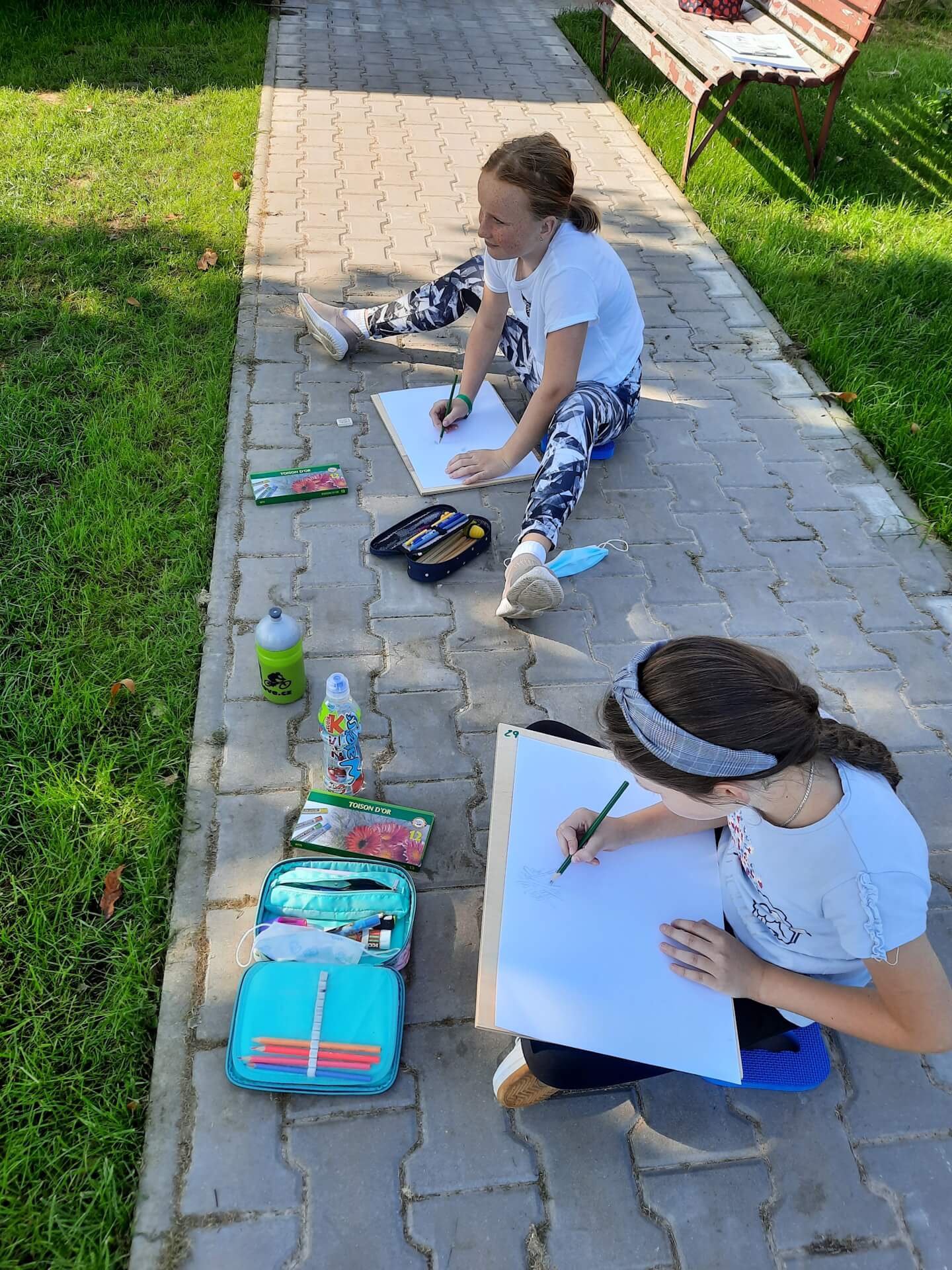 Než se ochladí, snažíme se kreslit a malovat v plenéru. S pátou a osmou třídou jsme vyrazili na zahradu, kde jsme se zaměřili na indiánské týpí. Děti se posadily okolo stavby a tužkou a křídami se snažily zachytit krásu okolní přírody a stavby samotné. Venkovní kreslení je mezi žáky oblíbené. Posedí si na čerstvém vzduchu, popovídají si a zkusí si něco nového. Pro tento případ venkovní aktivity jsme do školy pořídili podsedáčky, aby se děti nezamazaly od trávy, a desky ze dřeva, které slouží jako tvrdá podložka pod čtvrtky. Jak se jim kresby povedly, to posuďte sami v galerii.