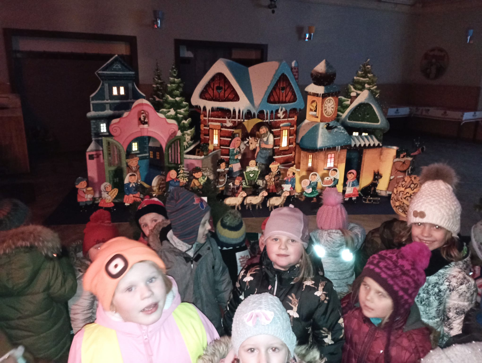 Betlém je umístěn v tanečním sále a je krásně osvětlen, děti našly nejen Ježíška v kolébce, ale také pastýře i děti, které nosí Ježíškovi dary, ale také zasněženou kočičku. Které jsme museli zazpívat.