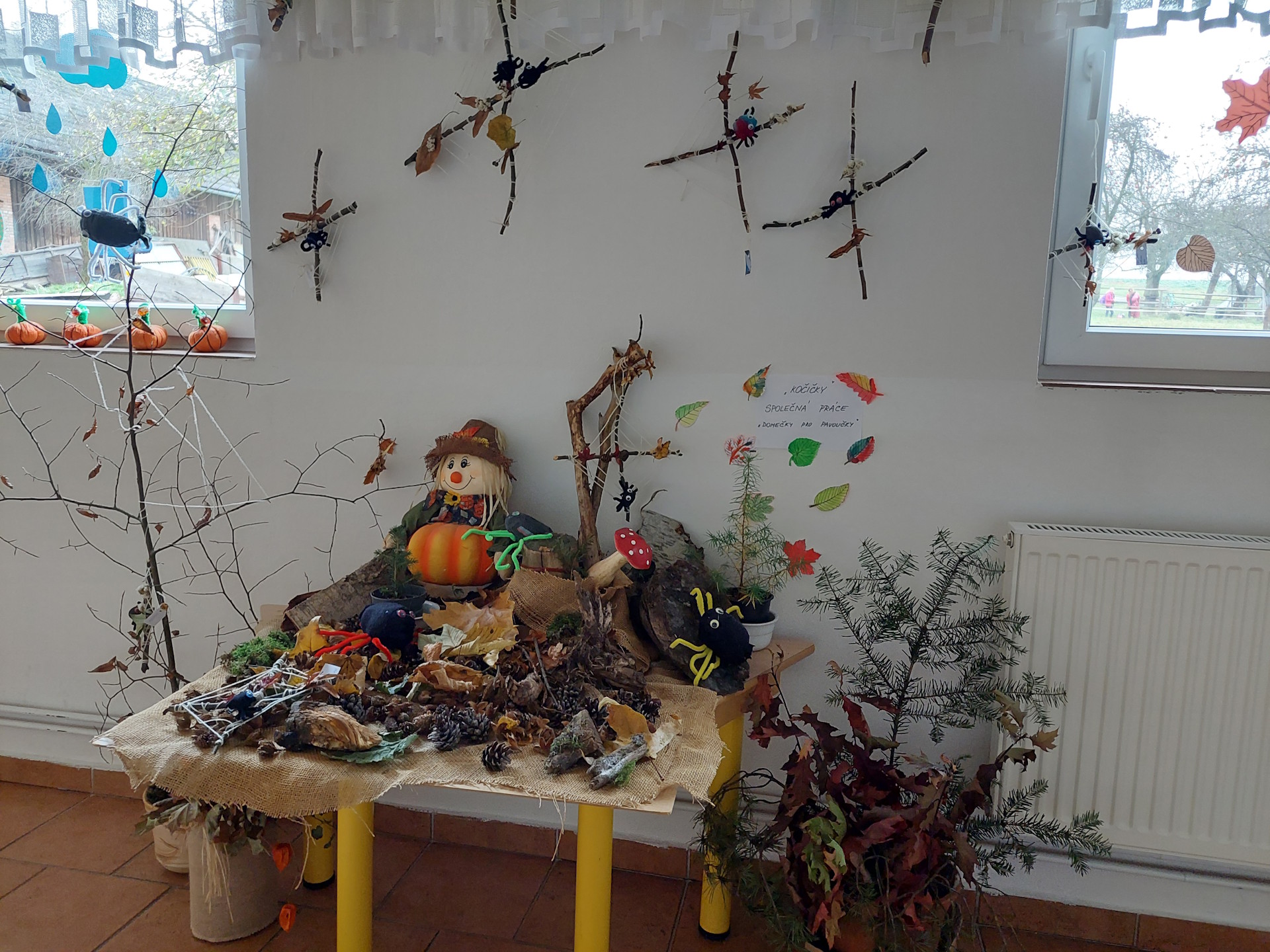 Podzim maluje všemi barvami, a proto se děti a paní učitelky v mateřské škole rozhodly, že vytvoří podzimní dekorace za použití přírodních materiálů. Děti ze třídy Broučků postavily labyrint pro lesní zvířata. Vrabčáci udělali domeček pro lesní skřítky. Kočičky vyrobily pavučinky pro pavoučky s lesním zátiším. Všechny výtvory jsou vystaveny na chodbě mateřské školy a rodiče mohou posoudit, jak se dekorace povedly.