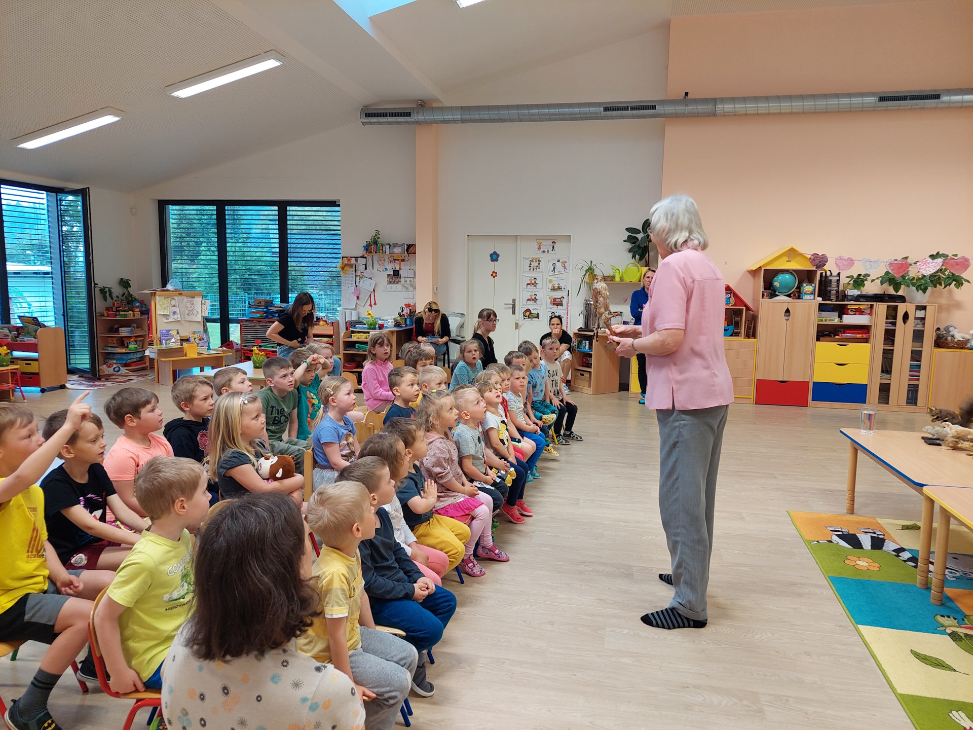 V úterý 23.5.2023 nás v MŠ navštívila paní Dobroruková. Přivezla dětem ukázat vycpané ptactvo a pár drobných zvířat. Dětem povyprávěla něco málo o životě těchto volně žijících živočichů, například se dozvěděly kdo patří do skupiny býložravců, masožravců a všežravců. Také měli možnost si zblízka prohlédnout všechny vycpaniny. Na závěr děti prozkoušela z názvů zvířat a ptáků, děti se s chutí do diskuze zapojovaly.