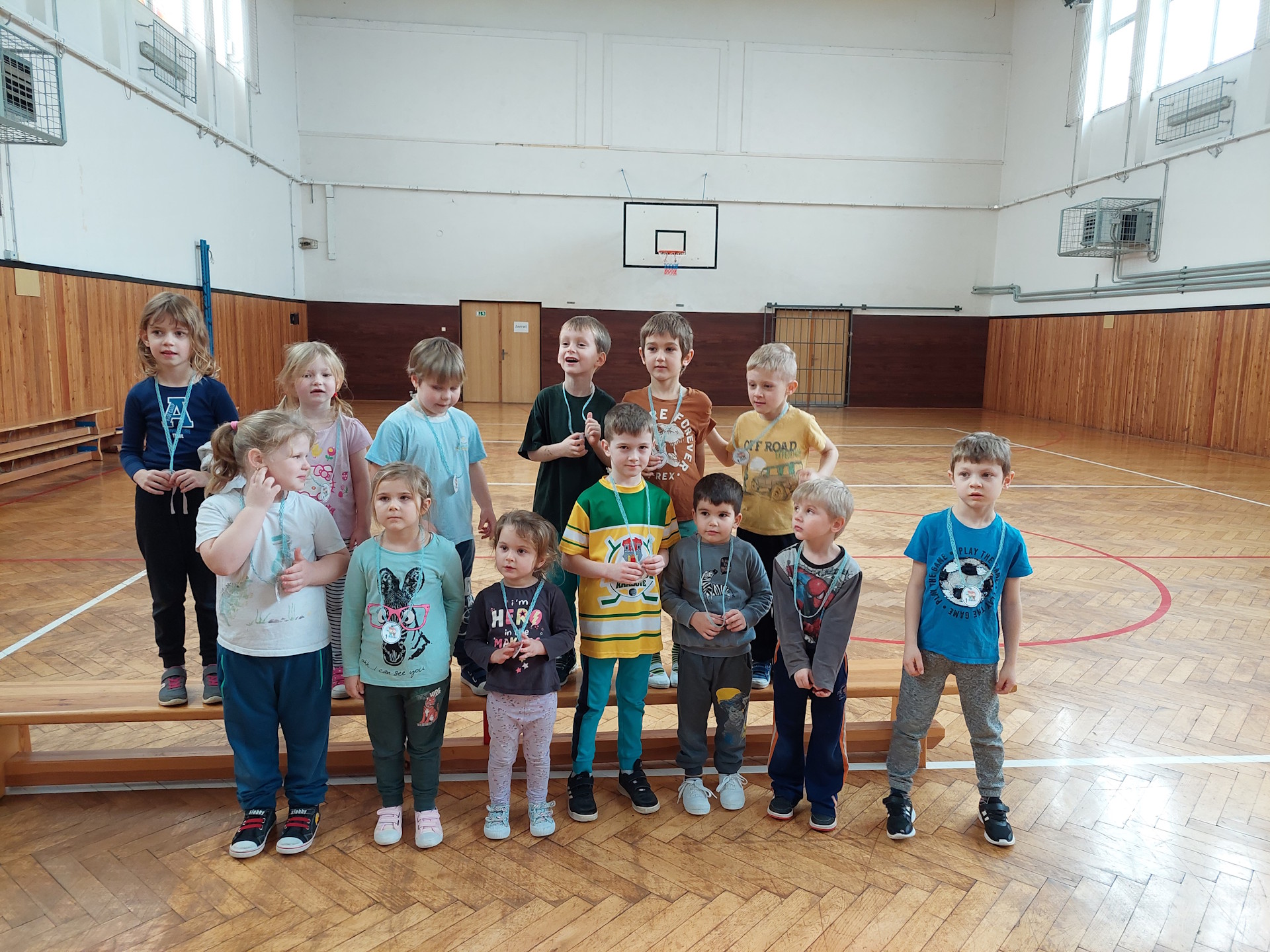 Sníh ne a ne přijít, tak děti od "Vrabčáků" musely zimní olympiádu přesunout do tělocvičny ZŠ.