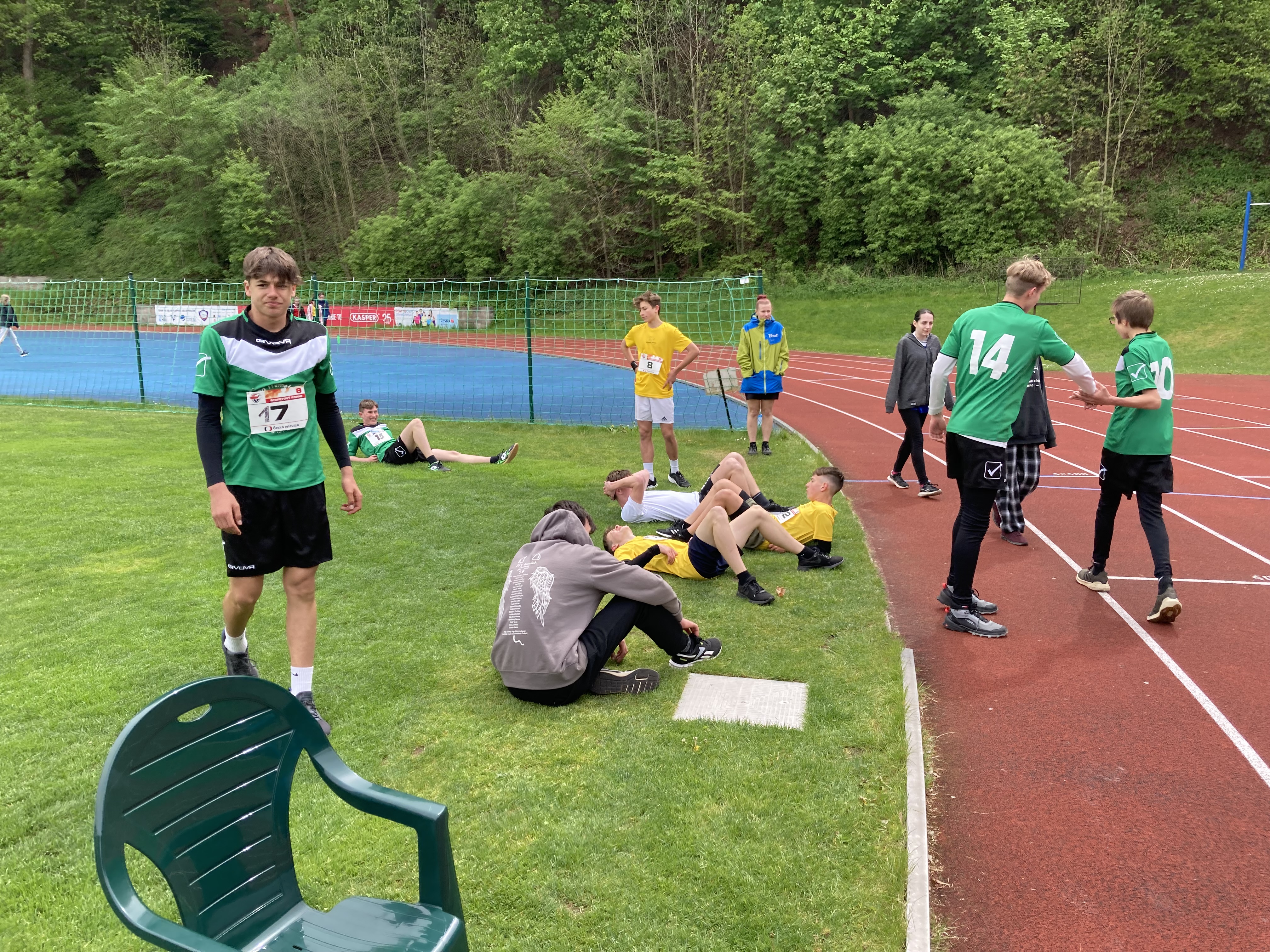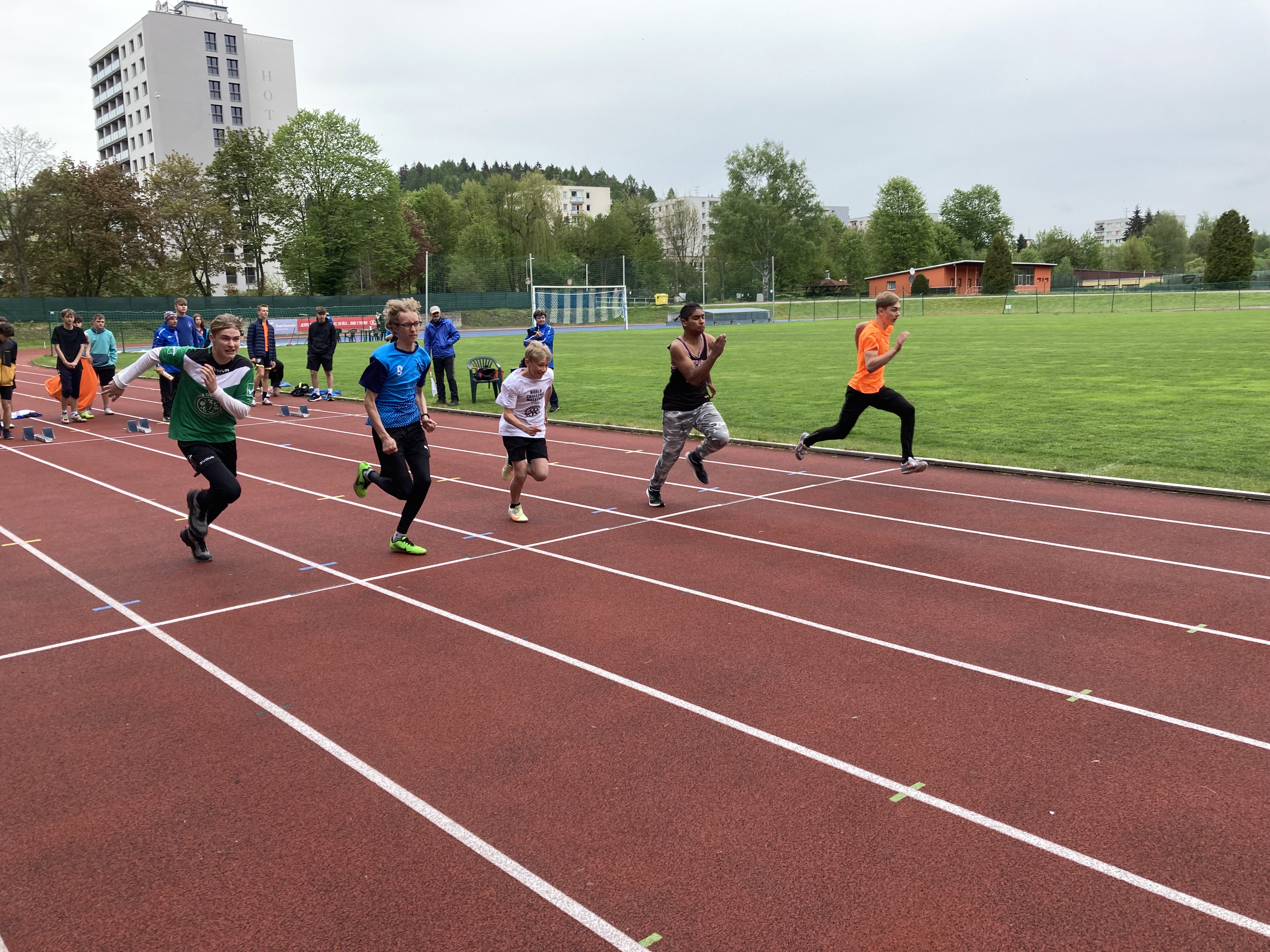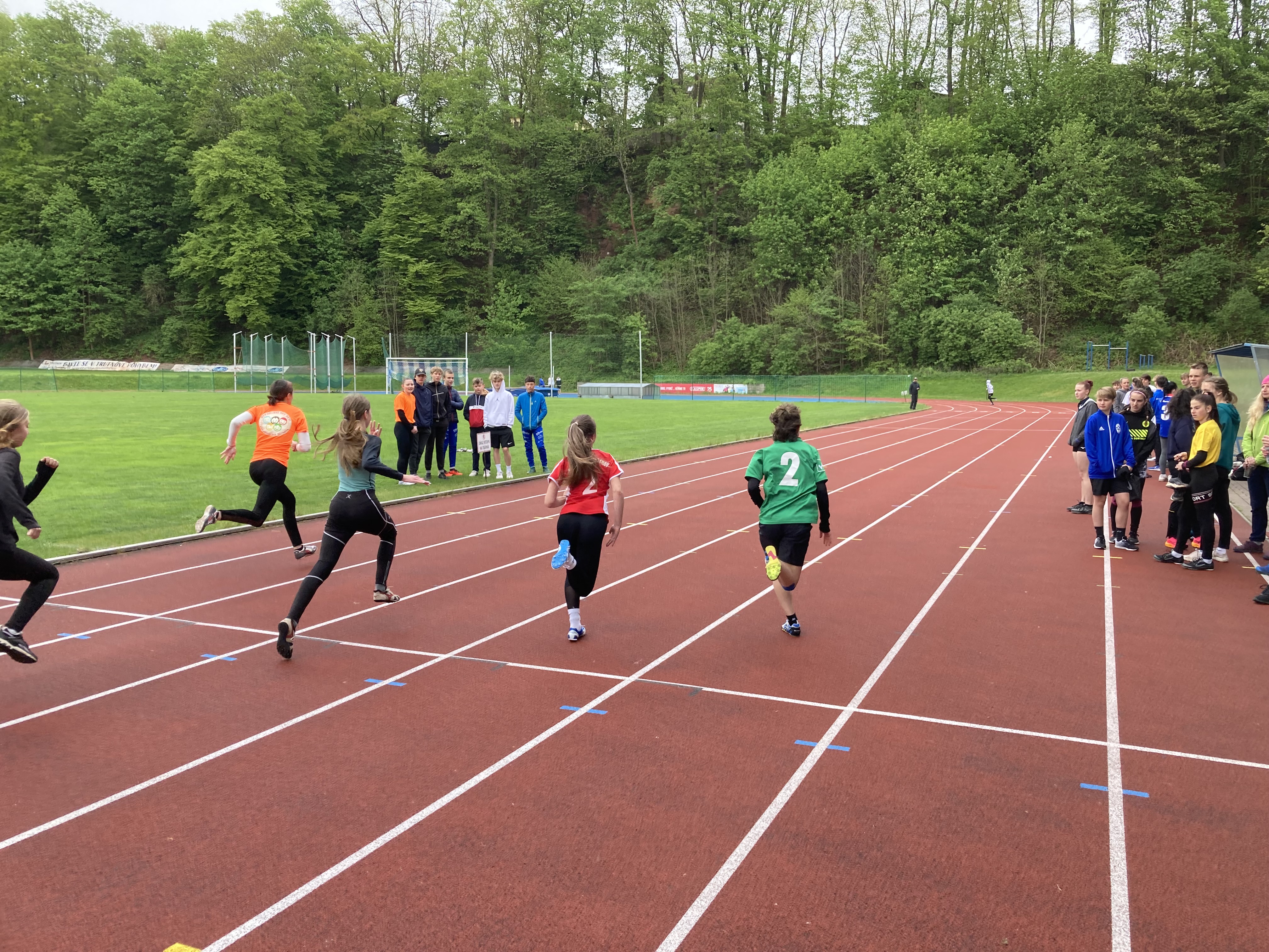 Po svých mladších spolužácích okusili nástrahy atletického stadionu v Trutnově i jejich starší kolegové. Družstvo dívek i chlapců soutěžilo v disciplínách atletického čtyřboje (sprint 60m, běh 800/1000m, skok vysoký/daleký, hod míčkem/vrh koulí). Pro oba týmu byla nachystána konkurence dalších devíti škol z okresu. Jak se již stává tradicí, větším nepřítelem bylo však počasí, které ani zdaleka nepřipomínalo letní atletický meeting. To se stalo osudné týmu chlapců, když je svalové zranění připravilo o maličko lepší výsledek. V součtu jsme ale nepředváděli špatné výkony a několika borcům se povedlo vyšponovat svá letošní maxima, když jsme snad v žádné z disciplín vyloženě nepropadli. Nějaký nadstandartní výkon, který by nás vytáhl výše se ale bohužel nedostavil. Chlapci obsadili tedy 7. místo, dívky ještě o příčku výš = 6. místo. Z dívek nasbírala nejvíce bodů (1 289 b.) Valča Dlabolová a z chlapců Jakub Fenik (1 525 b.).