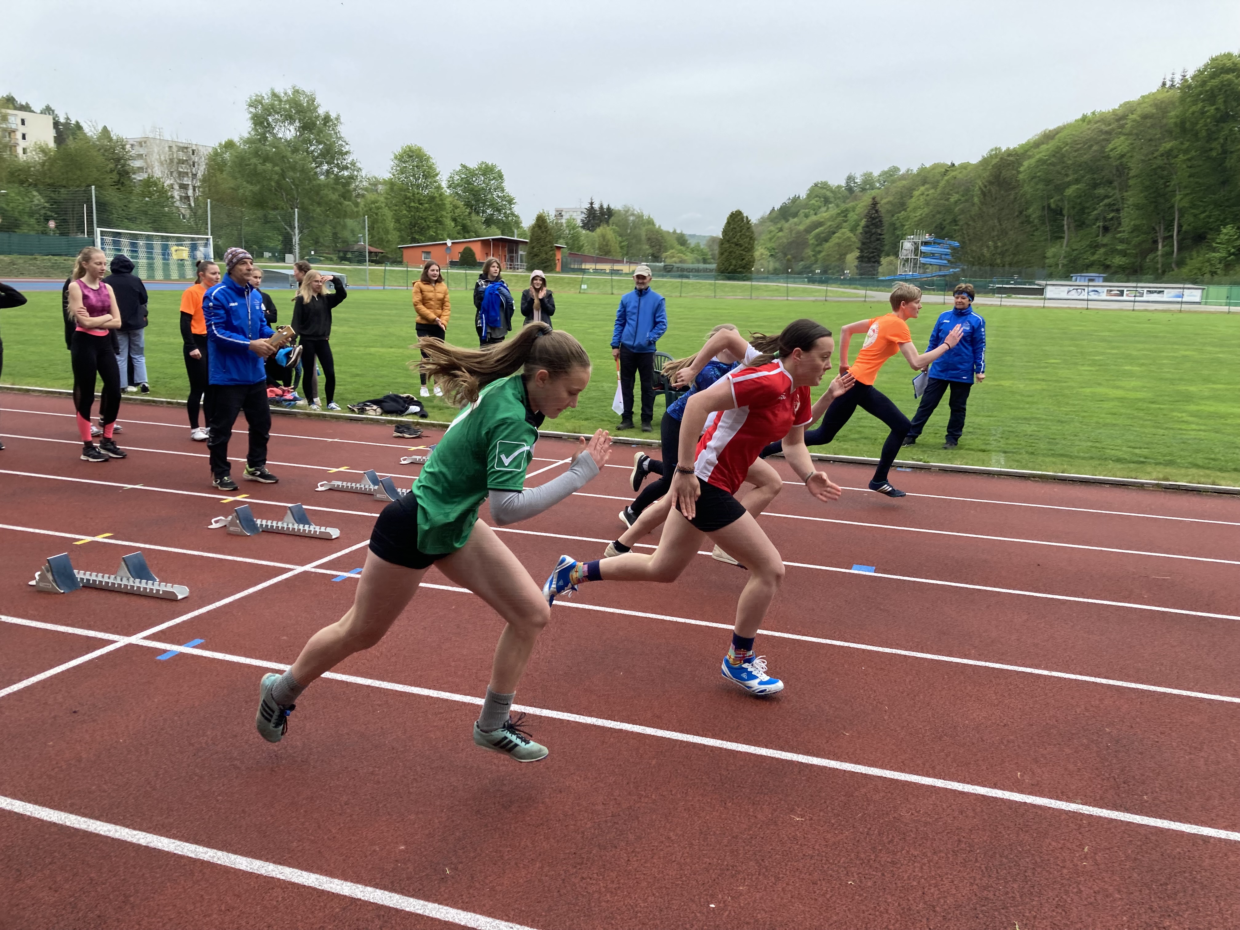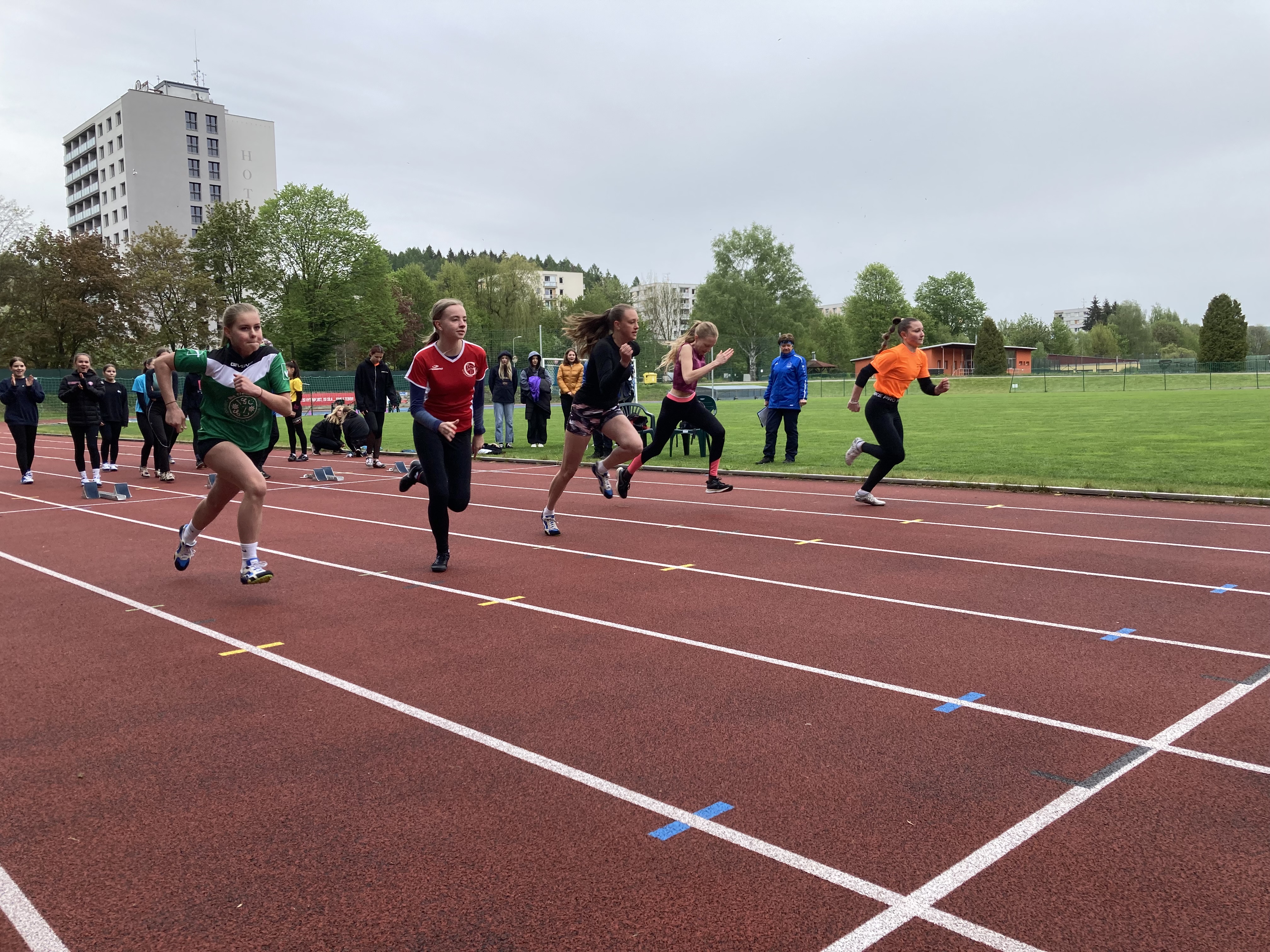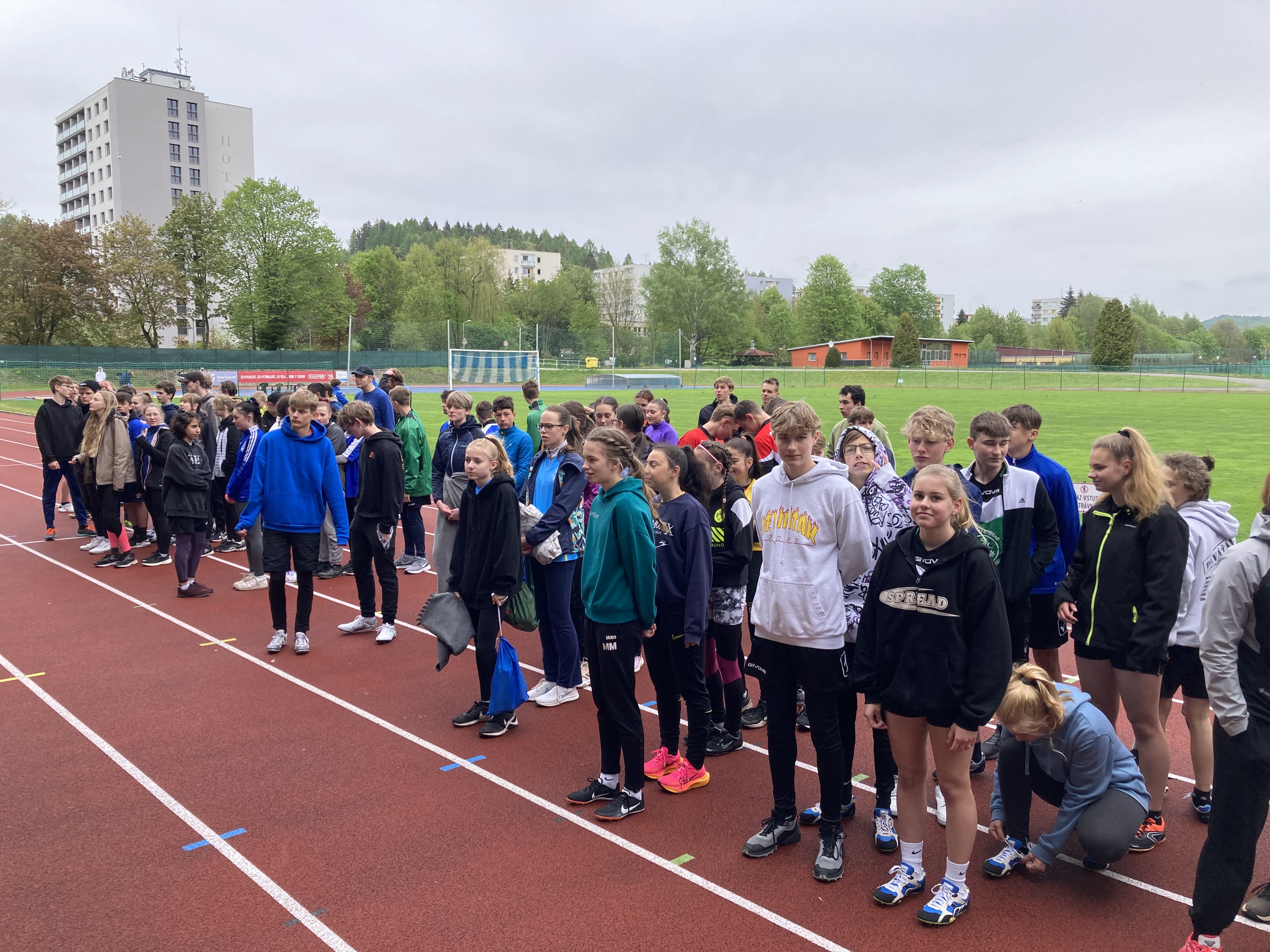 Po svých mladších spolužácích okusili nástrahy atletického stadionu v Trutnově i jejich starší kolegové. Družstvo dívek i chlapců soutěžilo v disciplínách atletického čtyřboje (sprint 60m, běh 800/1000m, skok vysoký/daleký, hod míčkem/vrh koulí). Pro oba týmu byla nachystána konkurence dalších devíti škol z okresu. Jak se již stává tradicí, větším nepřítelem bylo však počasí, které ani zdaleka nepřipomínalo letní atletický meeting. To se stalo osudné týmu chlapců, když je svalové zranění připravilo o maličko lepší výsledek. V součtu jsme ale nepředváděli špatné výkony a několika borcům se povedlo vyšponovat svá letošní maxima, když jsme snad v žádné z disciplín vyloženě nepropadli. Nějaký nadstandartní výkon, který by nás vytáhl výše se ale bohužel nedostavil. Chlapci obsadili tedy 7. místo, dívky ještě o příčku výš = 6. místo. Z dívek nasbírala nejvíce bodů (1 289 b.) Valča Dlabolová a z chlapců Jakub Fenik (1 525 b.).