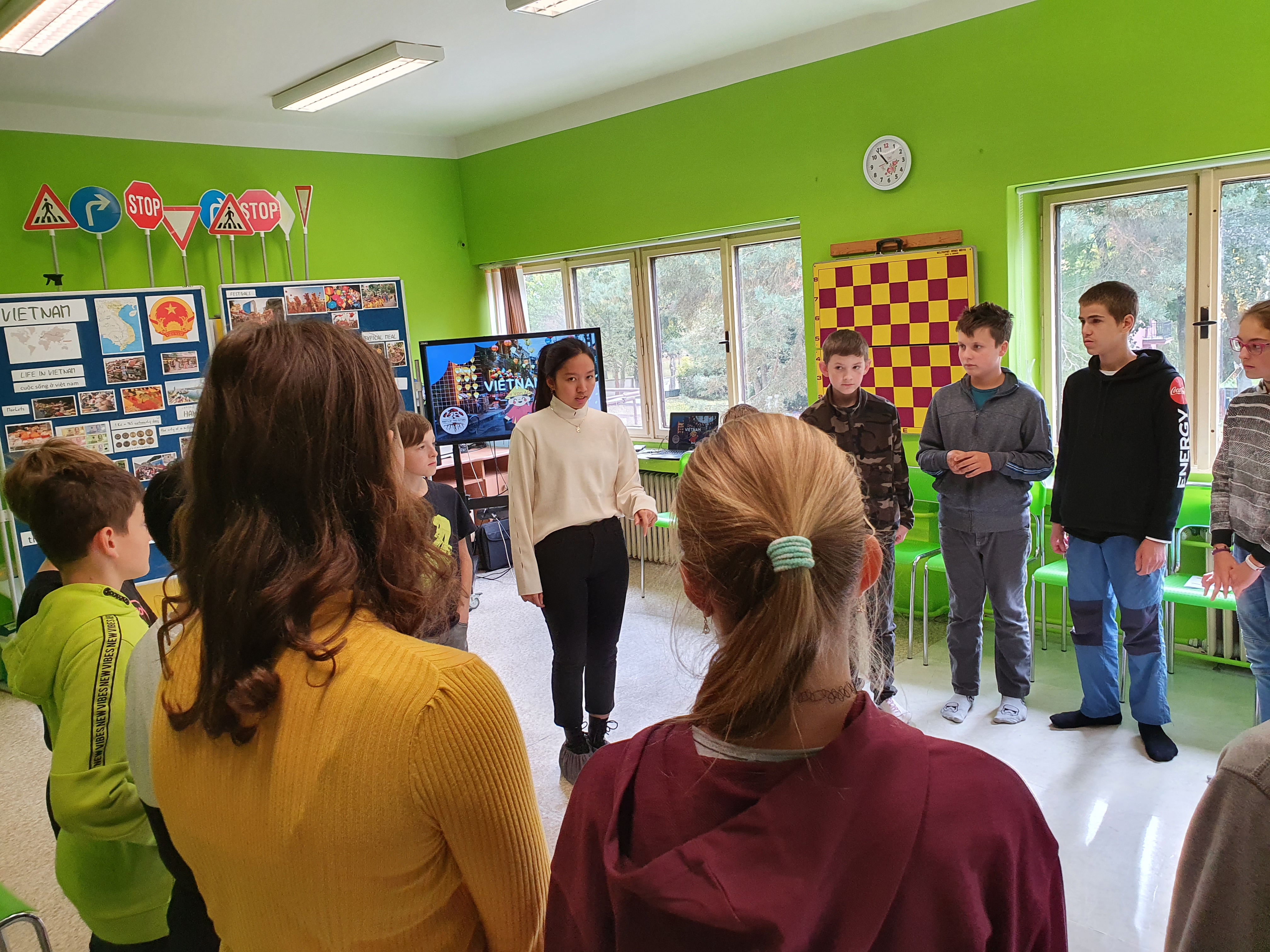 V pátek 30.10. se žáci šesté a sedmé třídy zúčastnili jazykově-vzdělávacího programu Den jazyků, který pořádá DDM ve Dvoře Králové nad Labem. Na žáky čekala bloková výuka. Postupně se setkali se čtyřmi anglicky mluvícími lektory, kteří prezentovali svou zemi či oblast: Mexico, Vietnam, Morocco a Hong Kong. Do skupinek dostali žáci brožurky a podle výkladu daného lektora měli vyplnit důležité informace o něm, jeho zemi, kultuře a další zajímavosti z oblasti gastronomie, měny, písma, geografie apod. Nejvíce děti nadchnul Mexičan Hector, jenž s dětmi vytrvale diskutoval, dotazoval se a svým charismatem si všechny získal.