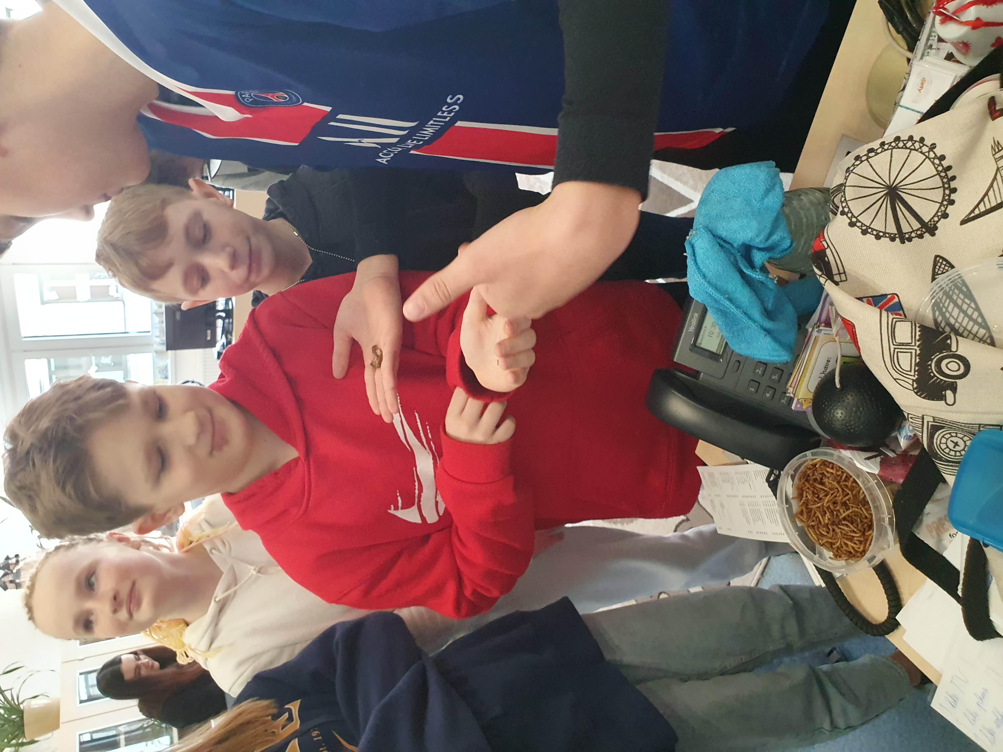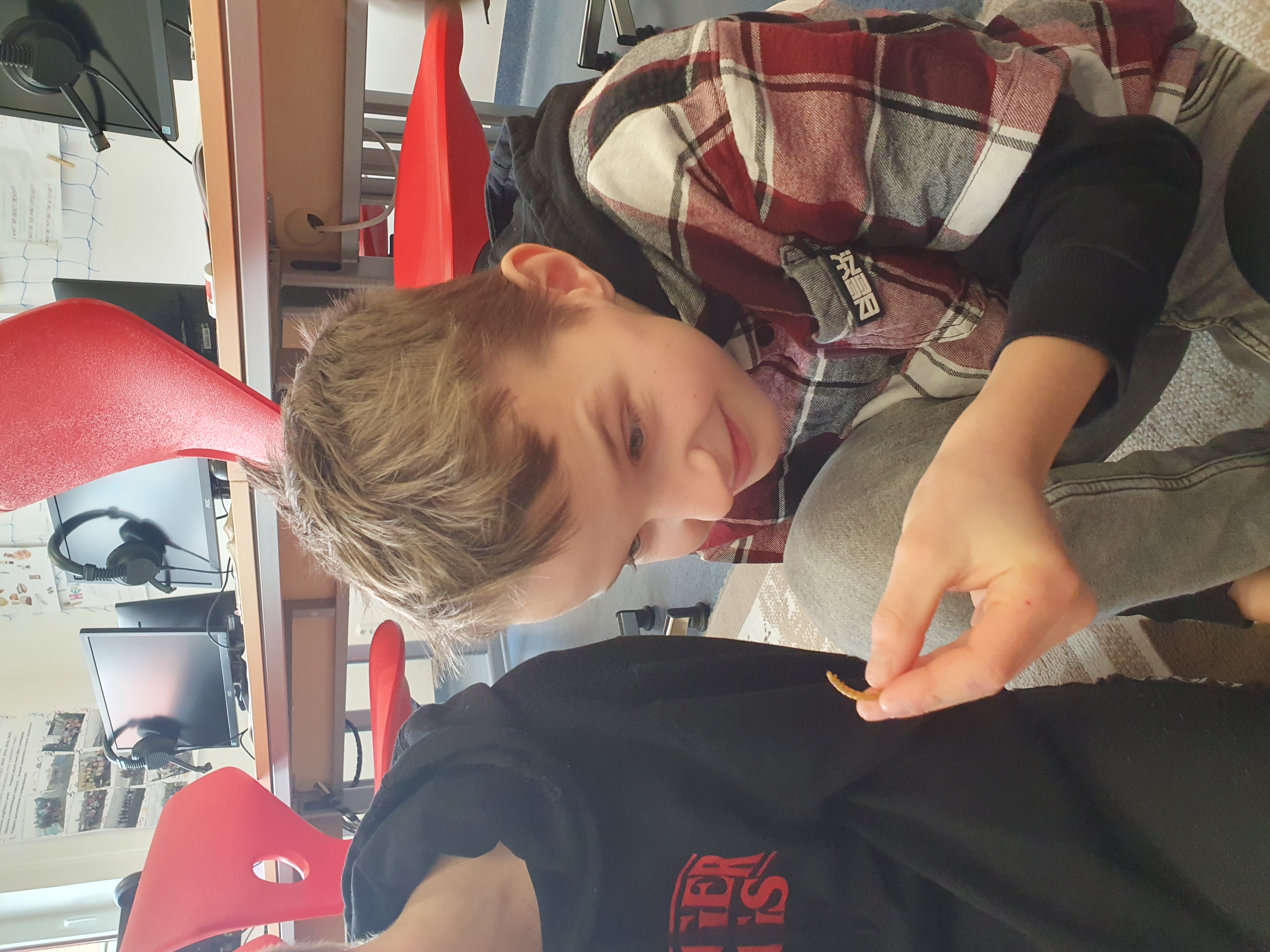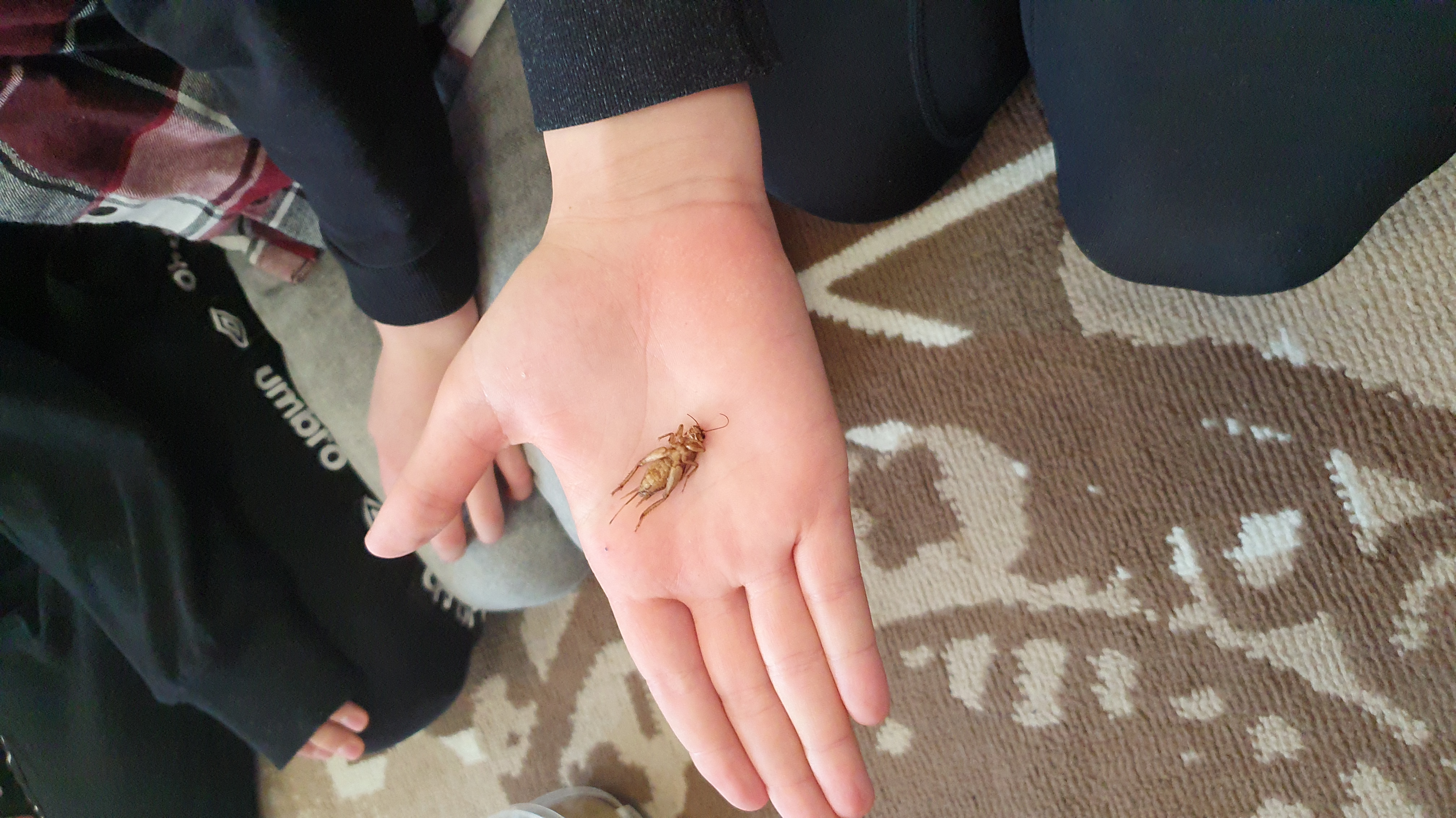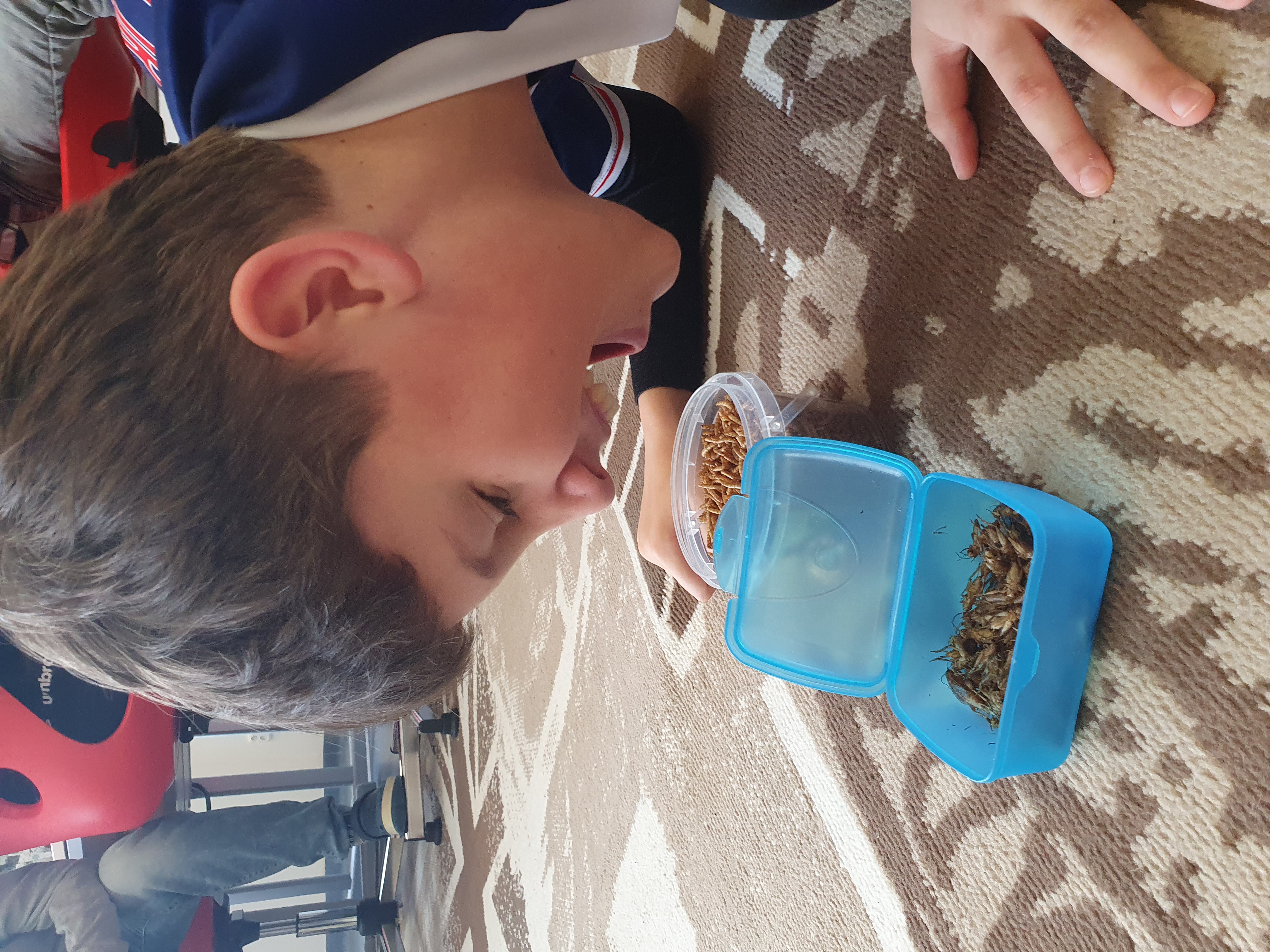 Ano, tato otázka zazněla v šesté třídě během anglického jazyka. Ve třetí lekci jsme totiž probírali hmyz a četli článek o pojídání hmyzu. Pokud to jde, do výuky se vždy snažíme zapojit co nejvíce smyslů, a to se nám tentokrát povedlo. Děti měly možnost ochutnat sušené červy a také na másle usmažené cvrčky, kteří voněli opravdu jako hranolky. Abych šla vzorem, ochutnala jsem tyto delikatesy jako první a pak už se téměř všechny ruce zvědavě natahovaly. Zpráva o netradiční svačince se velmi rychle roznesla, a tak i některé další třídy během výuky angličtiny poznávaly nové chutě. Někteří si brali i do boxíku pro rodiče. 😊