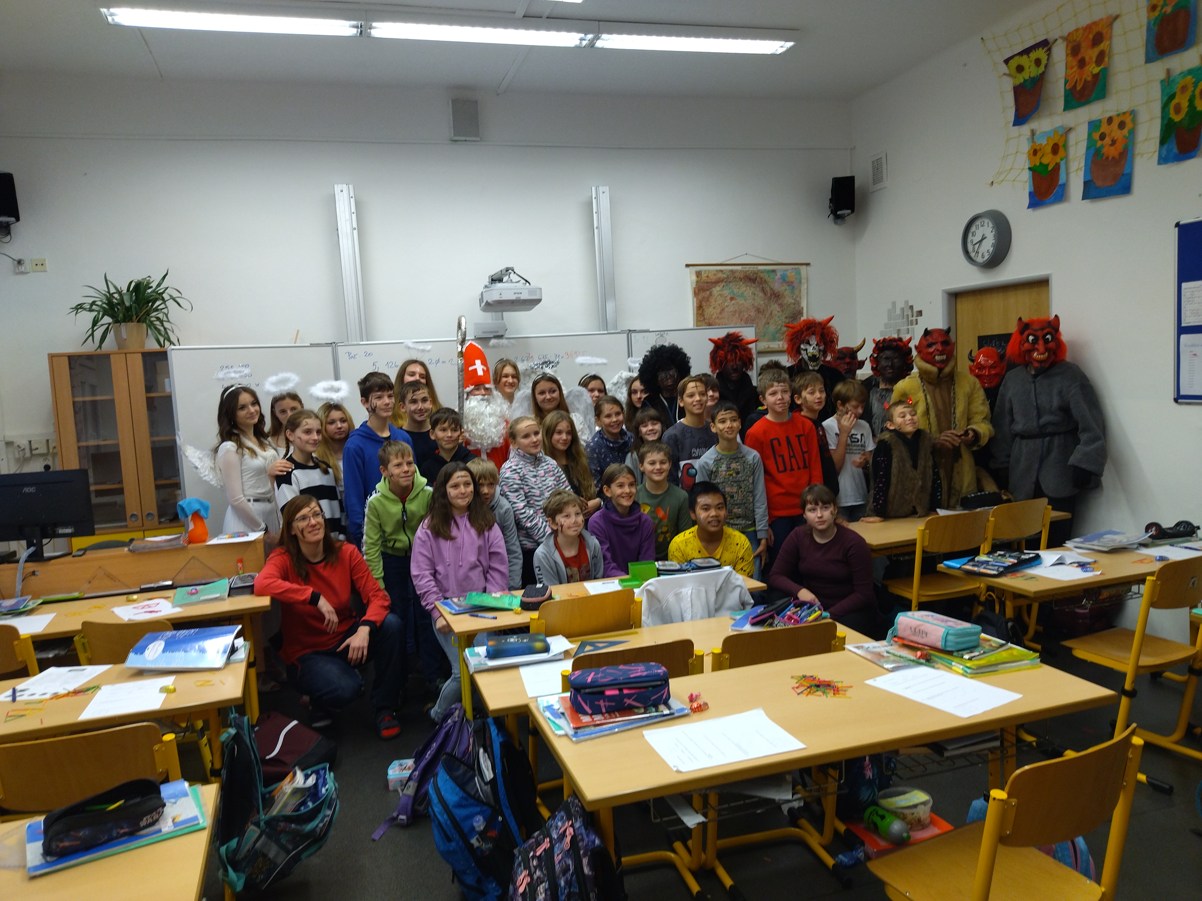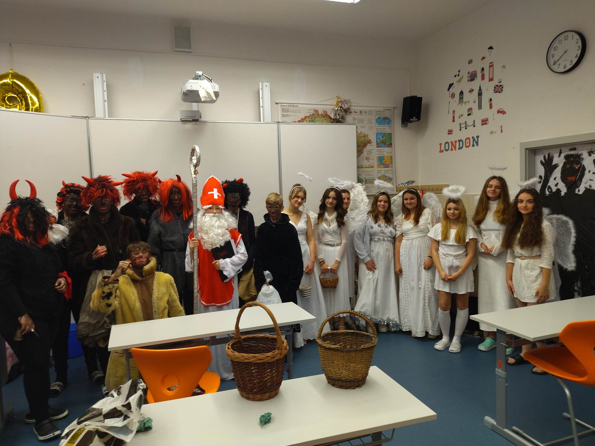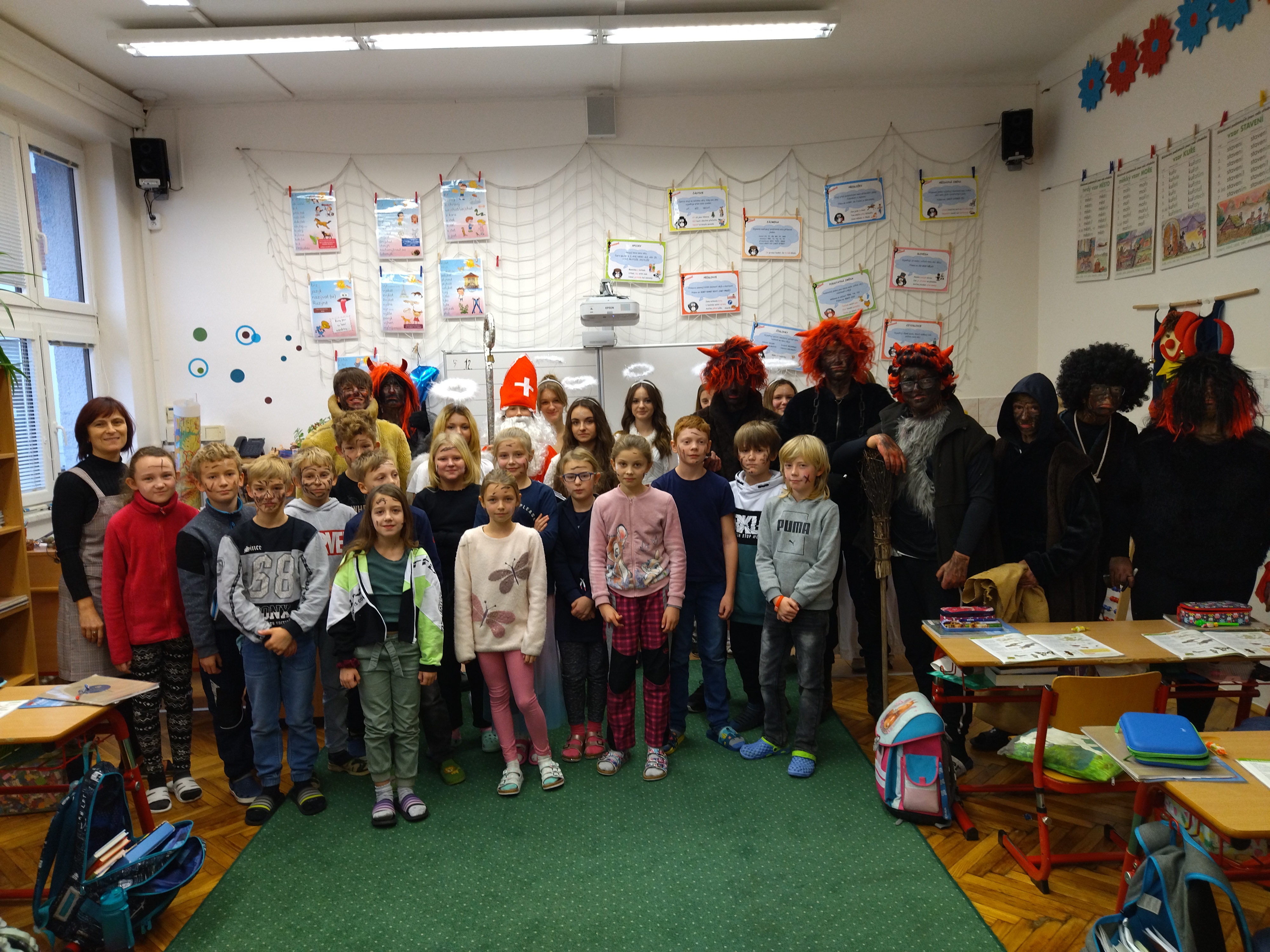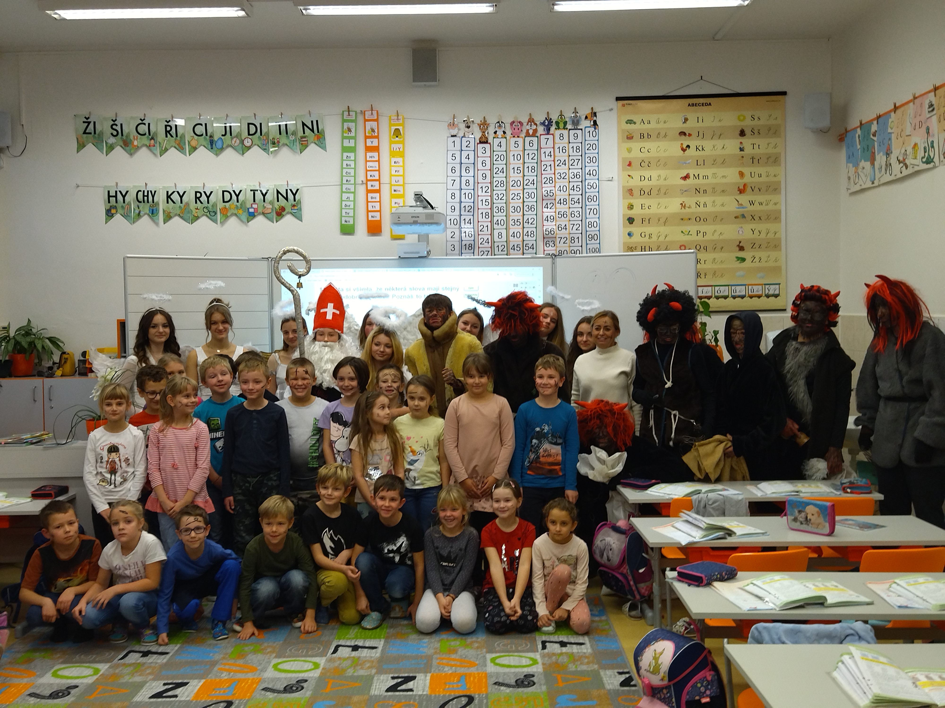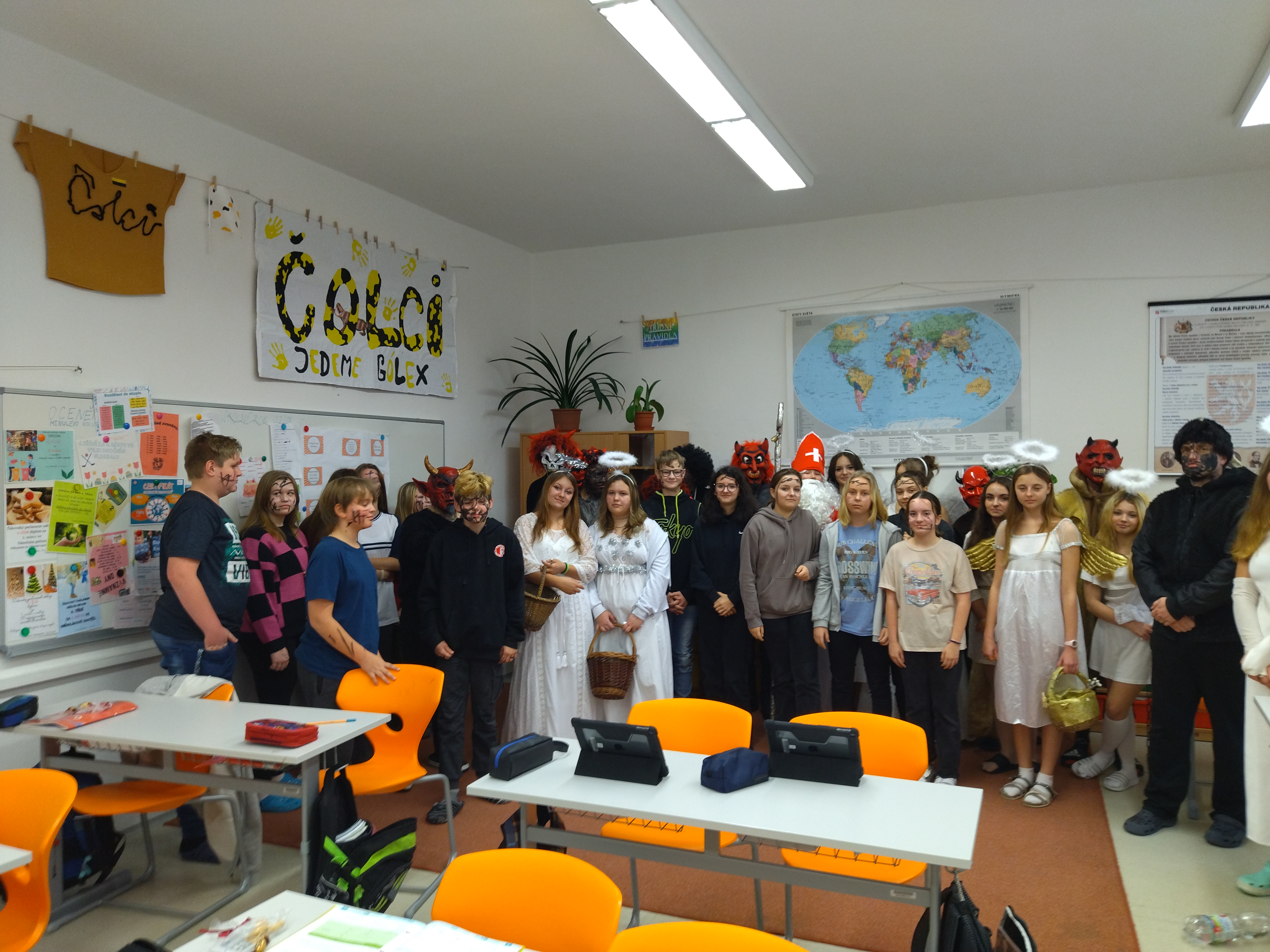 Během pondělního dopoledne jste mohli zaslechnout v budovách ZŠ i MŠ neobvyklé řinčení řetězů a cinkání nejrůznějších zvonečků. To se k nám opět po roce přišla podívat nadpřirozená družina ve standardní sestavě reprezentovaná jedním Mikulášem a letos velkým množstvím čertů i andělů.