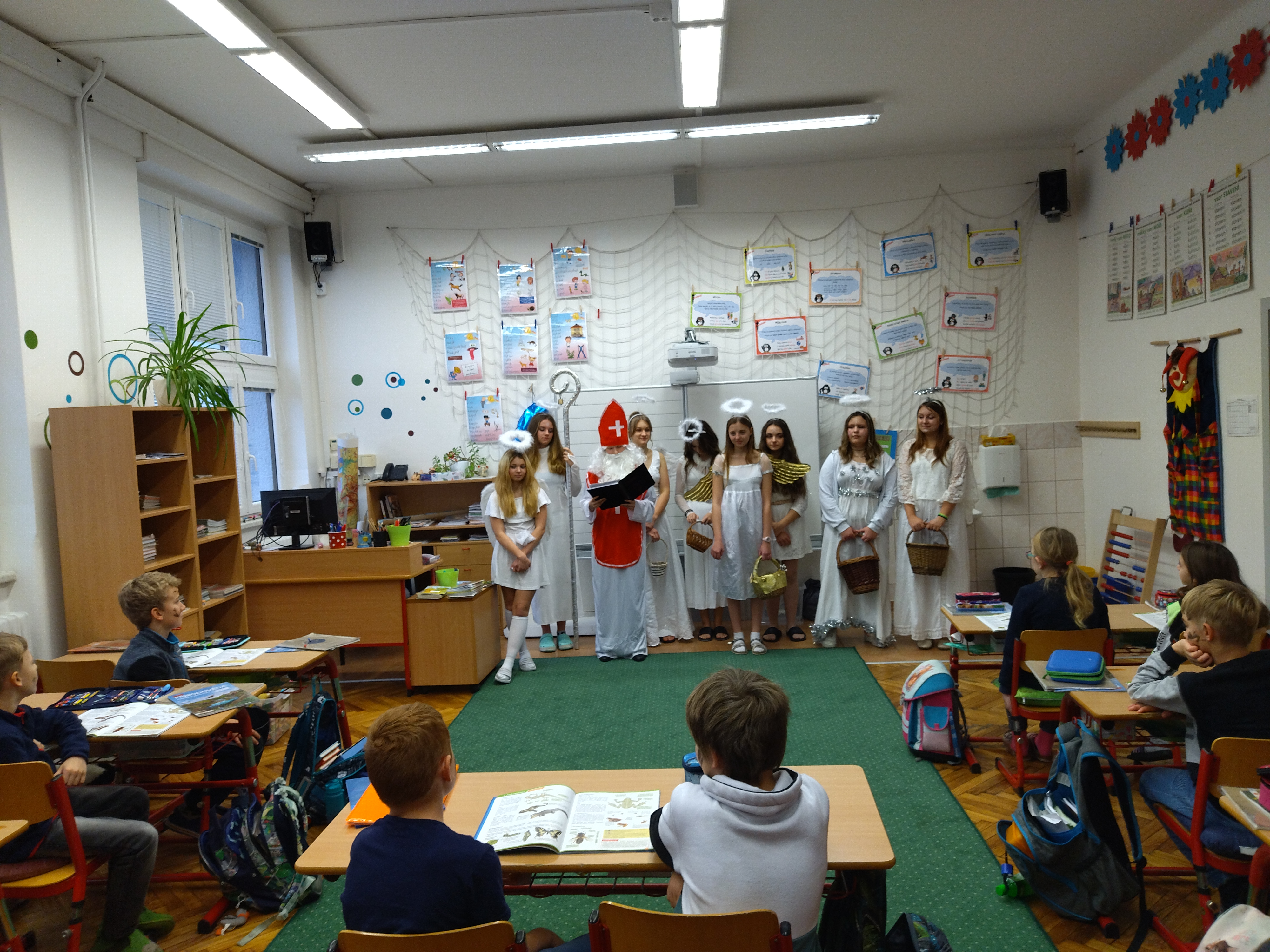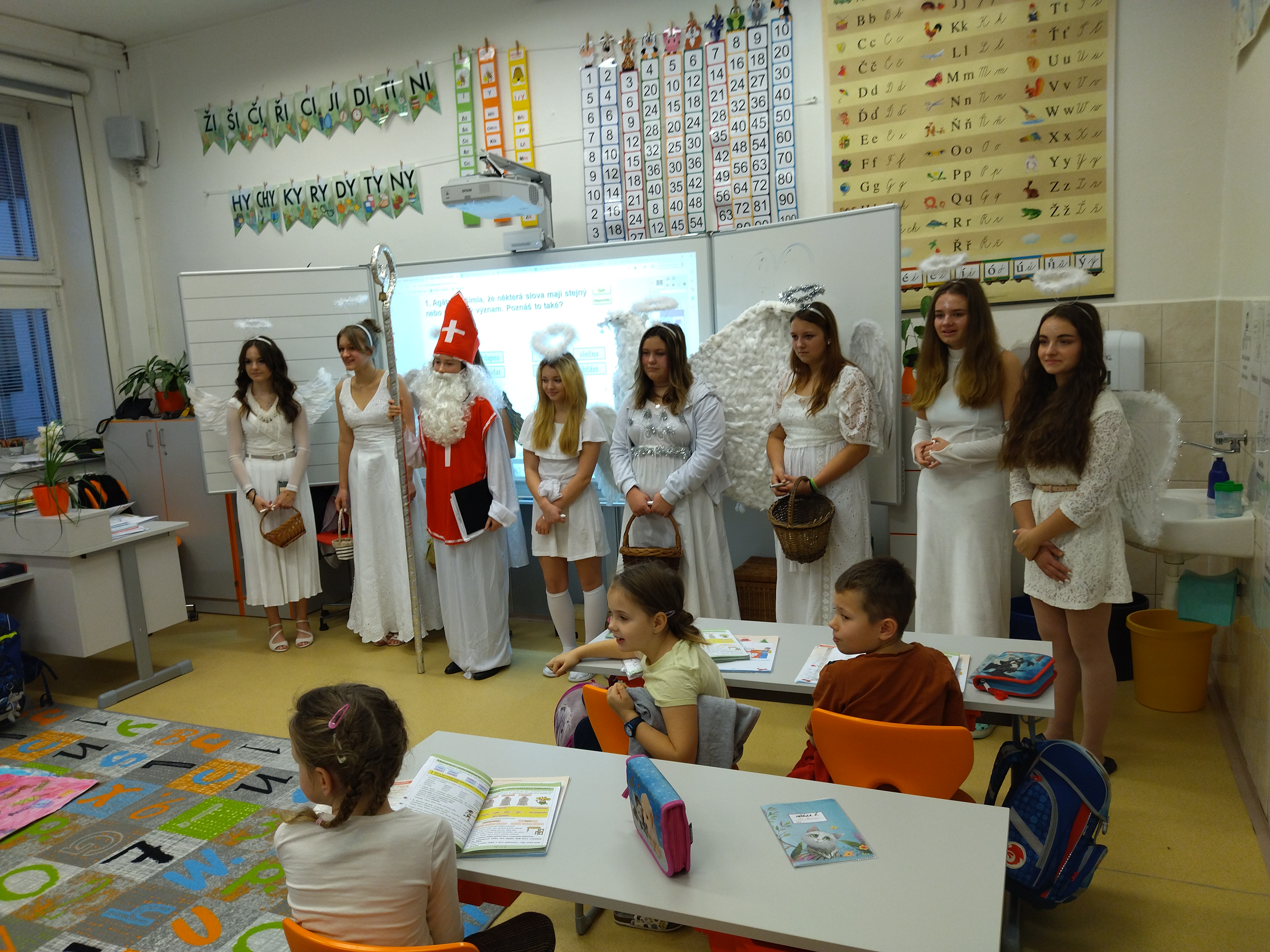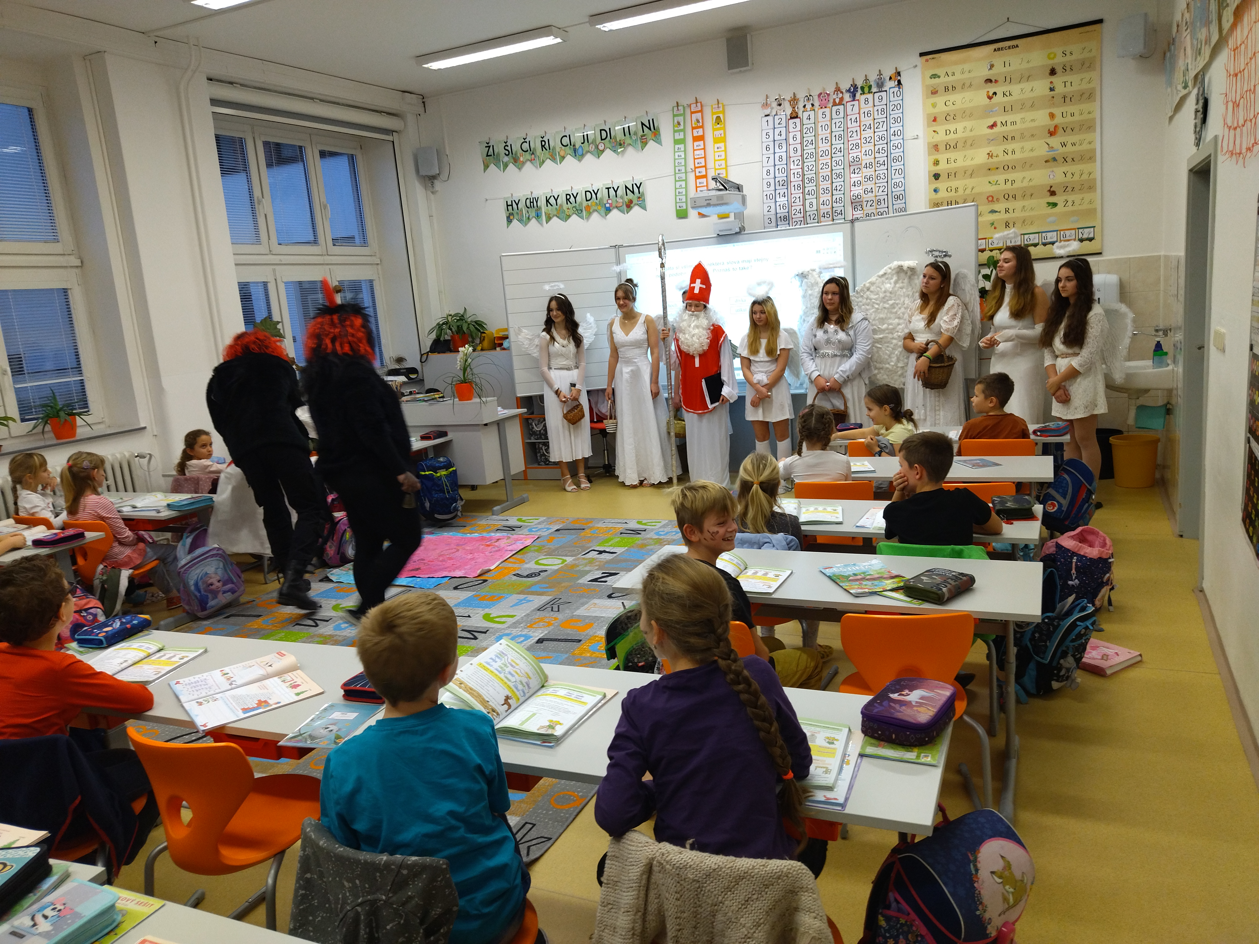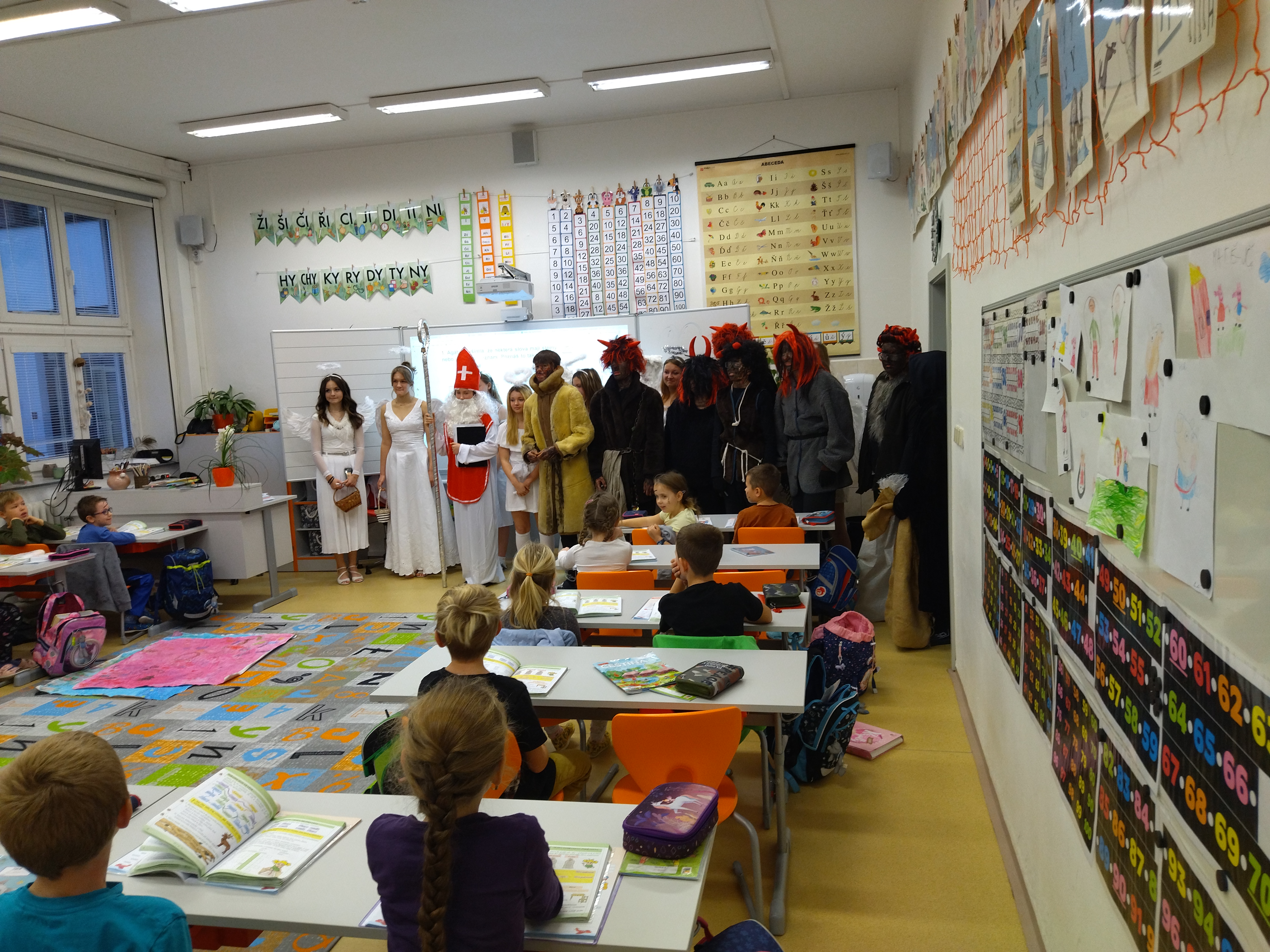 Postupně tito vyslanci nadpřirozených světů obešli všechny třídy a hlavně na menších dětech bylo vidět, že ne vždy je zejména přítomnost zástupců pekelné říše vítaná. Přesto se snažily ve většině případů zachovat dekórum a po zpěvu písniček se ze svých ,,hříšků“ včas vykoupily. Odměnou jim pak všem byly bonbonky rozdávané hodnými a krásnými anděly. Vševědoucí slova přísného, ale vlídného Mikuláše dávala tušit, že mu žádné lidské konání neujde a jen uvědomění si svých vlastních chyb nás všechny může posunout dál.