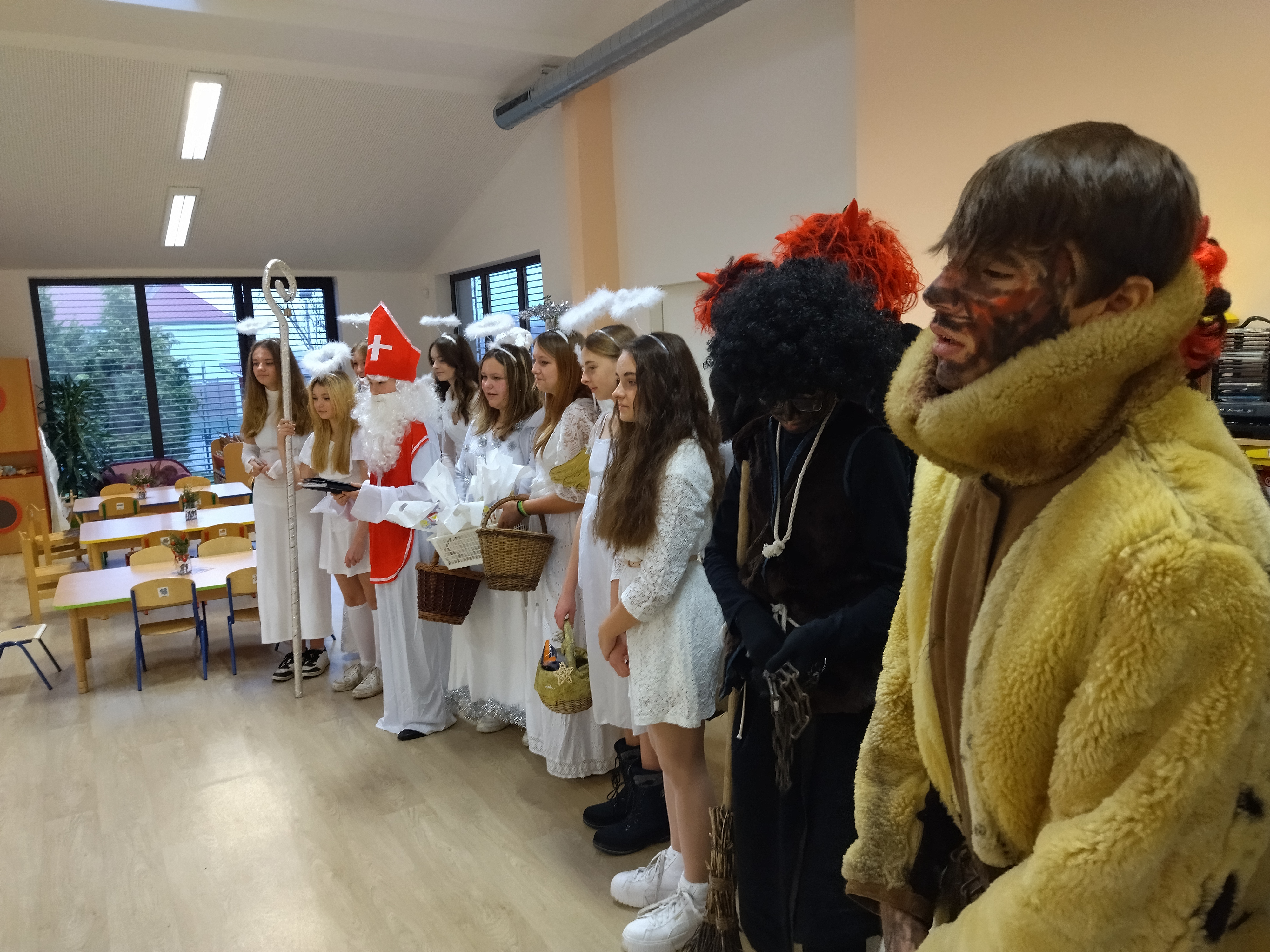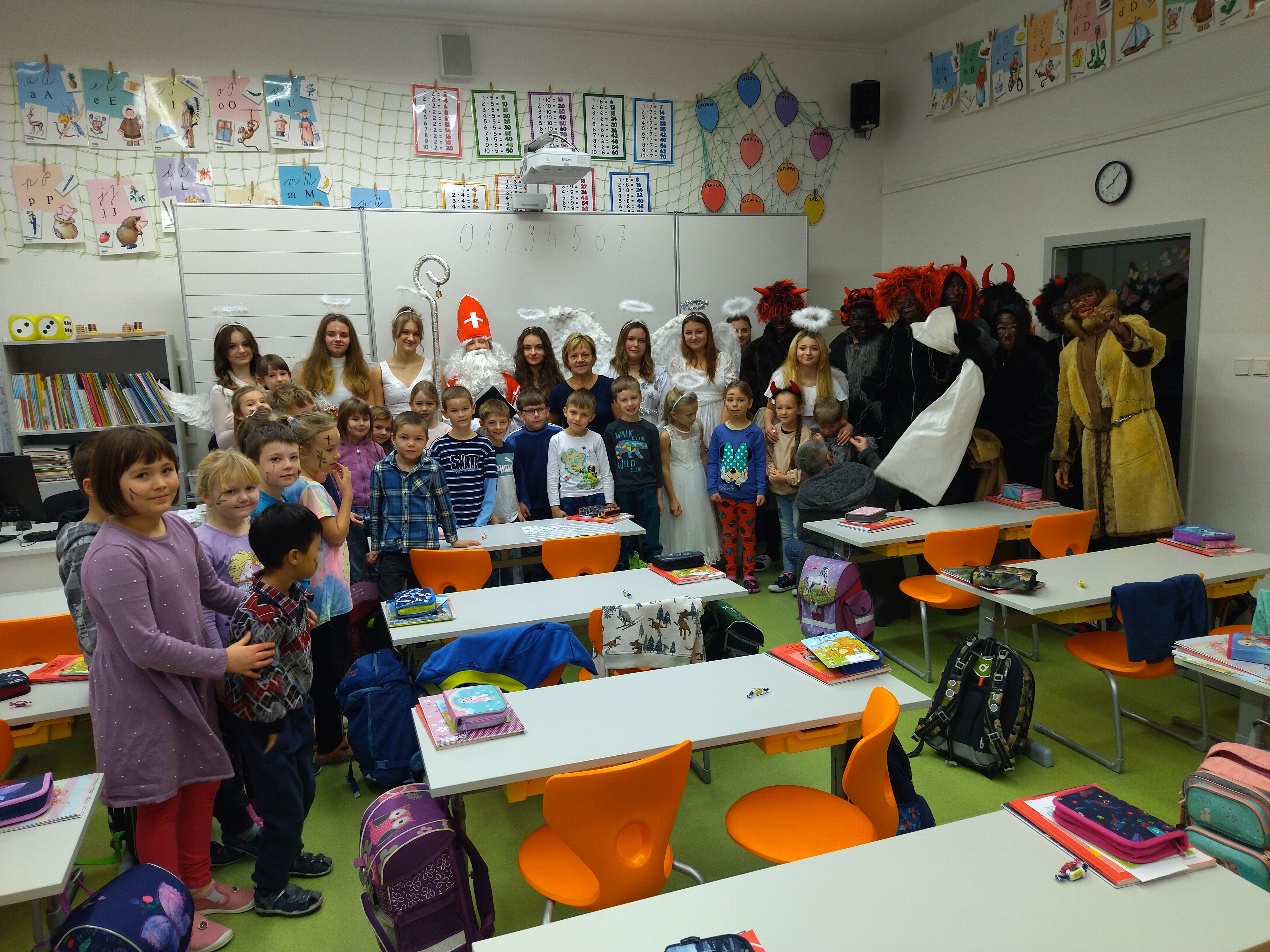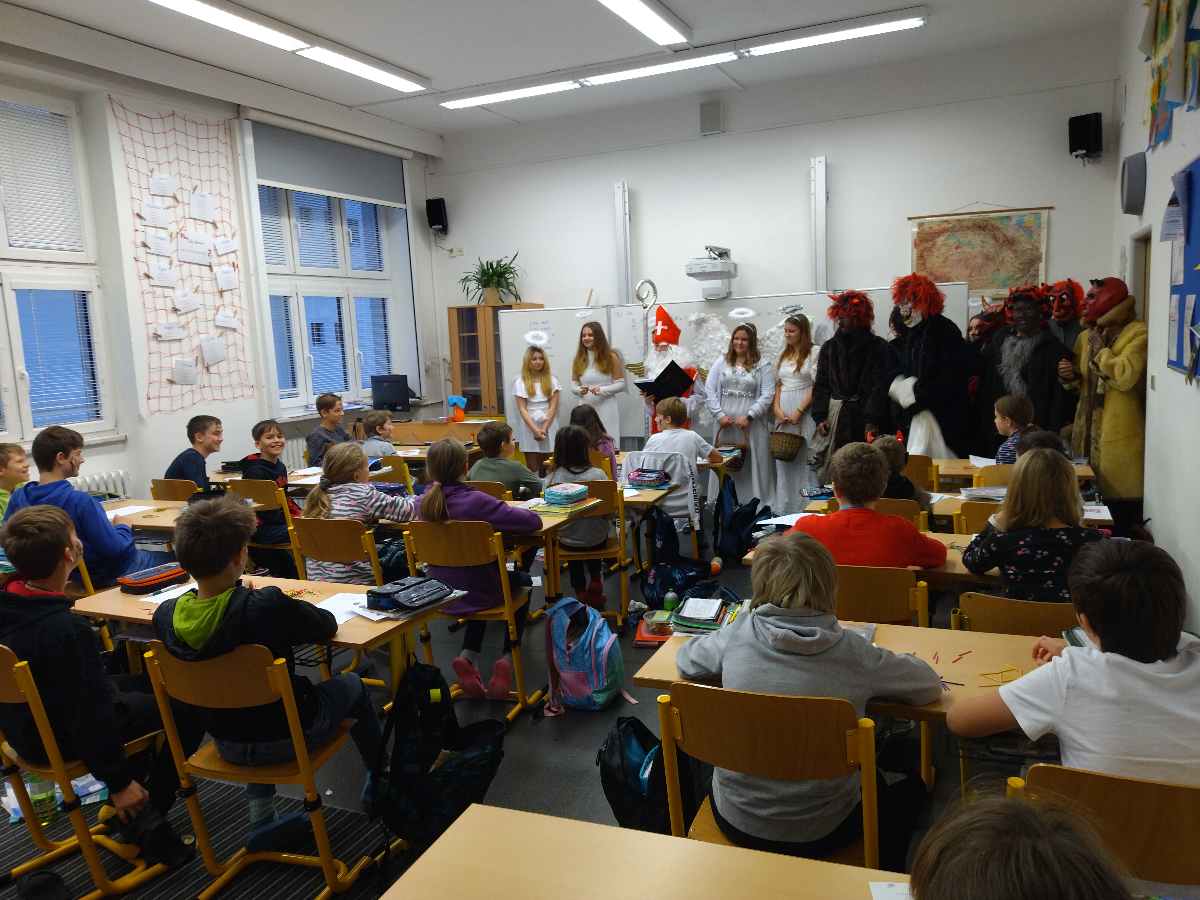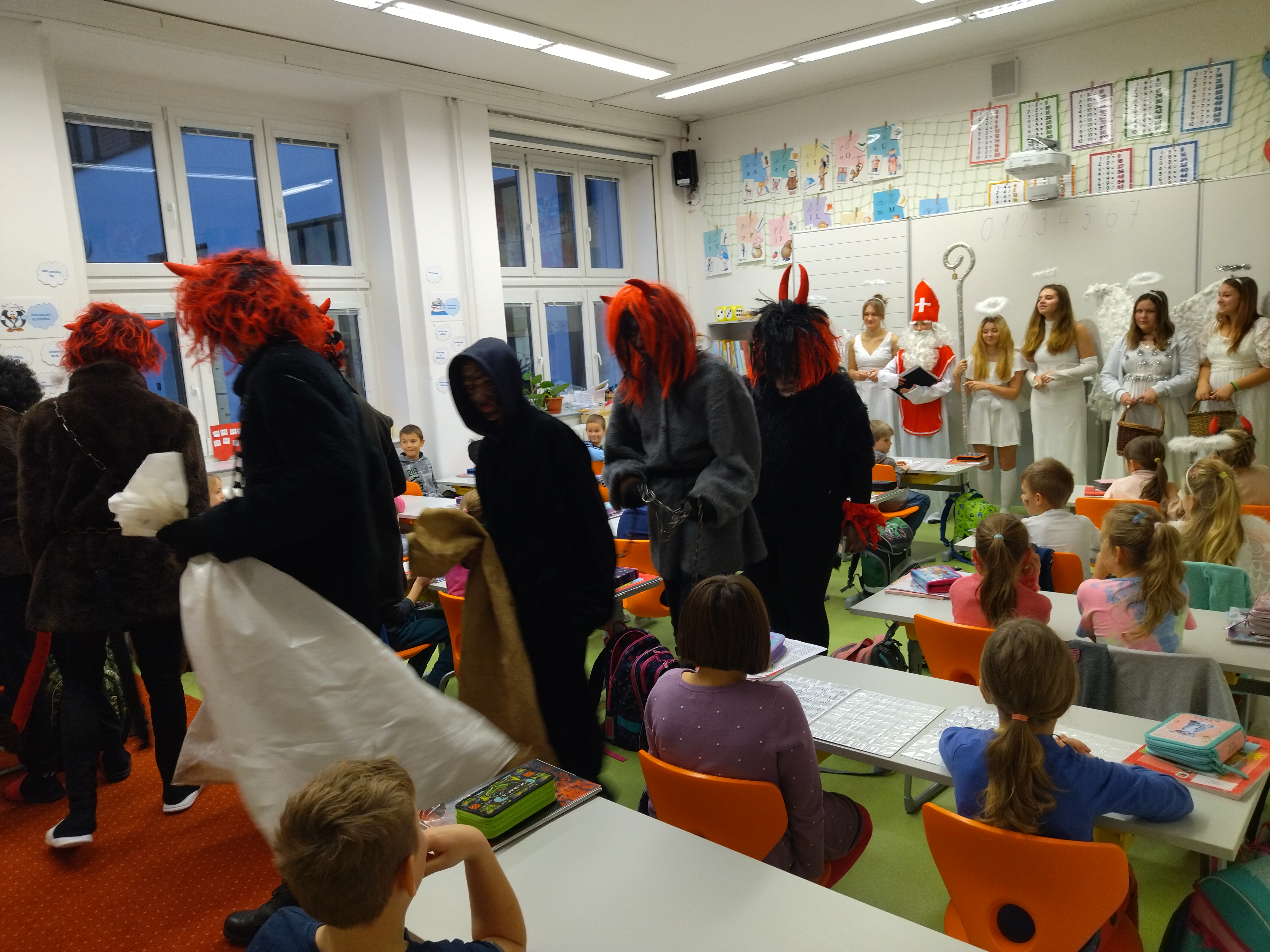 Postupně tito vyslanci nadpřirozených světů obešli všechny třídy a hlavně na menších dětech bylo vidět, že ne vždy je zejména přítomnost zástupců pekelné říše vítaná. Přesto se snažily ve většině případů zachovat dekórum a po zpěvu písniček se ze svých ,,hříšků“ včas vykoupily. Odměnou jim pak všem byly bonbonky rozdávané hodnými a krásnými anděly. Vševědoucí slova přísného, ale vlídného Mikuláše dávala tušit, že mu žádné lidské konání neujde a jen uvědomění si svých vlastních chyb nás všechny může posunout dál.