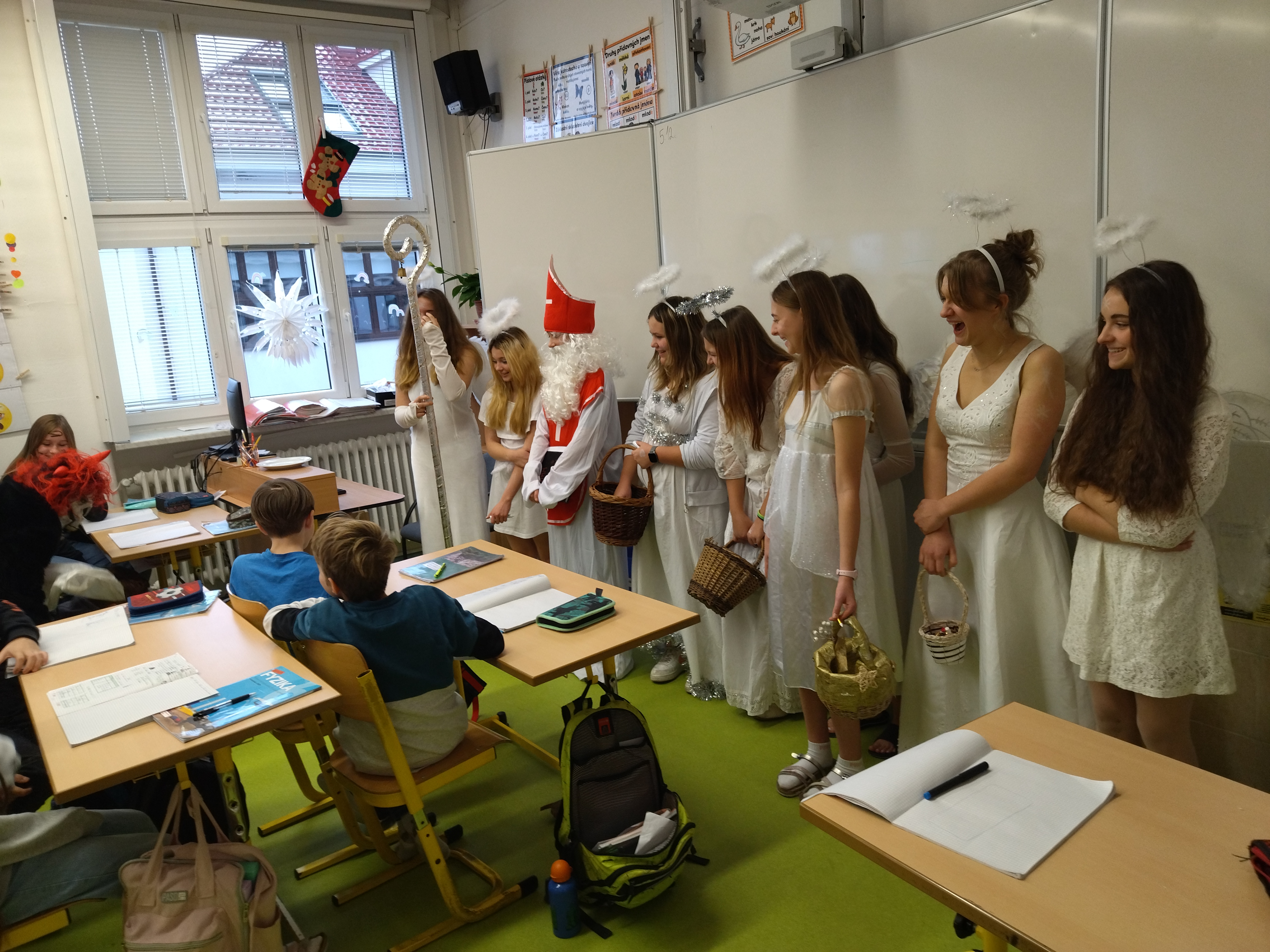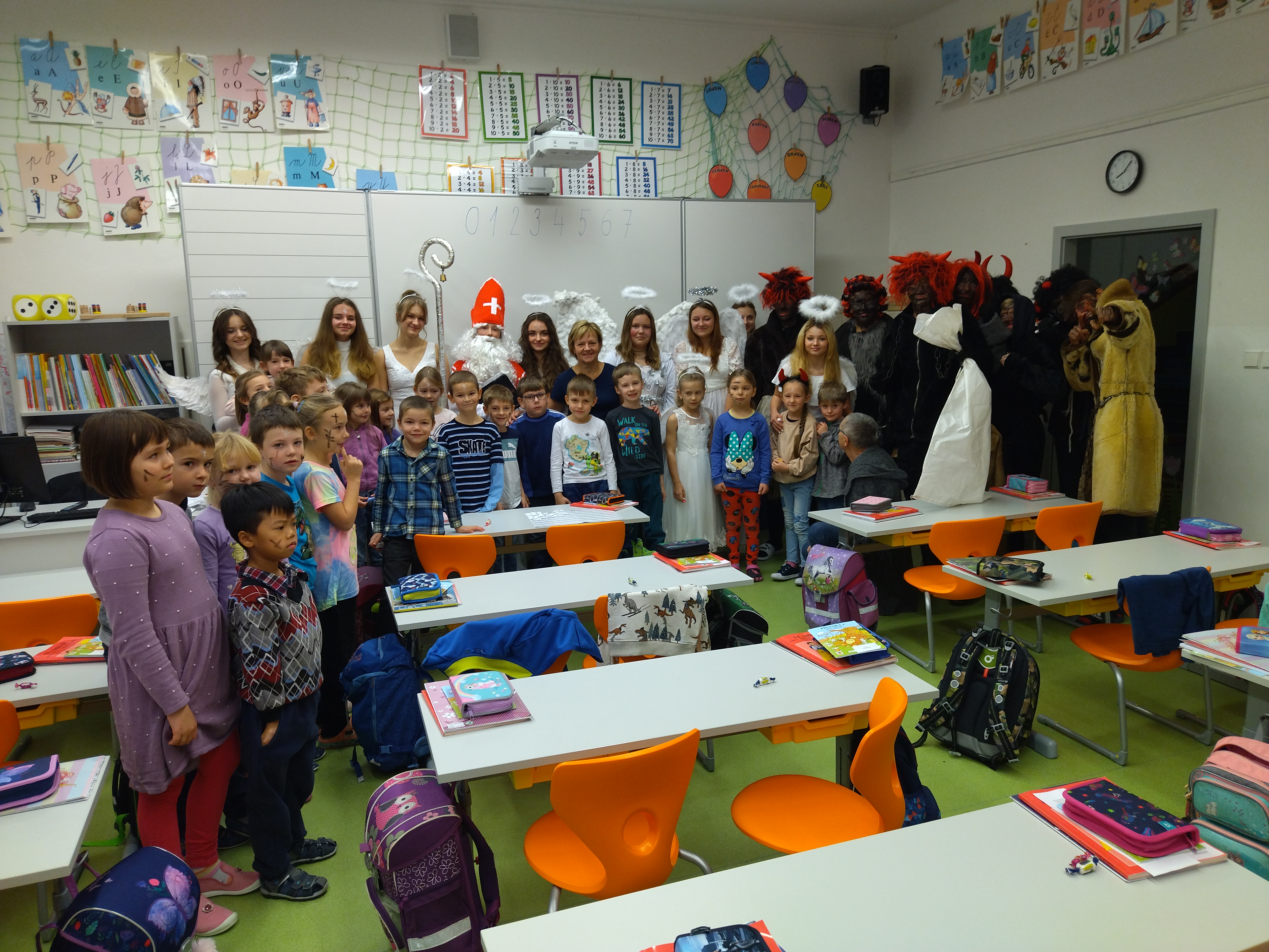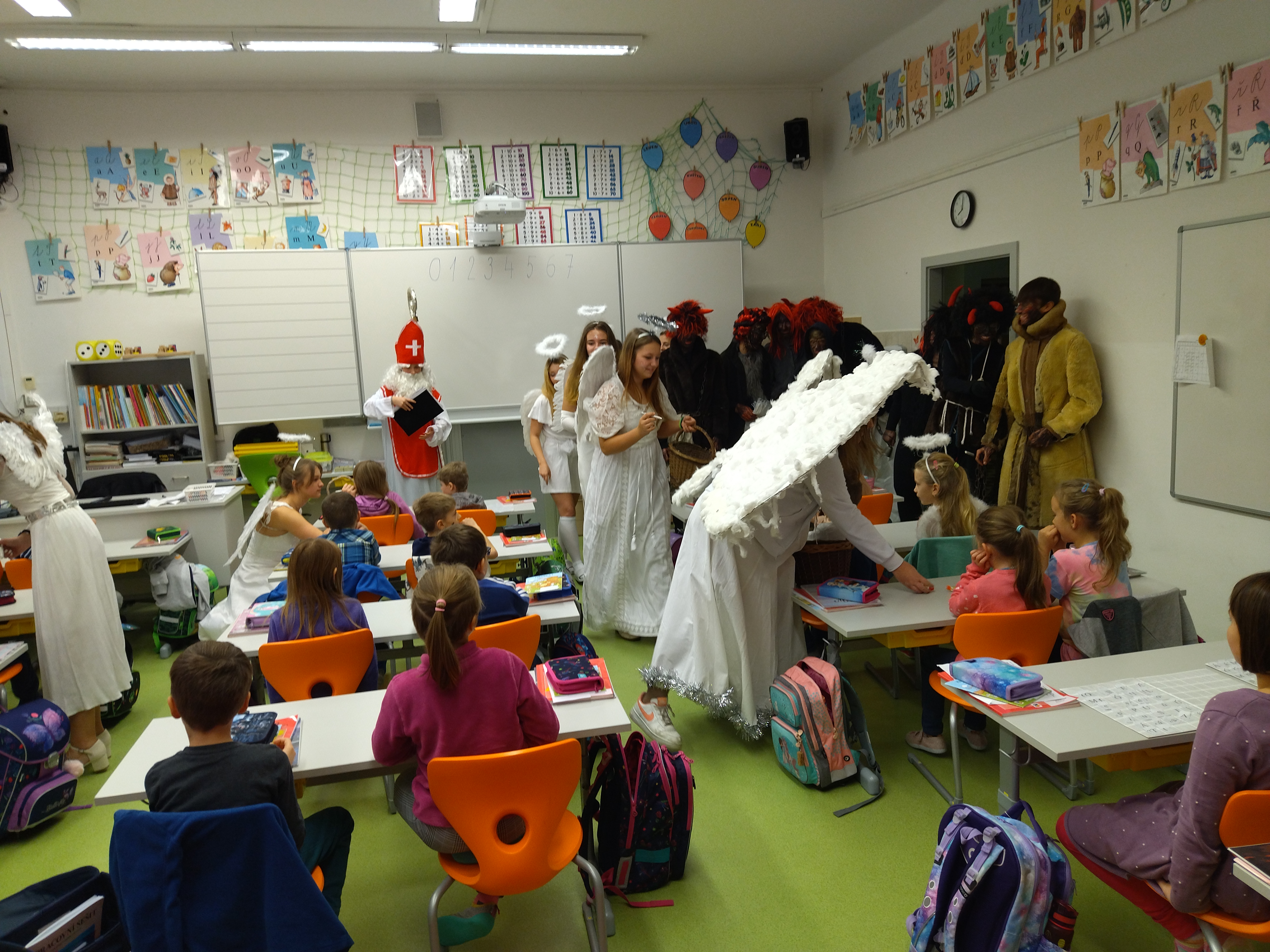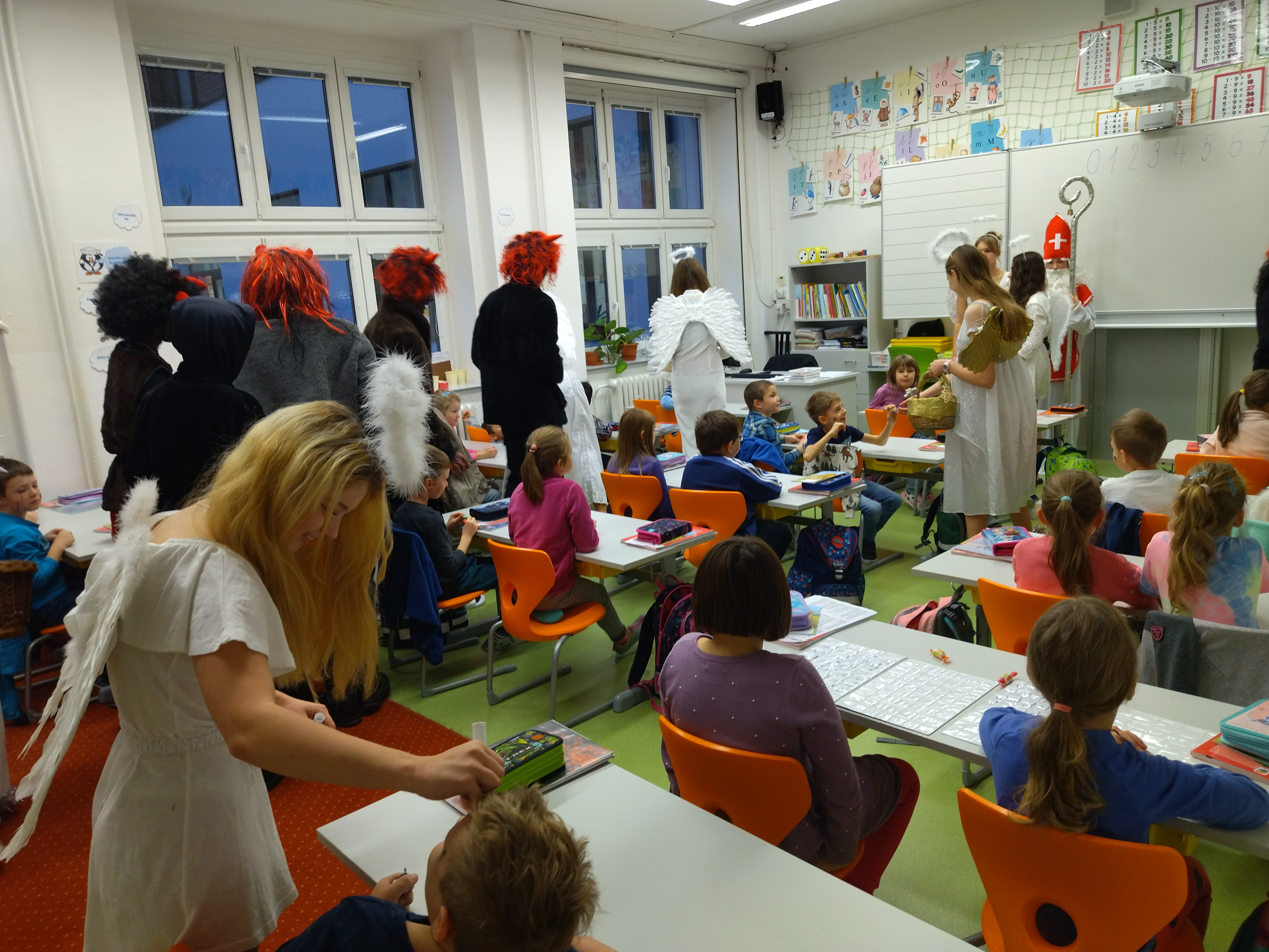 Postupně tito vyslanci nadpřirozených světů obešli všechny třídy a hlavně na menších dětech bylo vidět, že ne vždy je zejména přítomnost zástupců pekelné říše vítaná. Přesto se snažily ve většině případů zachovat dekórum a po zpěvu písniček se ze svých ,,hříšků“ včas vykoupily. Odměnou jim pak všem byly bonbonky rozdávané hodnými a krásnými anděly. Vševědoucí slova přísného, ale vlídného Mikuláše dávala tušit, že mu žádné lidské konání neujde a jen uvědomění si svých vlastních chyb nás všechny může posunout dál.