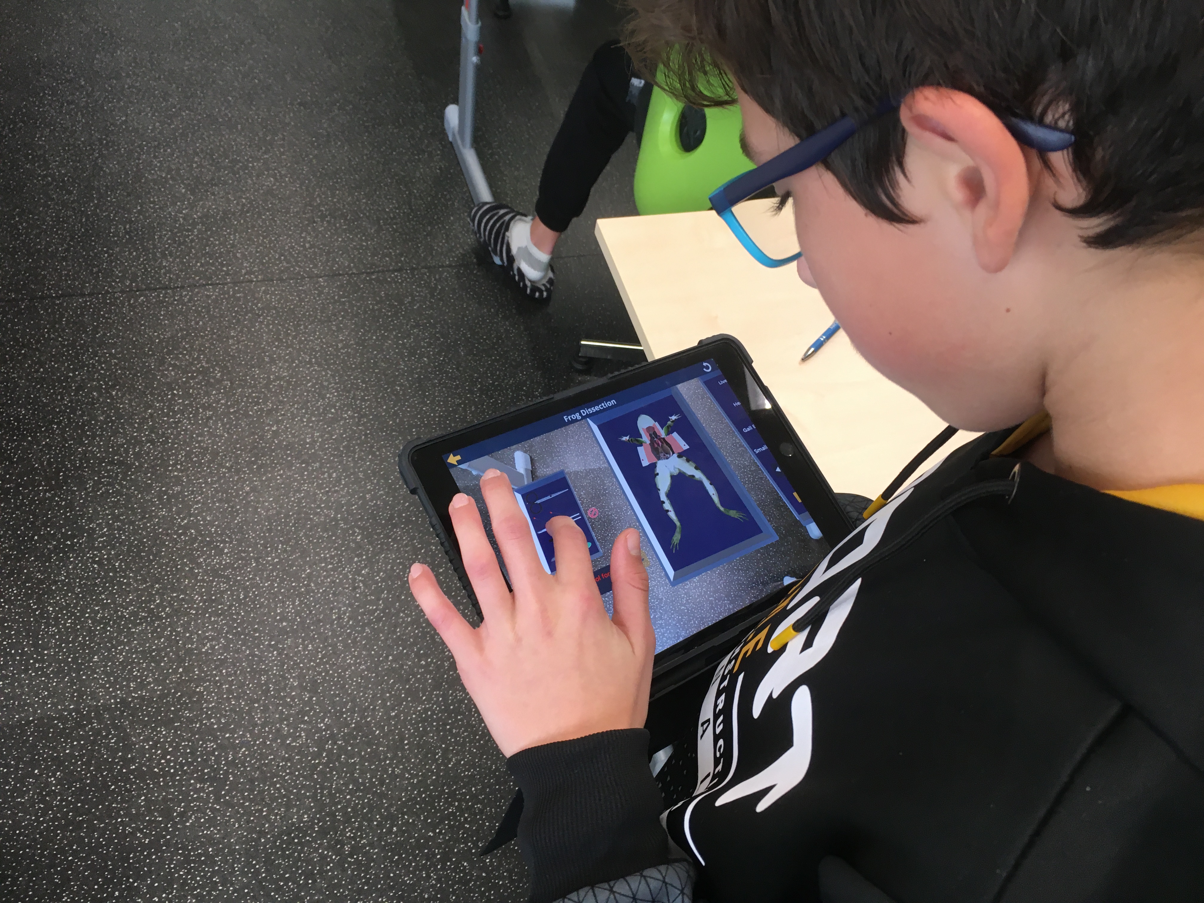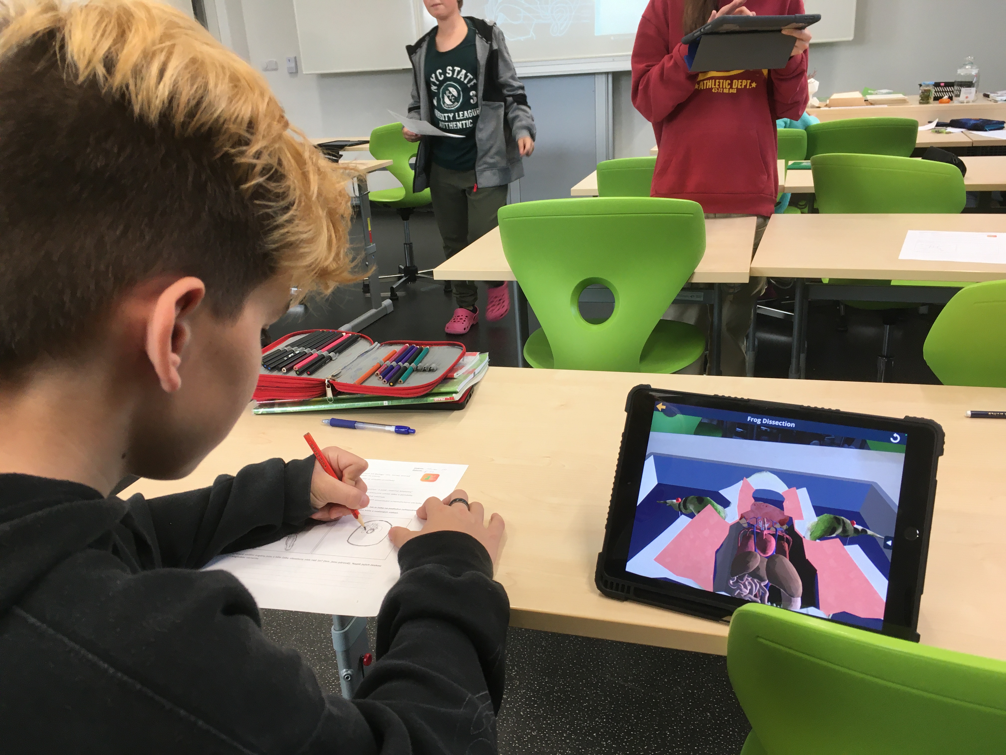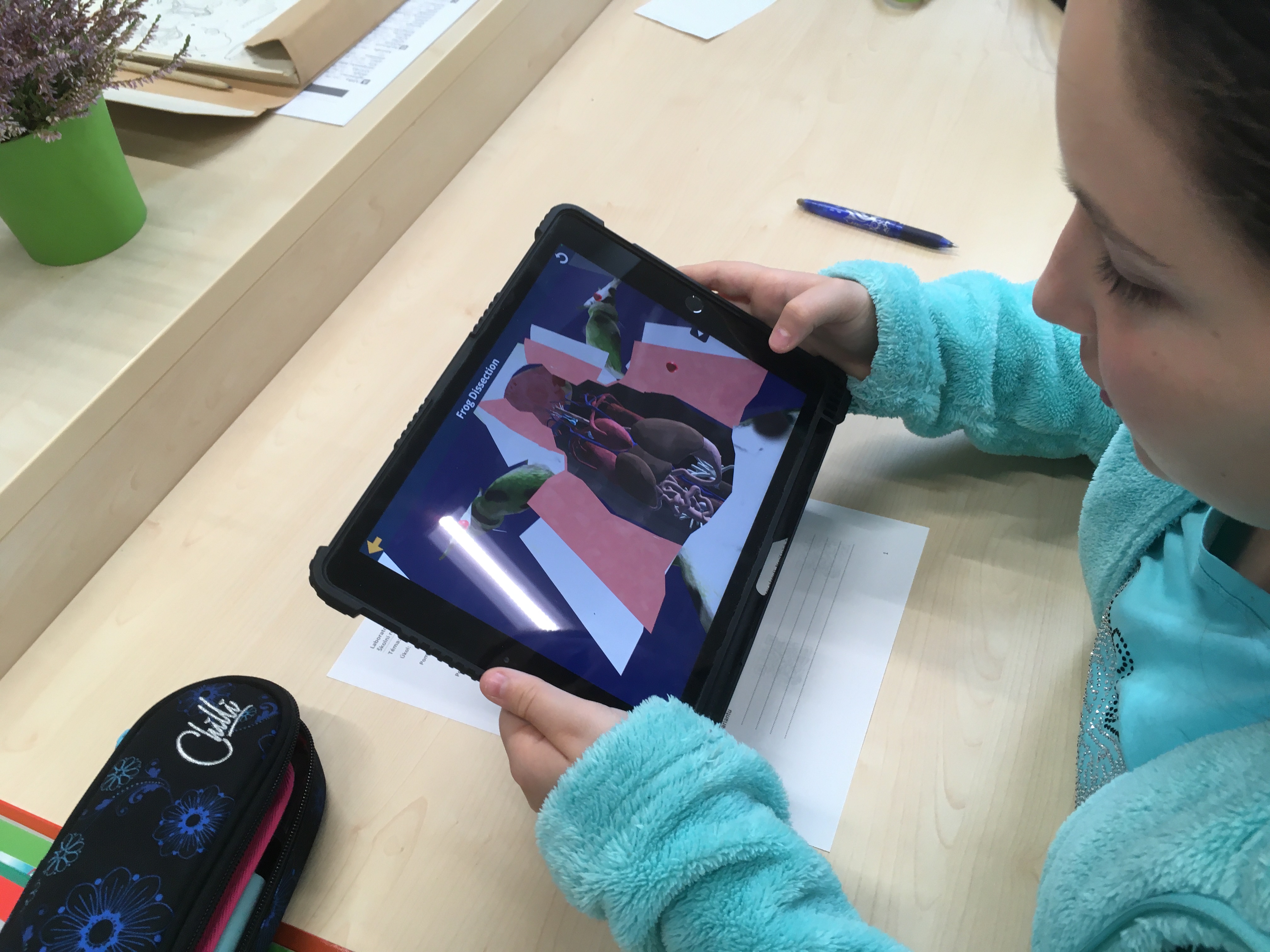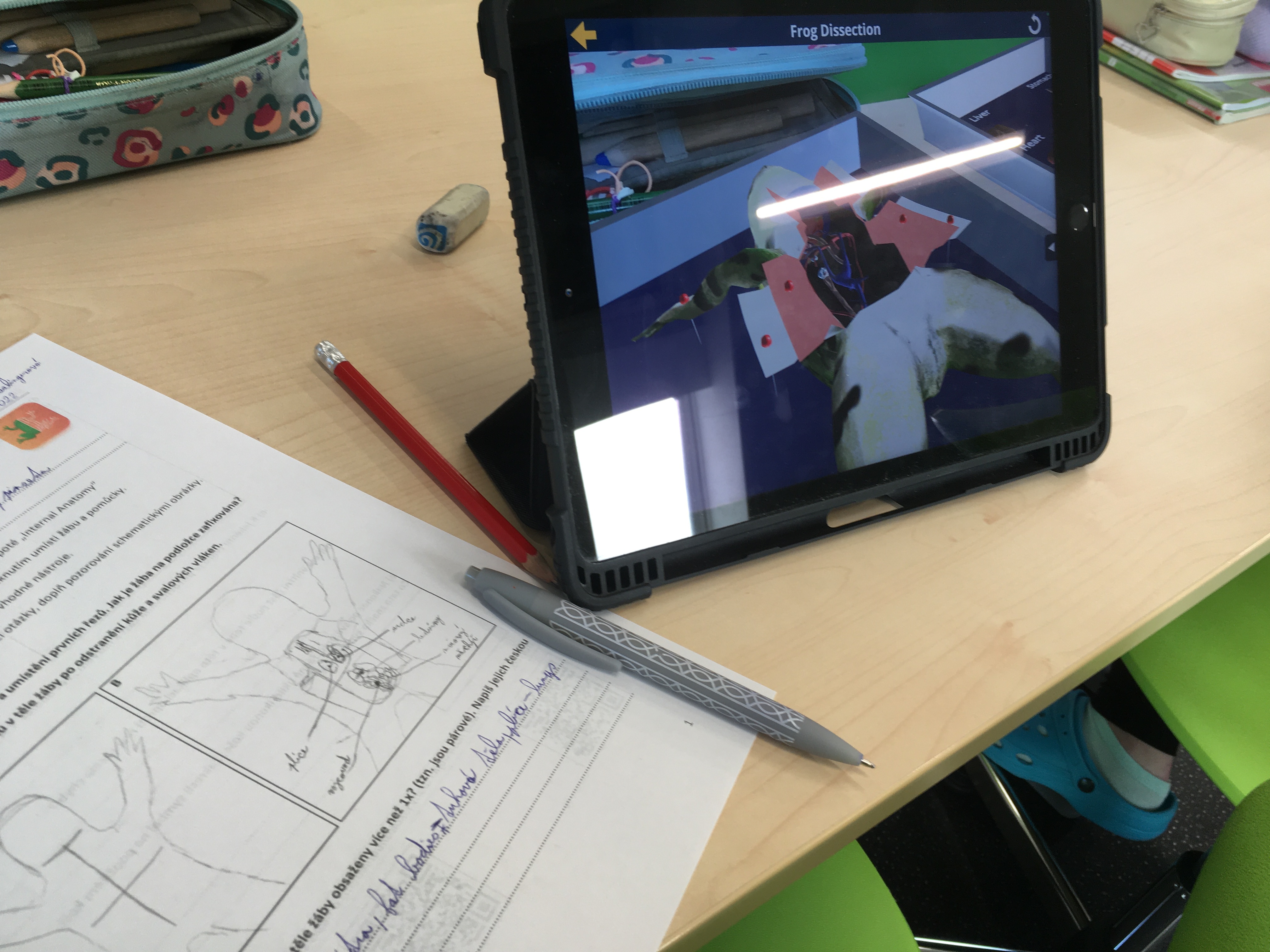 Touha po znalosti stavby těla nejrůznějších životních forem provází člověka od nepaměti. Možnost podívat se do nitra některých probíraných organismů se nabízí žákům v hodinách přírodopisu. Po laboratorních úlohách zaměřených na tělní pokryv savců či ryb, byla dnes pro sedmáky nachystána trochu odlišná úloha. Učivo o obojživelnících bylo obohaceno o pitvu žáby. A přestože by i tady byla jistě zajímavá pitva klasická, se všemi jejími náležitostmi, vyzkoušeli jsme z prozaických důvodů virtuální možnost. Díky rozšířené realitě a iPadům měl i tak každý žák „na stole“ vše potřebné. Žáci si vyzkoušeli posloupnost jednotlivých postupů, zopakovali laboratorní náčiní a v neposlední řadě i nahlédli do nitra samotné žáby, ze které vypreparovali dílčí orgány. O nich pak nabízela aplikace i další, zajímavé informace. Vše schematicky znázorňovali do laboratorních protokolů a získané vědomosti nakonec uplatnili v on-line kvízu. Nutno podotknout, že se jednalo o premiéru, která ale dopadla na výbornou – jak co se týče časového, tak i obsahového rozložení. Zájem a zaujetí žáků rovněž naznačil, že jde o dobrou a nenásilnou variantu, která může sloužit jako vhodný doplněk ke „klasickému“ zkoumání.