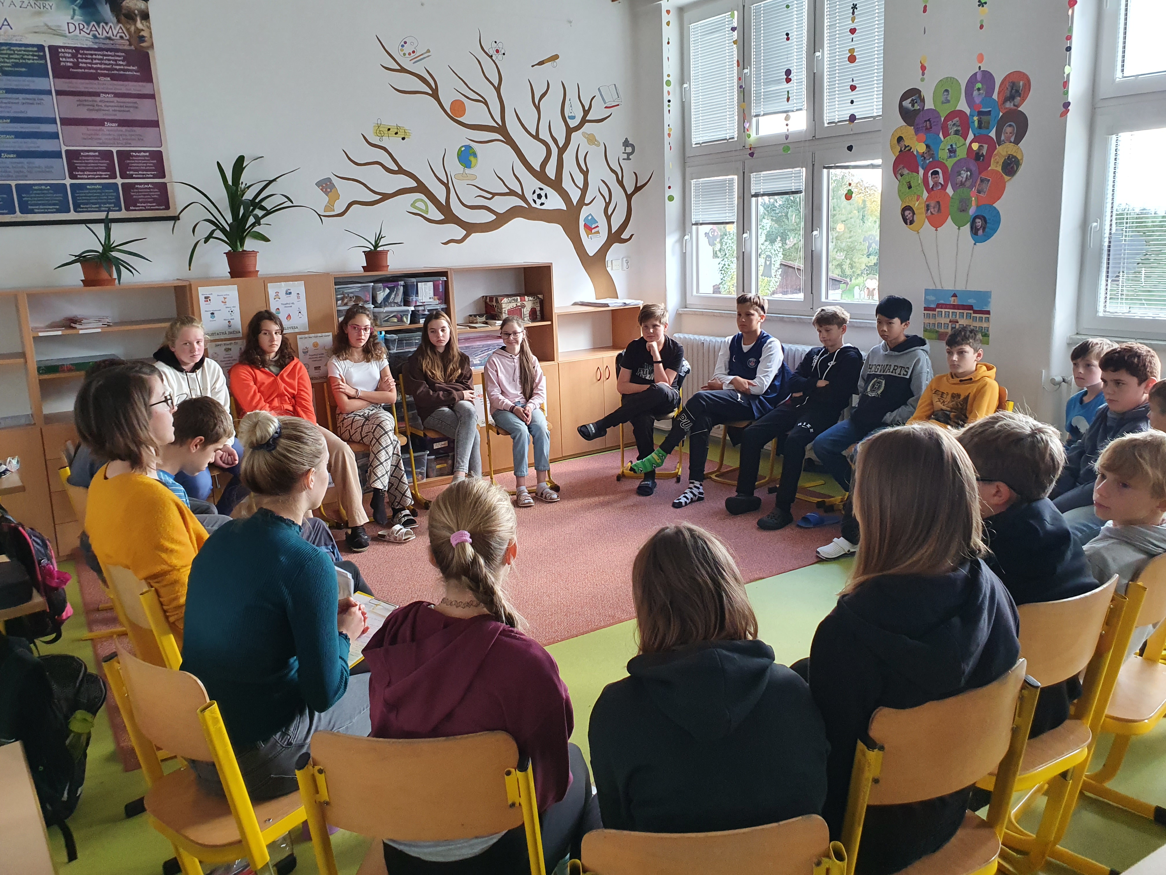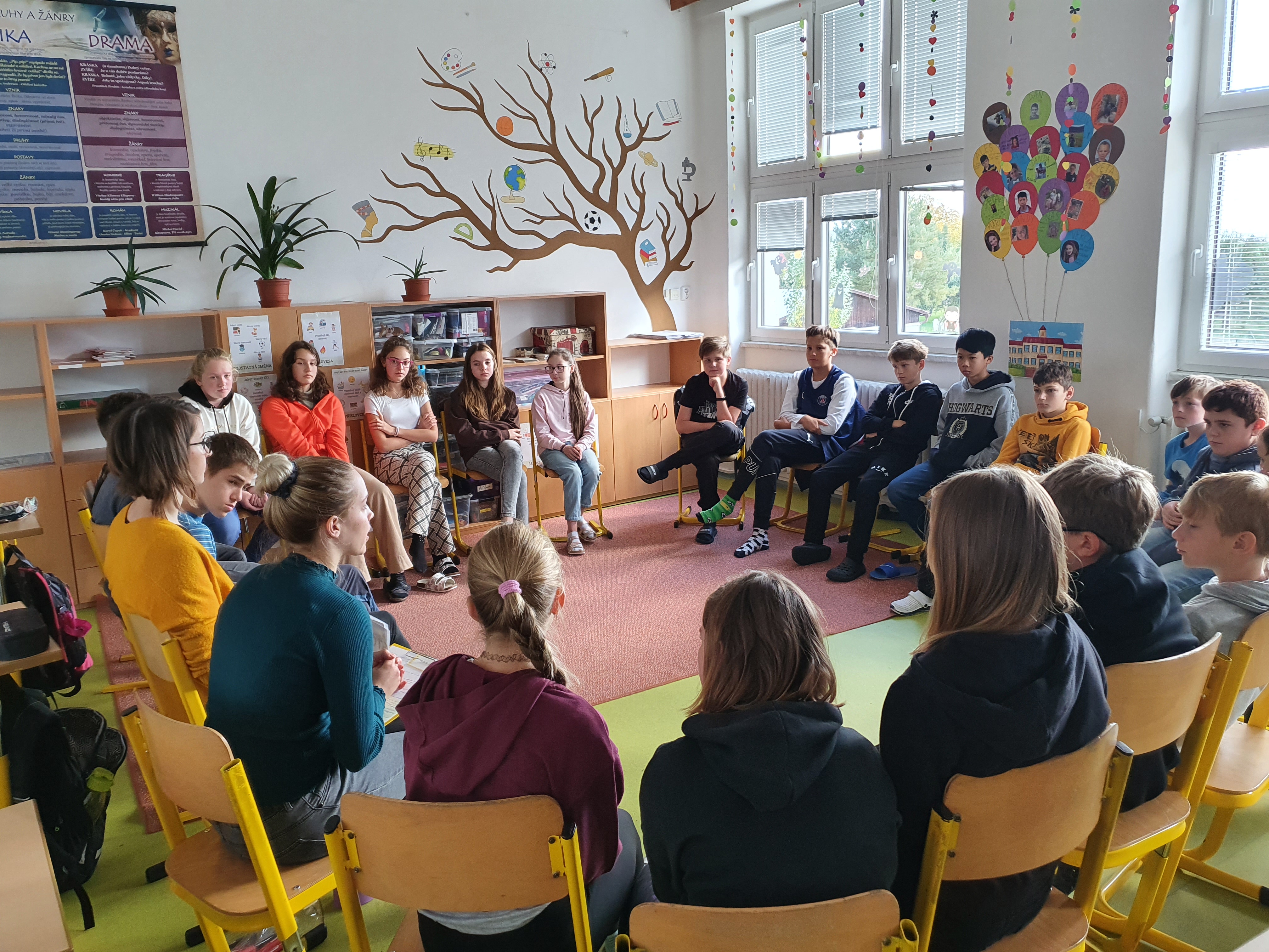 Dvě lektorky z obecně prospěšné společnosti Prostor Pro navštívily žáky 6. třídy. Během tohoto pololetí děti absolvují ještě dvě taková setkání, která jsou zaměřena především na prevenci rizikového chování, ale také na vztahy a komunikaci v kolektivu. Všichni spolupracovali a podíleli se na všech aktivitách. Někteří byli i překvapení, co nového se o svých spolužácích dozvěděli.
