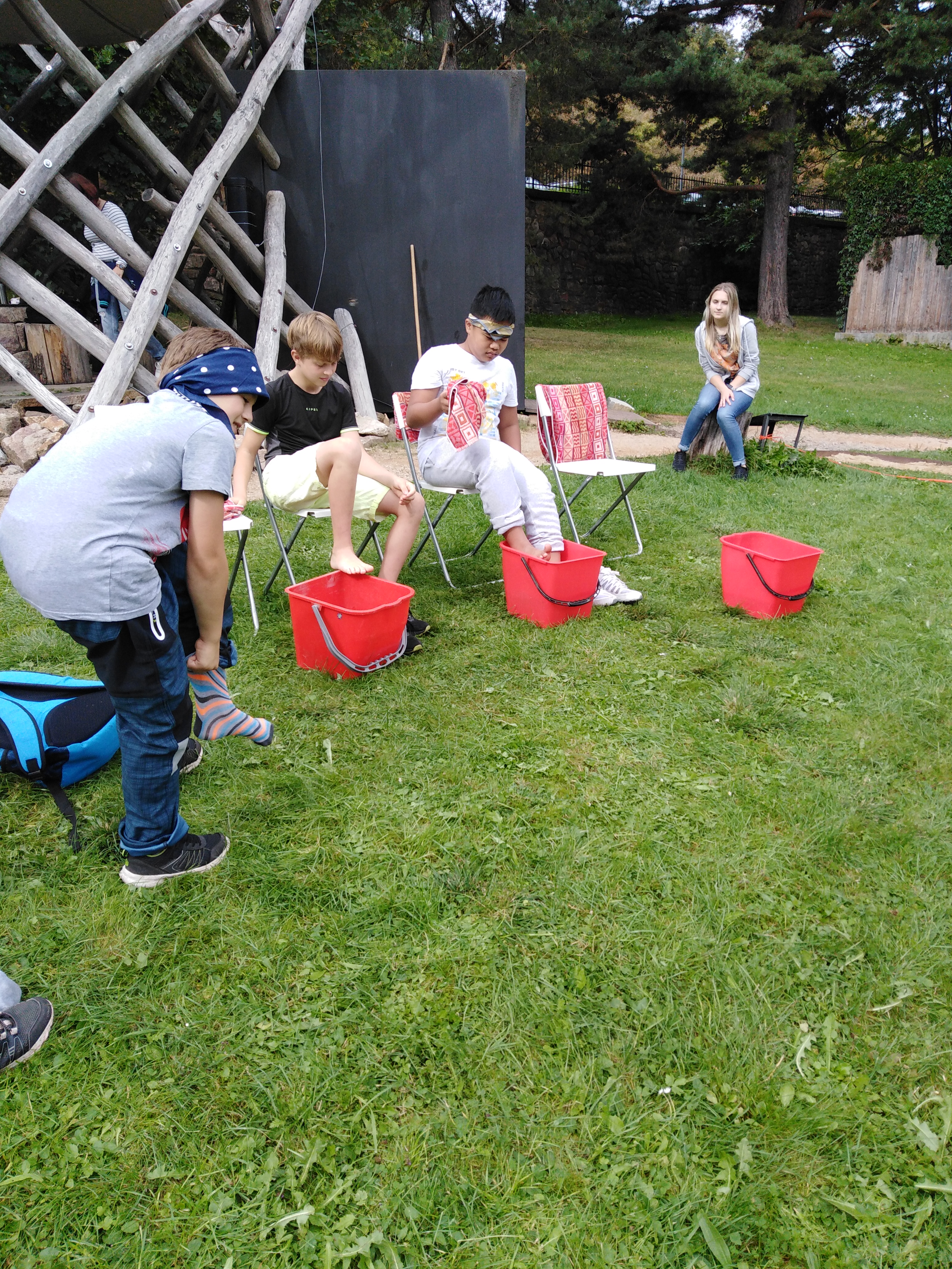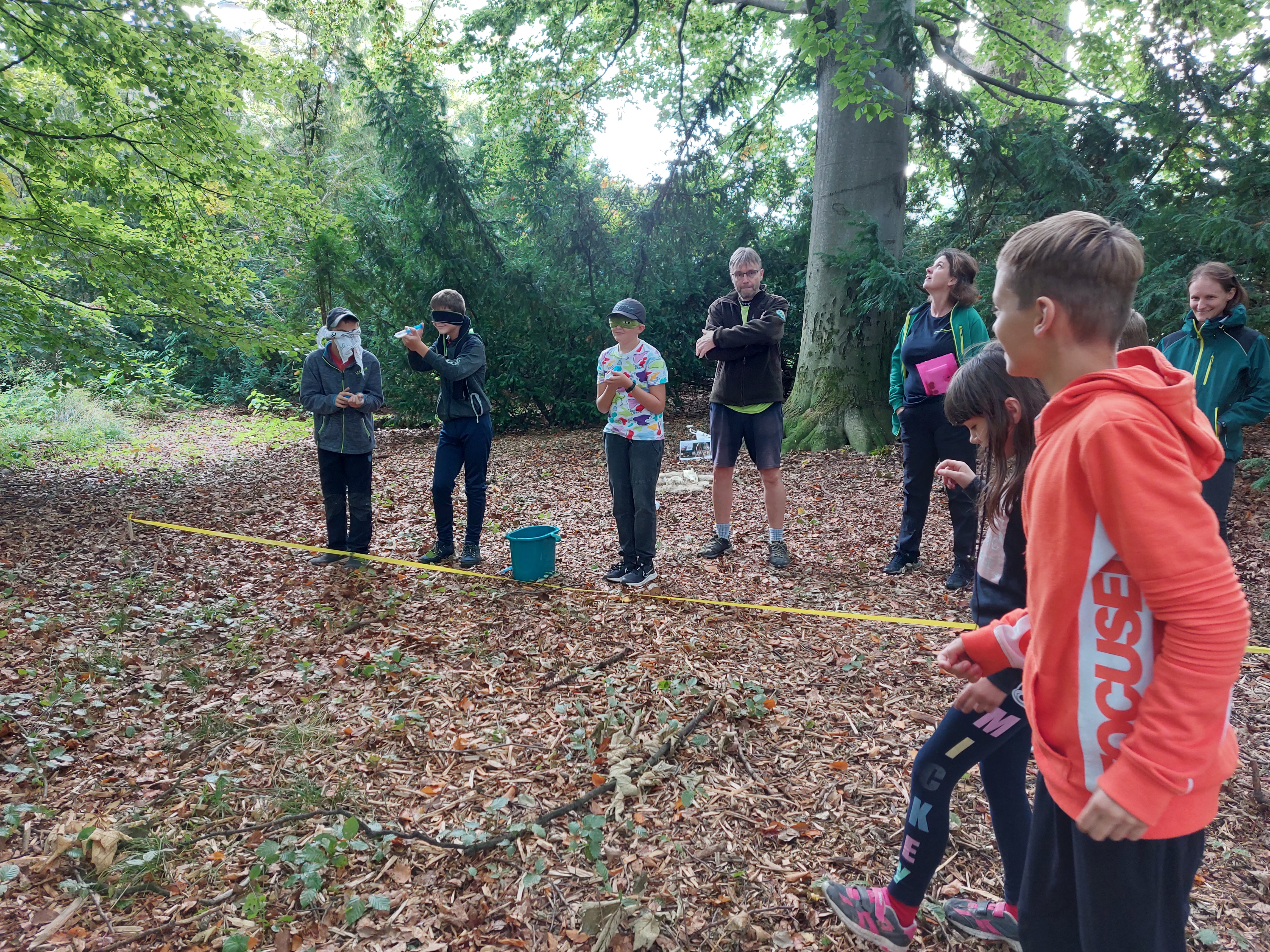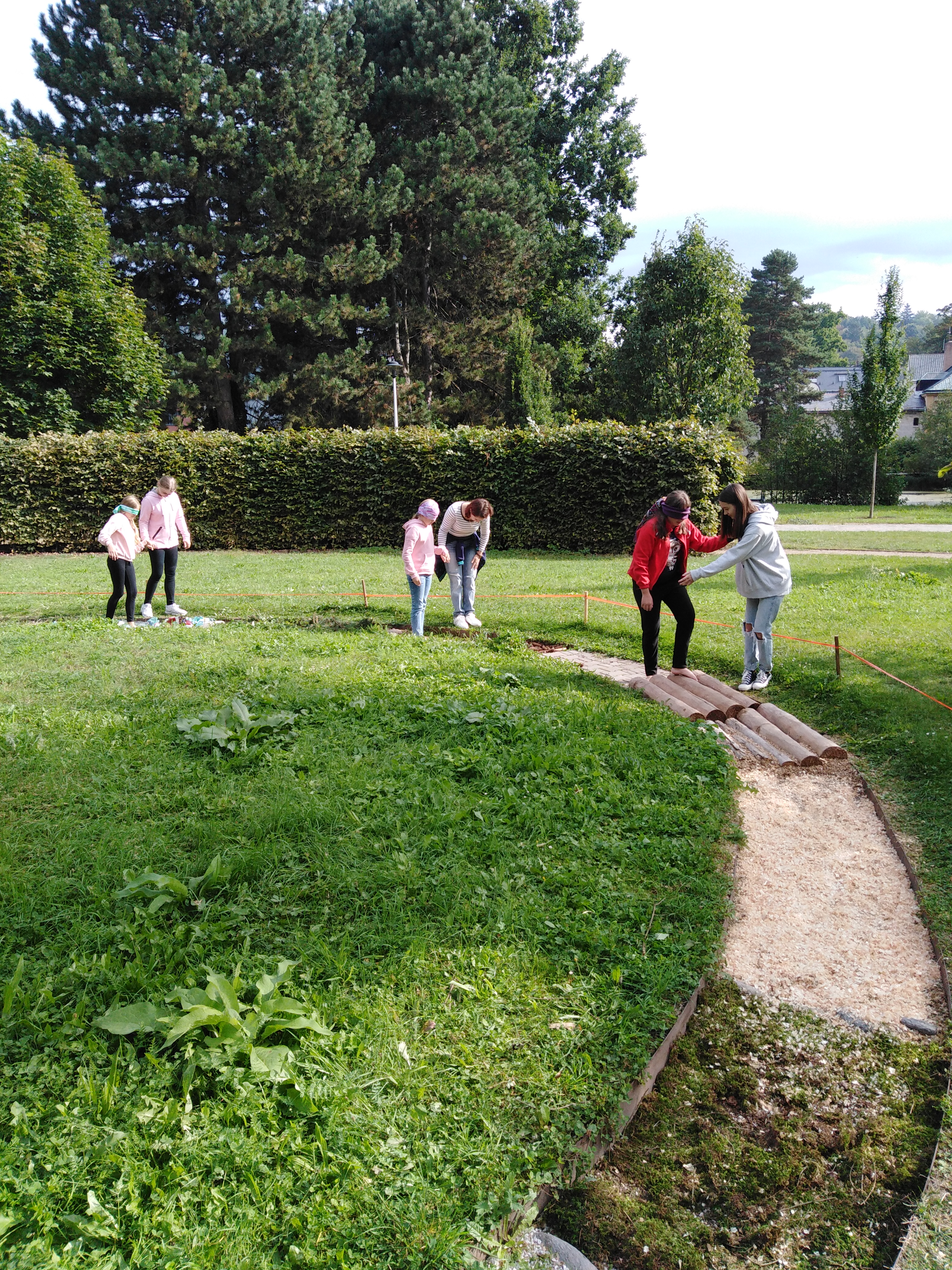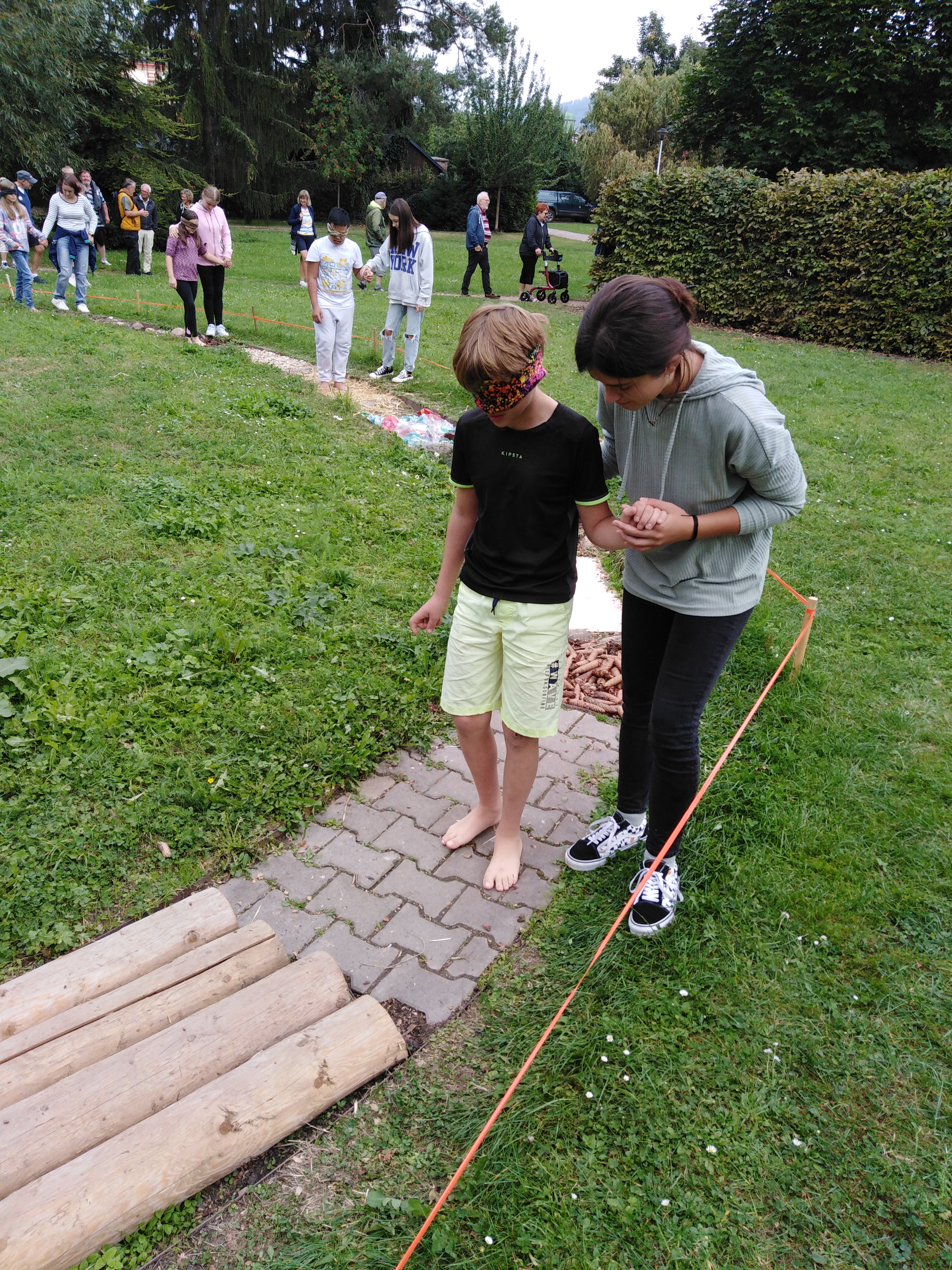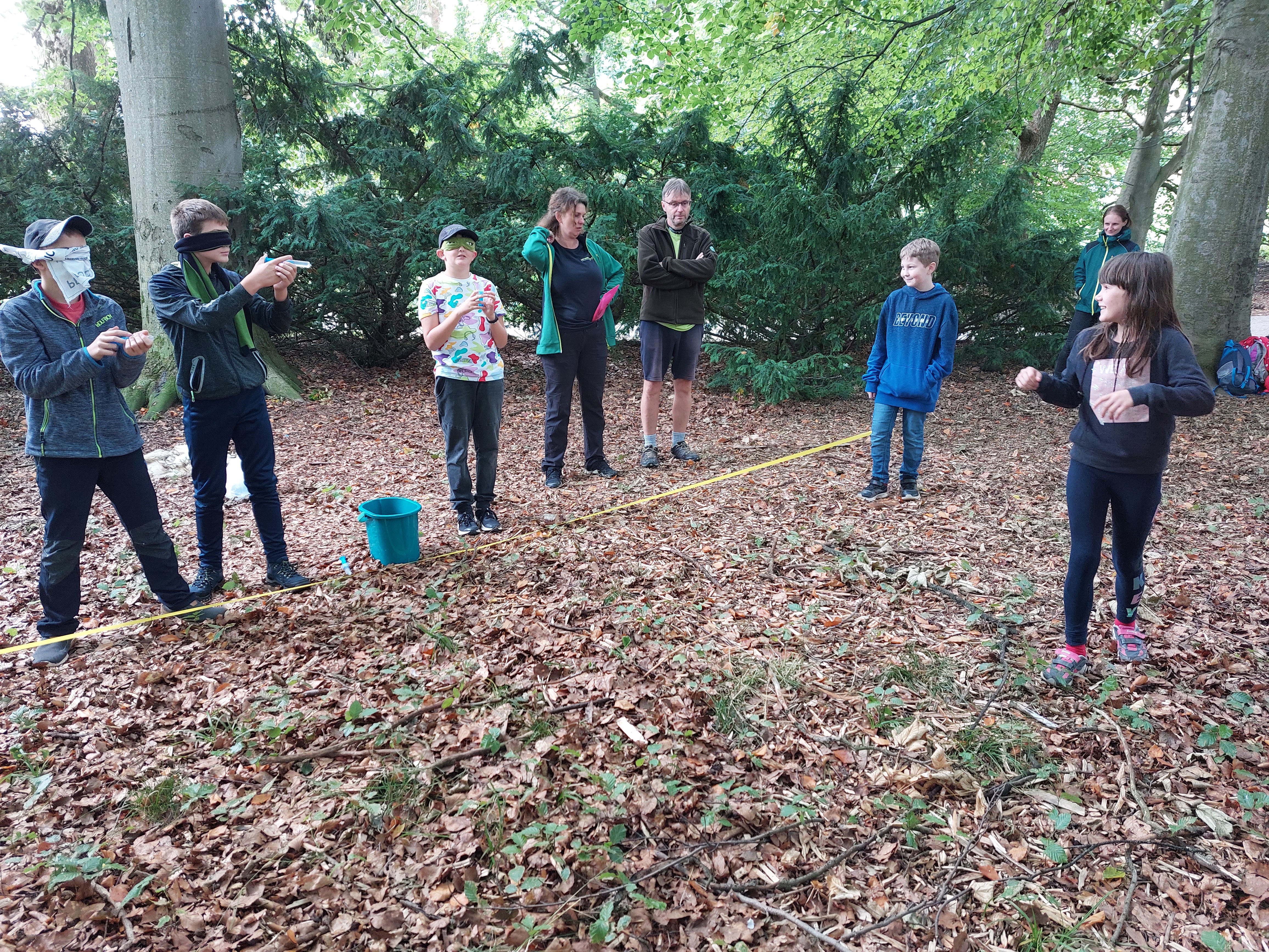 Vyzkoušeli jsme si spoustu aktivit poslepu: poznávali jsme stromy pomocí čuchu, jen s pomocí hmatu jsme si zahráli přírodní pexeso a podle sluchu jsme se snažili "zasáhnout" spolužáky. Také jsme si prošli smyslovou stezku - se zavázanýma očima jsme naboso poznávali, po čem zrovna jdeme - kamínky, písek, dřevěné kulánky apod.
