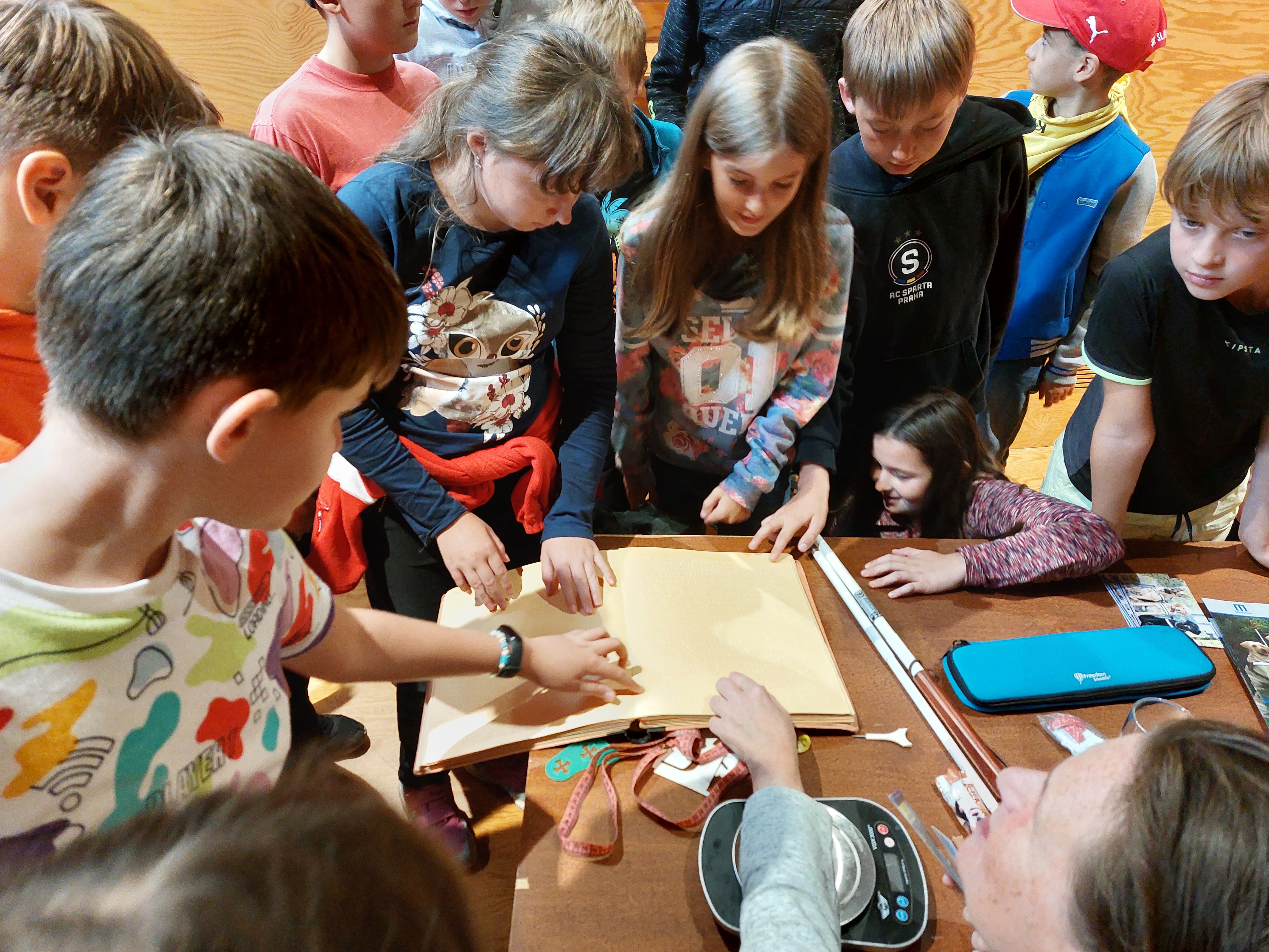 V úplném závěru jsme se setkali s nevidomou paní a jejím vodicím psem. Vyprávěla nám spoustu příhod, hlavně s jejím psem. Také nám ukázala knihu napsanou Braillovým písmem, na kterou jsme si mohli i sáhnout!