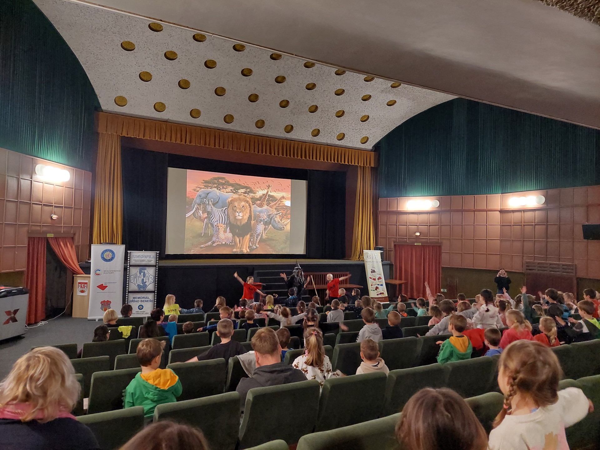 Ve čtvrtek 9.5.2024 se děti z celé mateřské školy vydaly autobusem do kina ve Dvoře králové nad Labem. V kině děti přivítala čarodějnice, pak všichni společně vyčarovali pohádky z kouzelného klobouku. Než začalo promítání, děti se s čarodějnicí protáhly při písničce Pět minut v Africe. Následně děti shlédly pásmo pohádek pod názvem Pohádková zahrádka. A jako je pestrá zahrádka, tak pestré byly i pohádky, mezi které patřily Tarbíci, Modrá pohádka, Krysáci a Pat a Mat. Děti byly z tohoto programu nadšené a po celou dobu zaujatě a s radostí pohádky sledovaly až do samého konce.