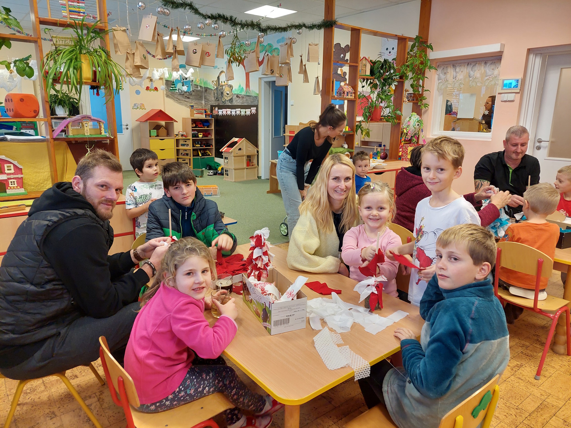 Ve středu 29.11. proběhly ve školce dílničky s rodiči. Předvánoční atmosféru nám pomohl navodit padající sníh za oknem, a tak jsme se za zvuku vánoční písní mohli pustit do tvoření. Ve všech třídách vznikaly za spolupráce dětí a rodičů překrásné výrobky – stromečky, věnečky, svícínky, ozdobičky, sněhuláčci, které ještě dále poputují na prodejní výstavu do ZOO ve Dvoře Králové nad Labem, která proběhne tuto sobotu 2.12. Zde si můžete výrobky prohlédnout a samozřejmě i zakoupit. 😊