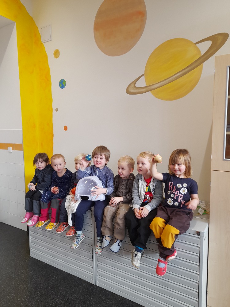 Tento týden jsme měli možnost putovat vesmírem. Díky výukovému programu, který nám umožnila využít naše Základní škola. Děti se mohly ocitnout ve vesmíru. Z projekce planet, černé díry i mléčné dráhy byly děti nadšené. Vyzkoušely jsme si také pokusy s potravinářským barvivem, kde se celá galaxie rozplynula v barevnou spleť. Děti si také vyzkoušely Ozoboty, kterými byly zaujaty i nejmenší děti. Ozoboti mohou jezdit po černé linii jakéhokoliv tvaru ( srdíčko, ruka, traktor). Jakmile si Ozoboti potřebovali odpočinout, děti si nasadily 3D brýle, kterými lze spatřit vesmír, jak ho ještě neznáme. Nakonec jsme mohli vidět i raketu, která letěla až na Měsíc :).
