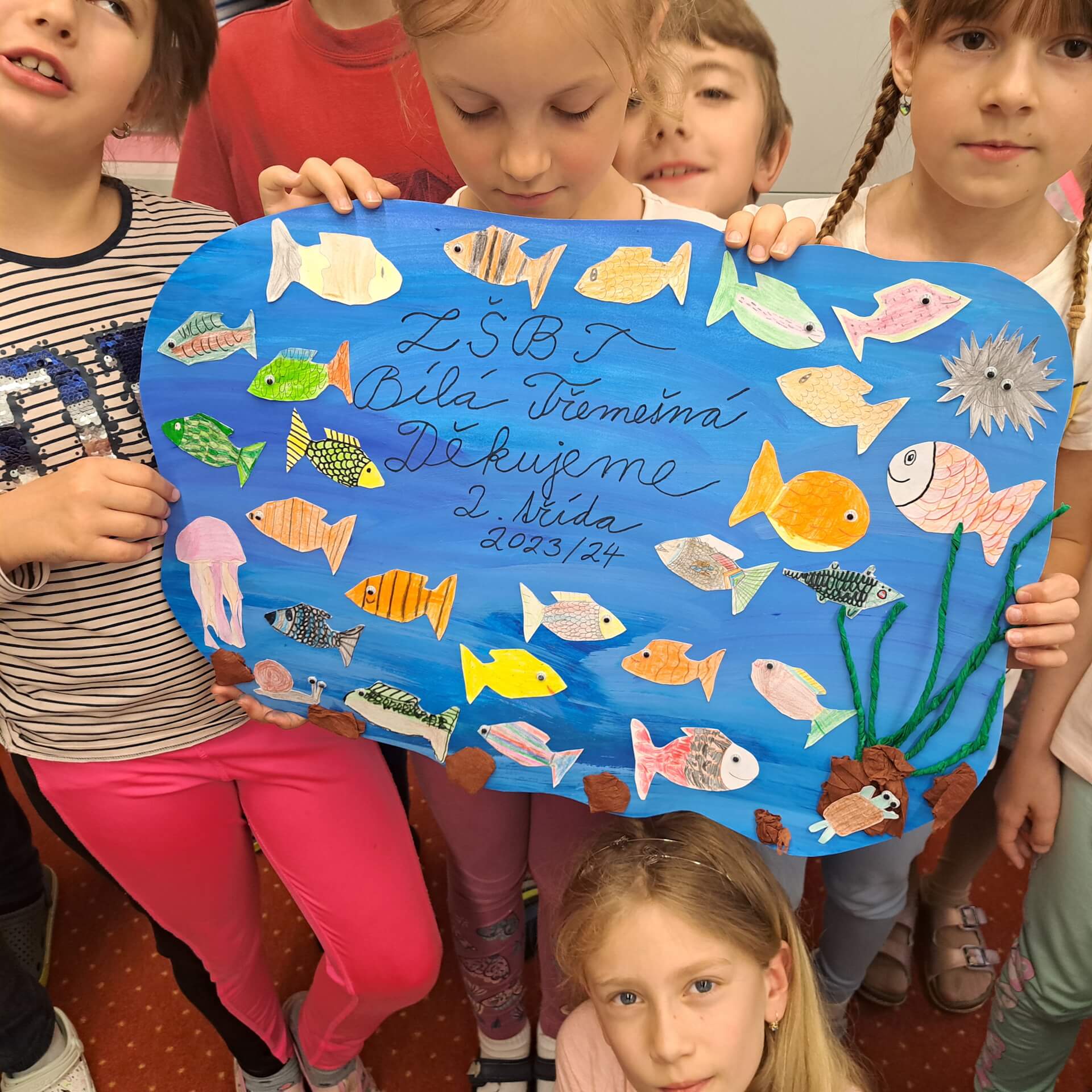 Jako poděkování za krásný kurz jsme vyrobili se druhou třídou veliký rybník plný rybek.