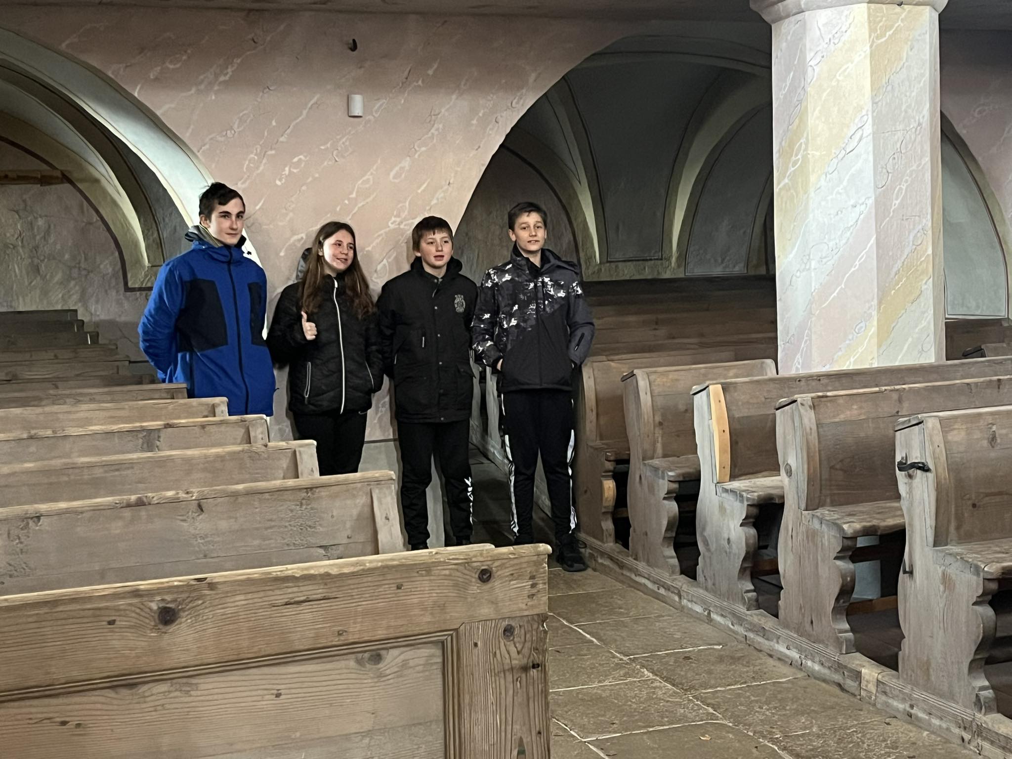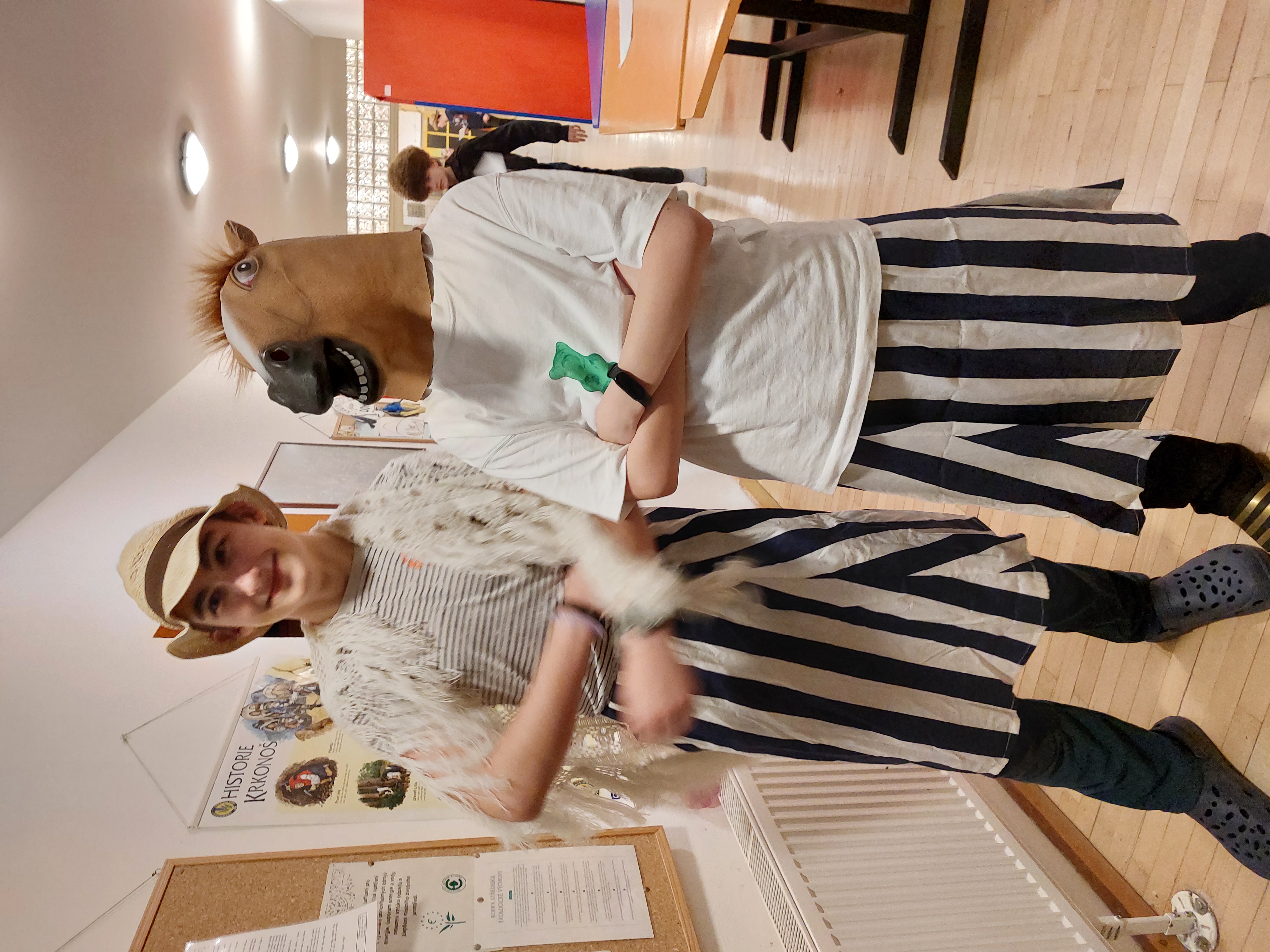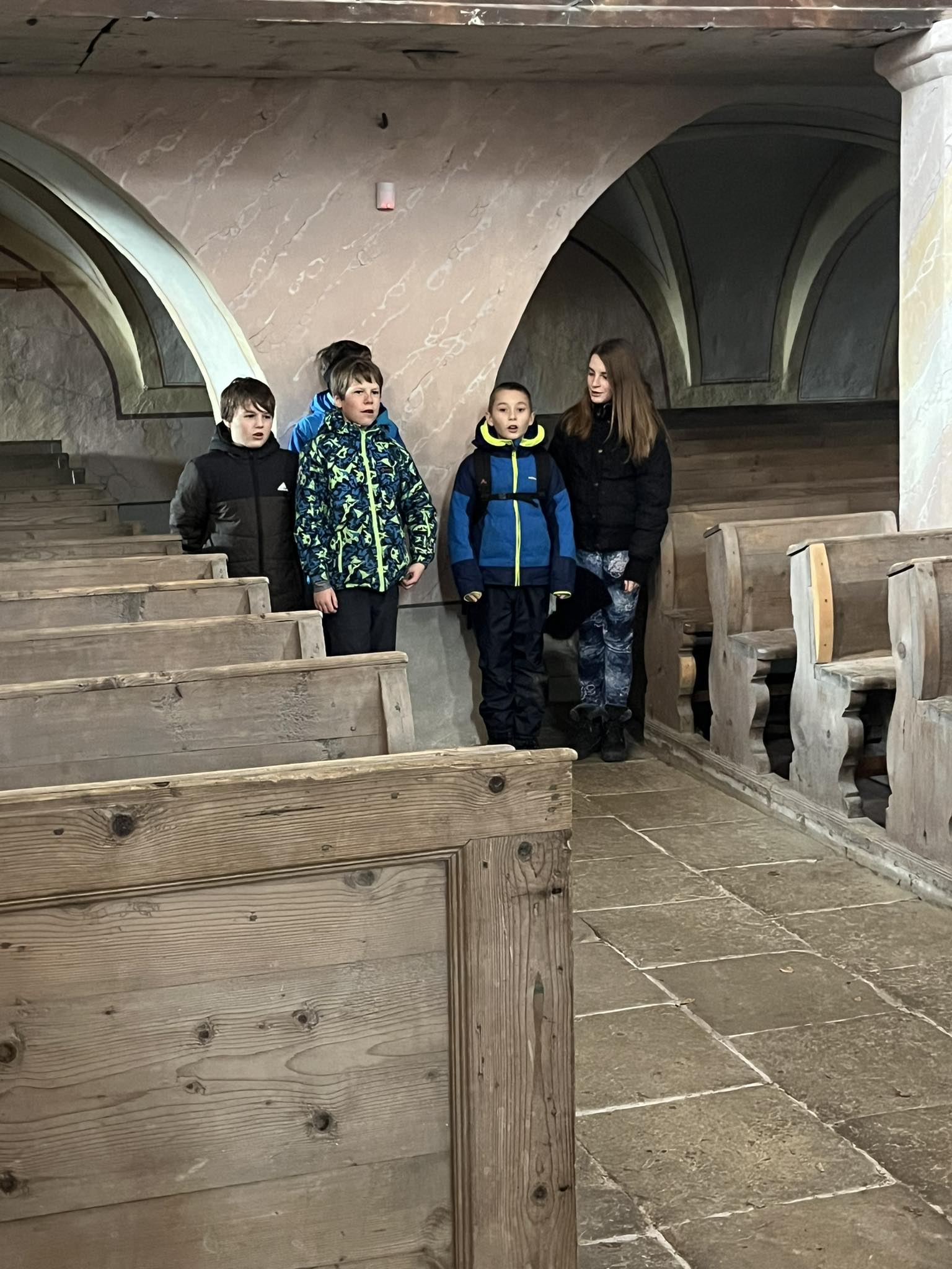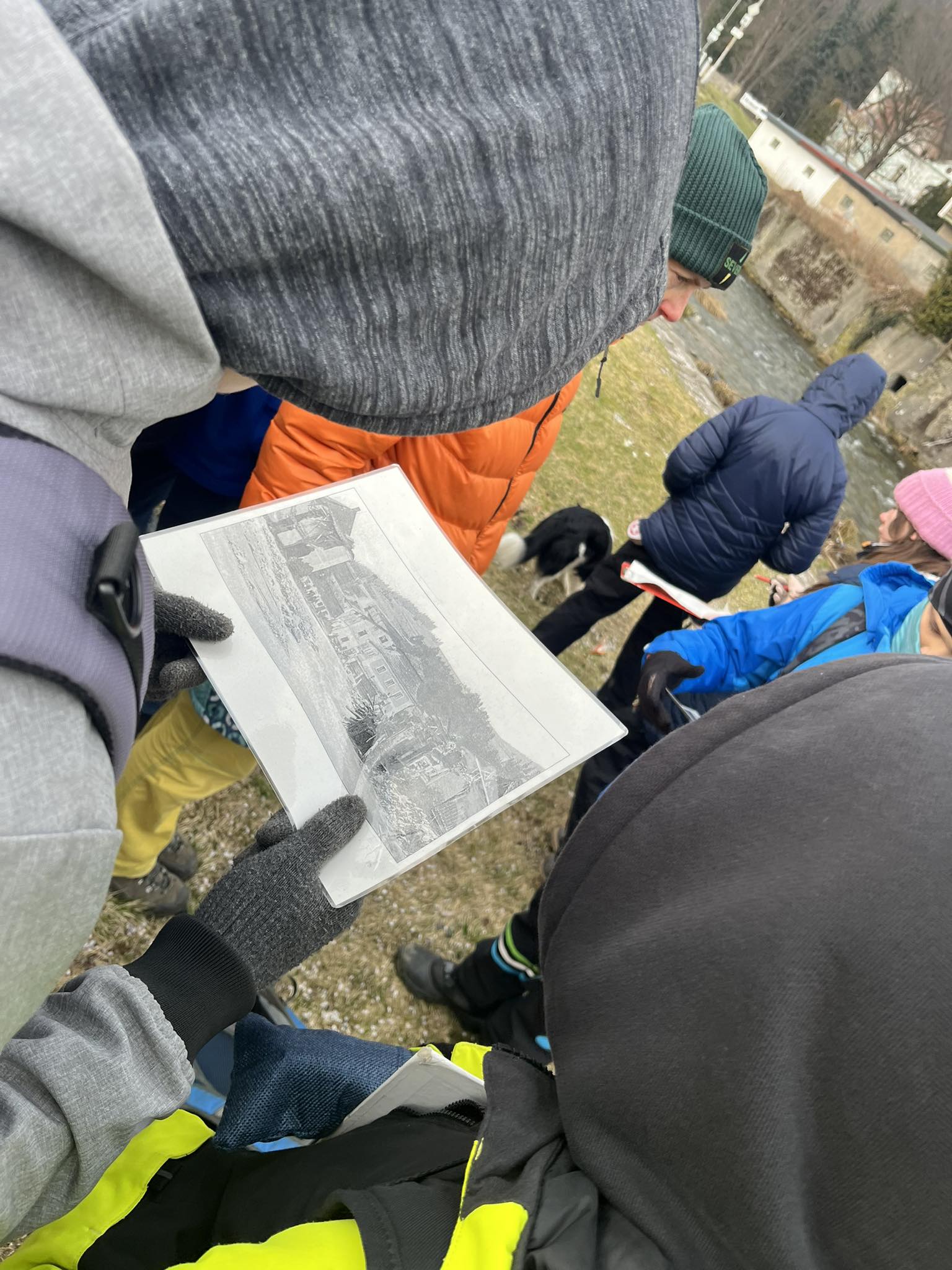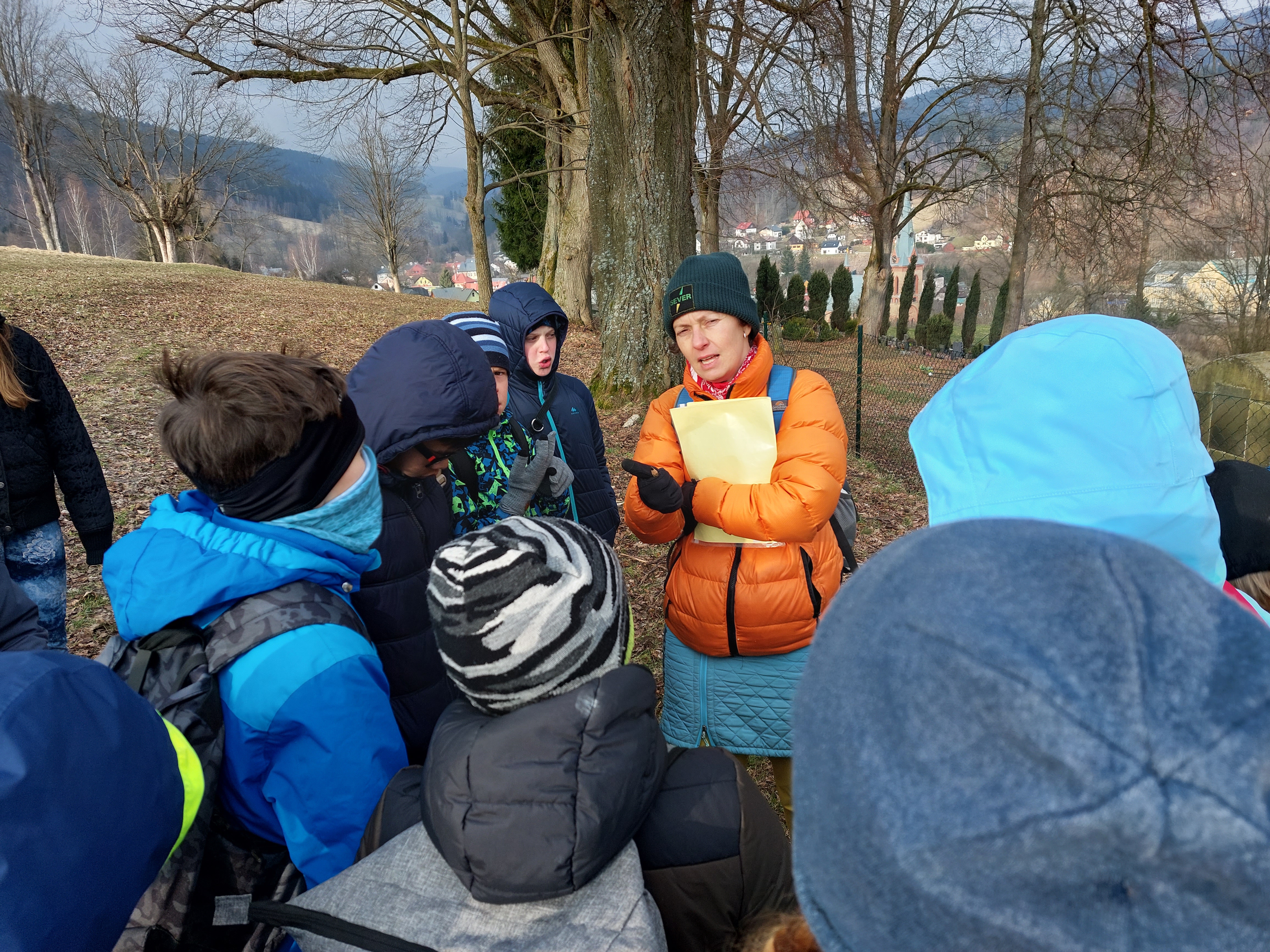 Odpoledne jsme cestovali do minulosti a "prohlédli" jsme si Krkonoše v rámci procházky v různých stoletích. Během toho jsme po týmech odpovídali na otázky a plnili různé úkoly- třeba jsme zpívali v místním kostele.