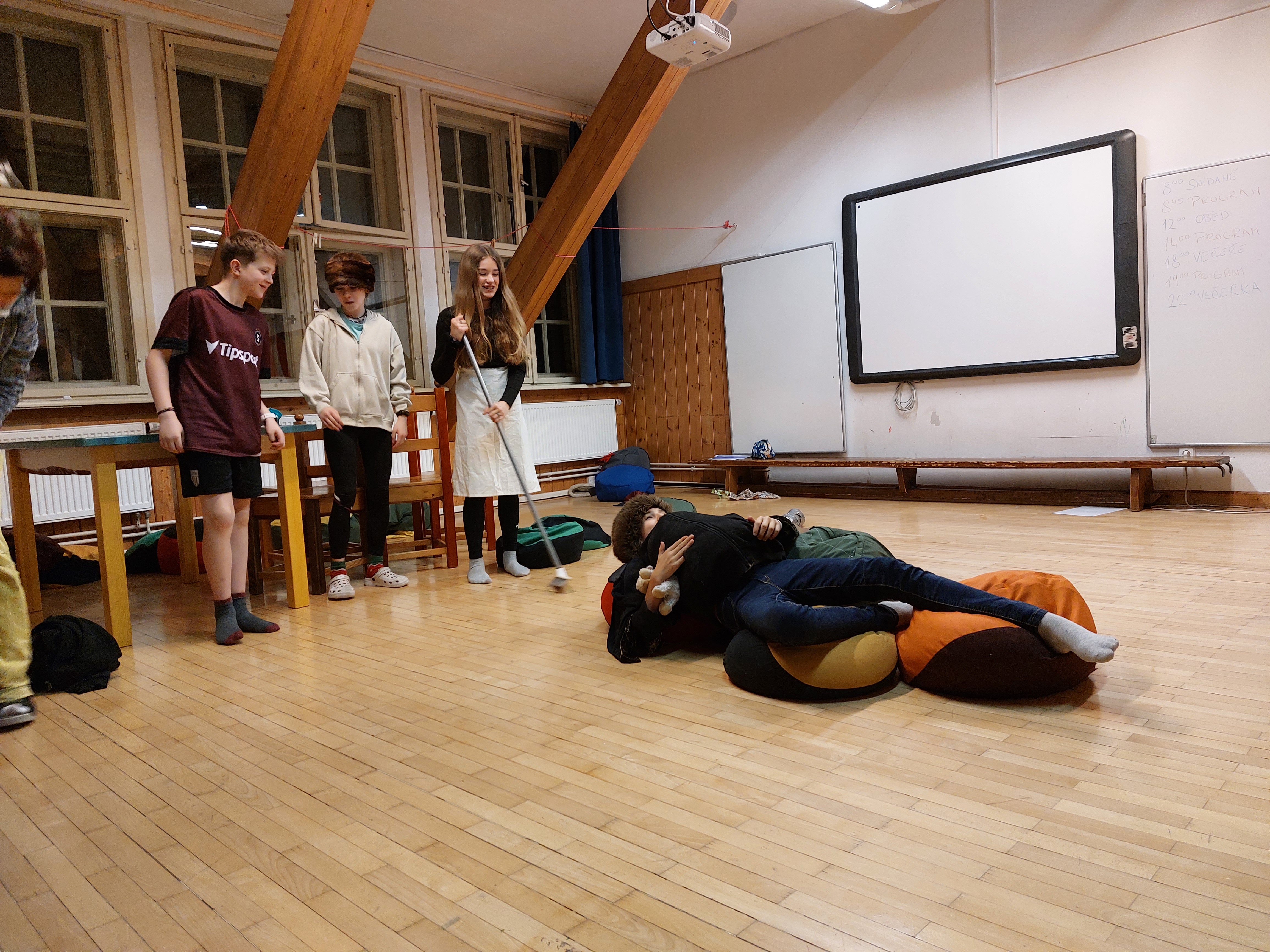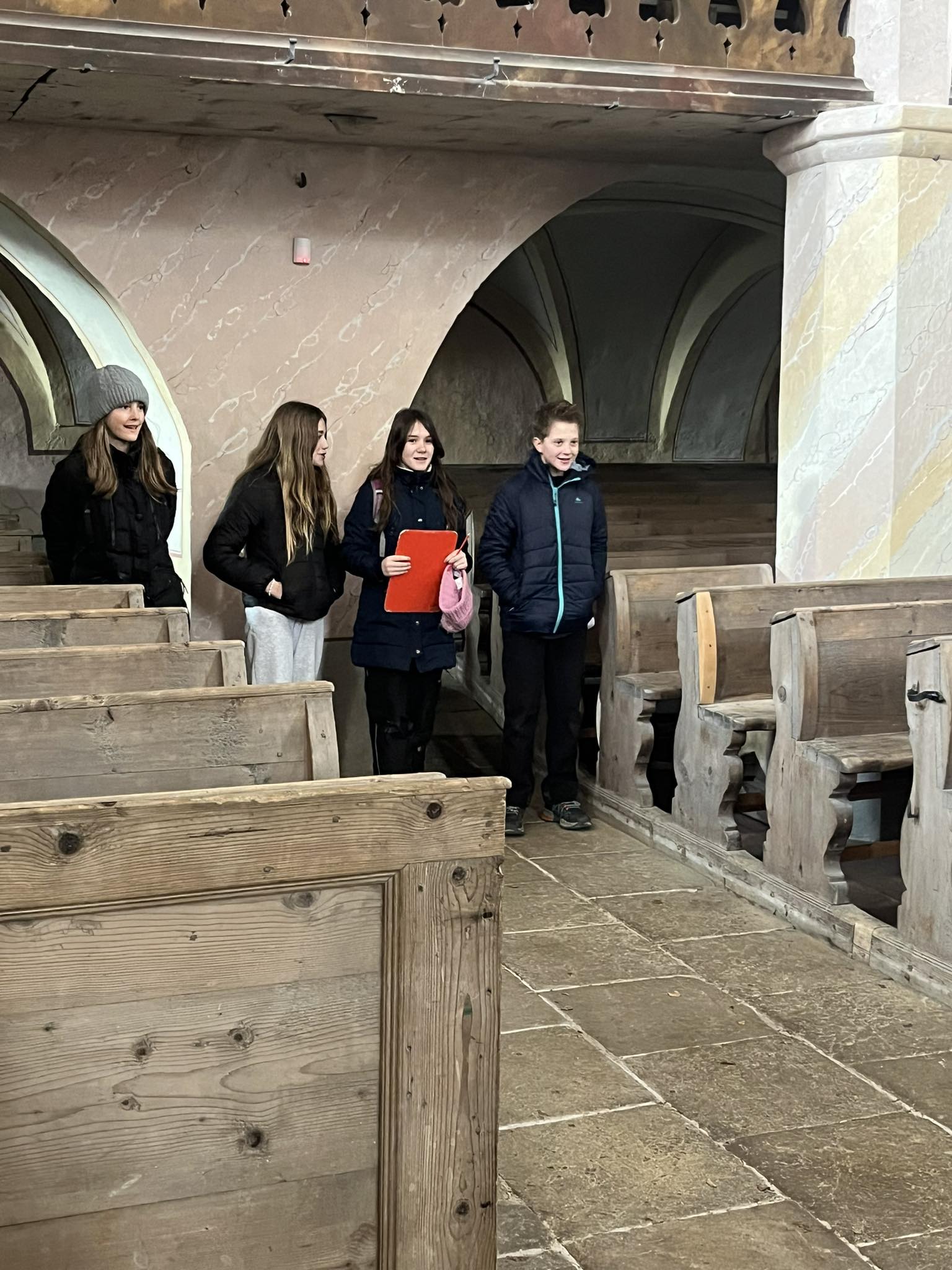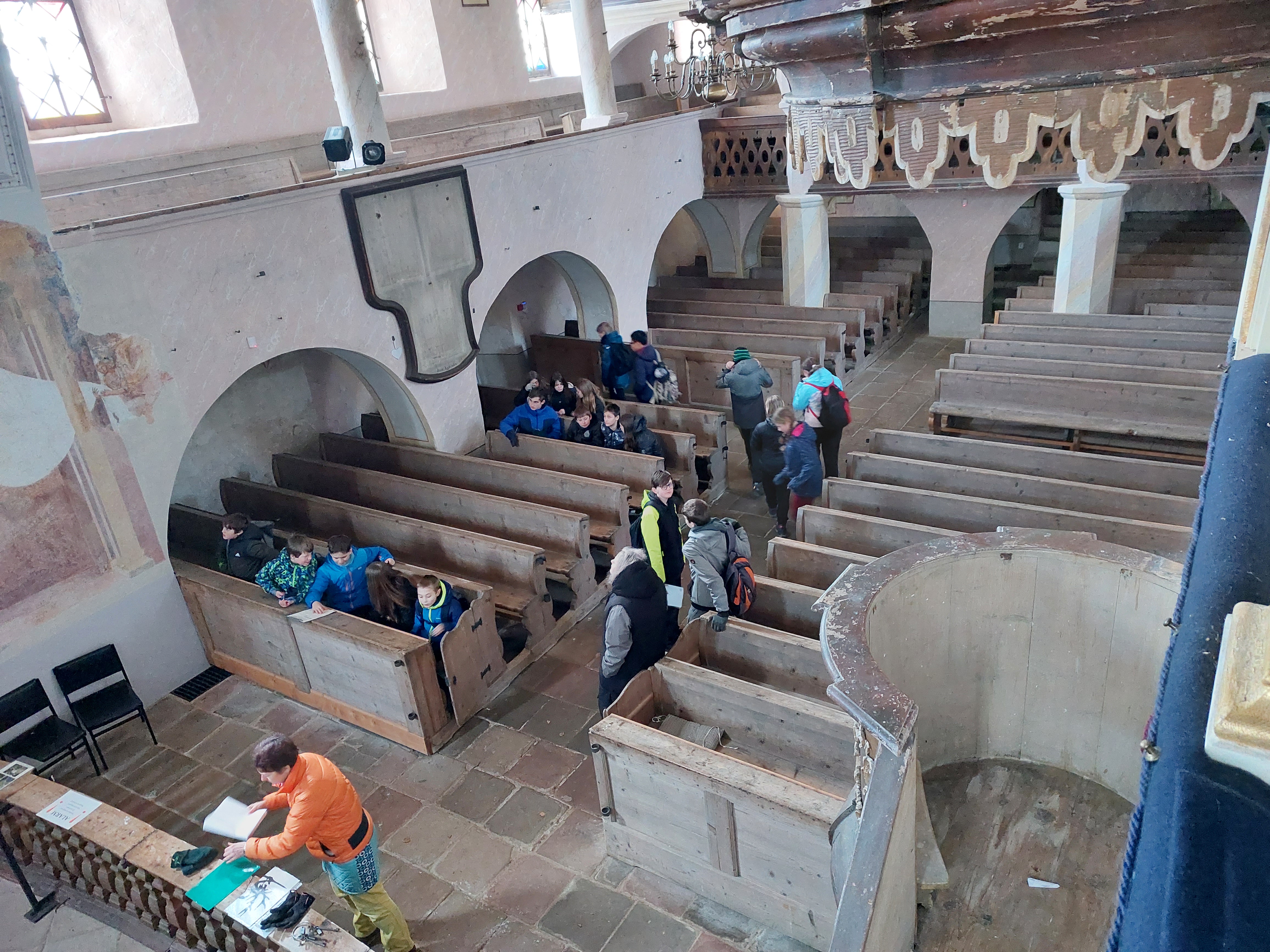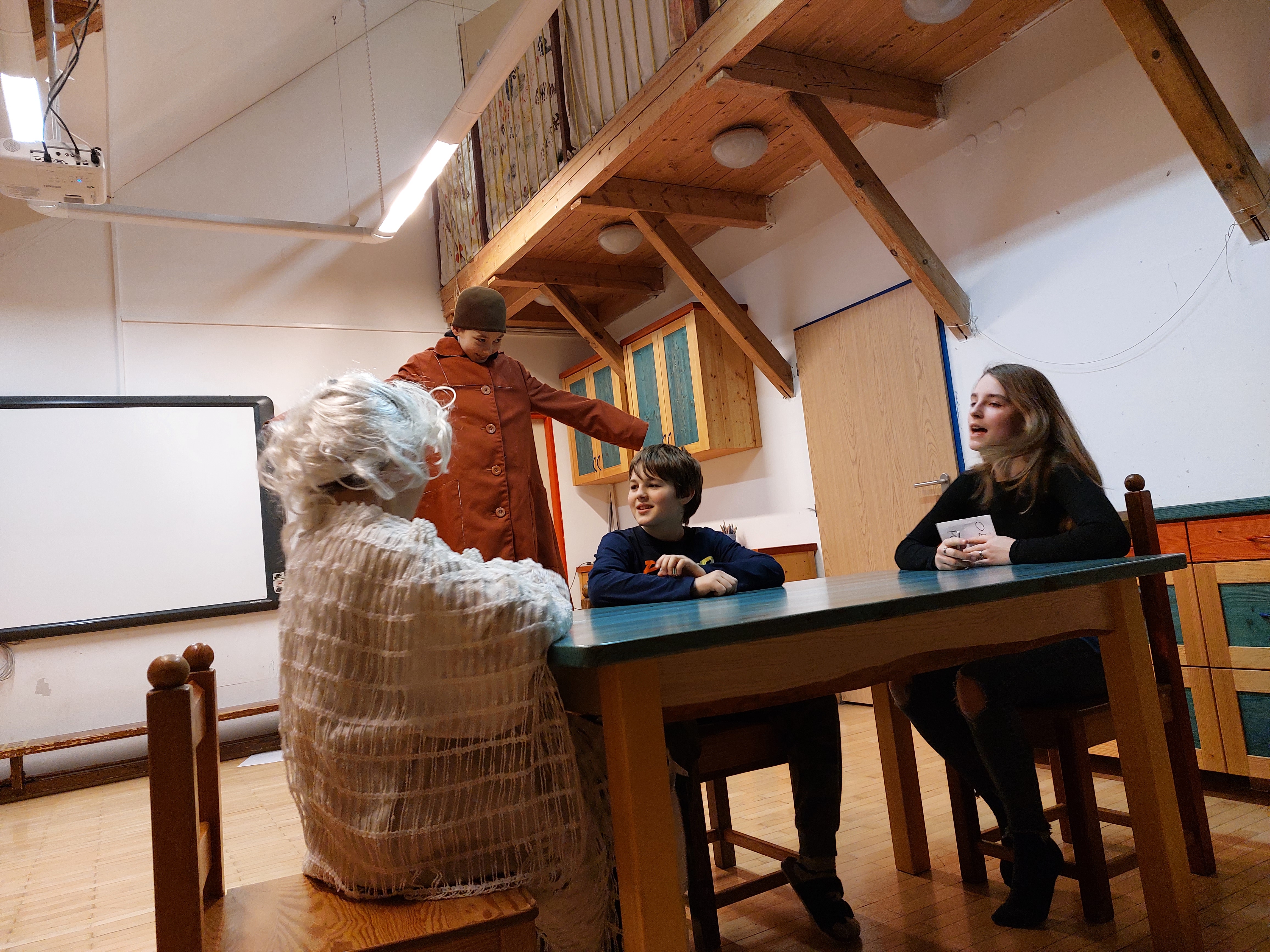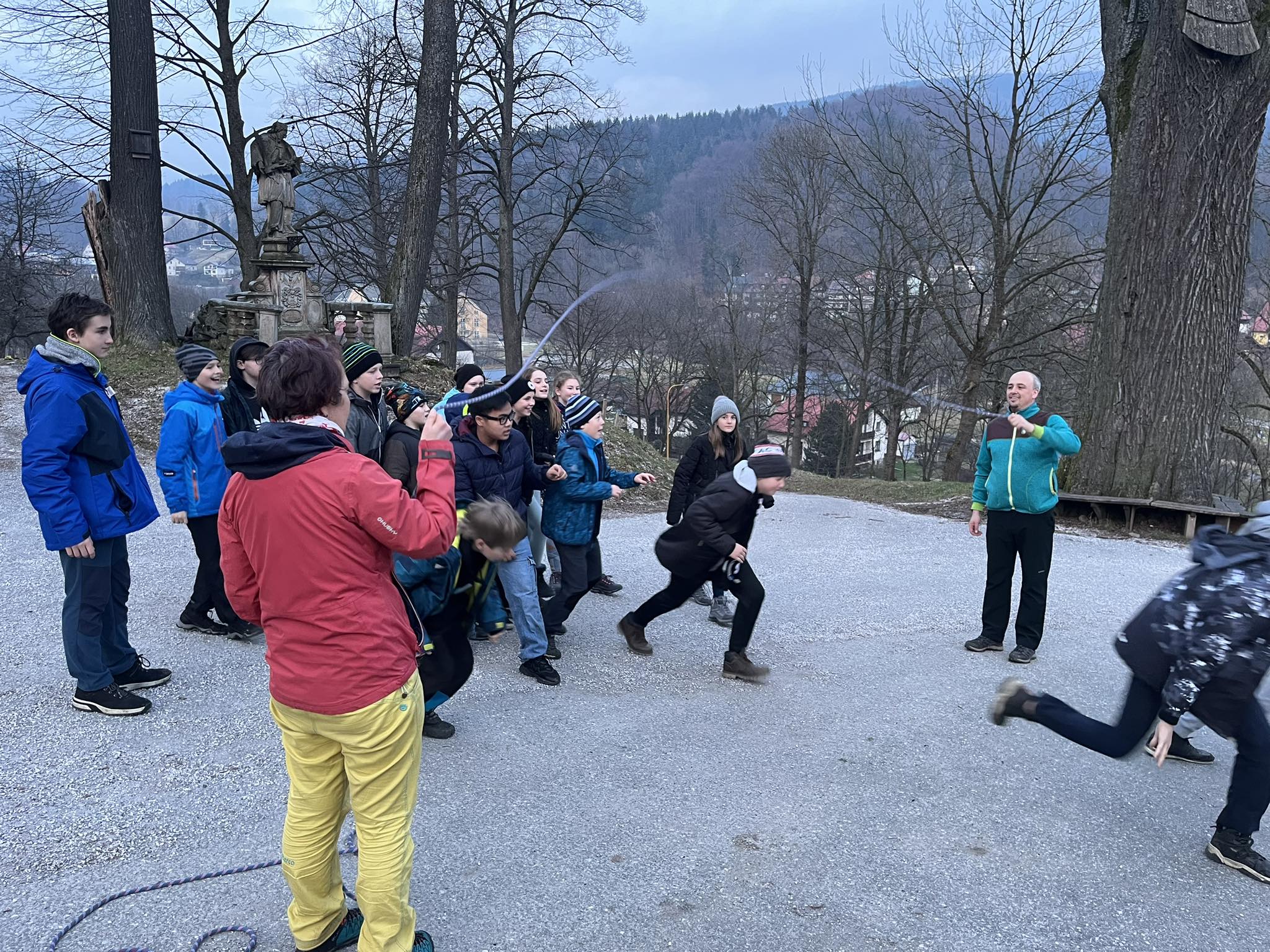 Odpoledne jsme cestovali do minulosti a "prohlédli" jsme si Krkonoše v rámci procházky v různých stoletích. Během toho jsme po týmech odpovídali na otázky a plnili různé úkoly- třeba jsme zpívali v místním kostele.