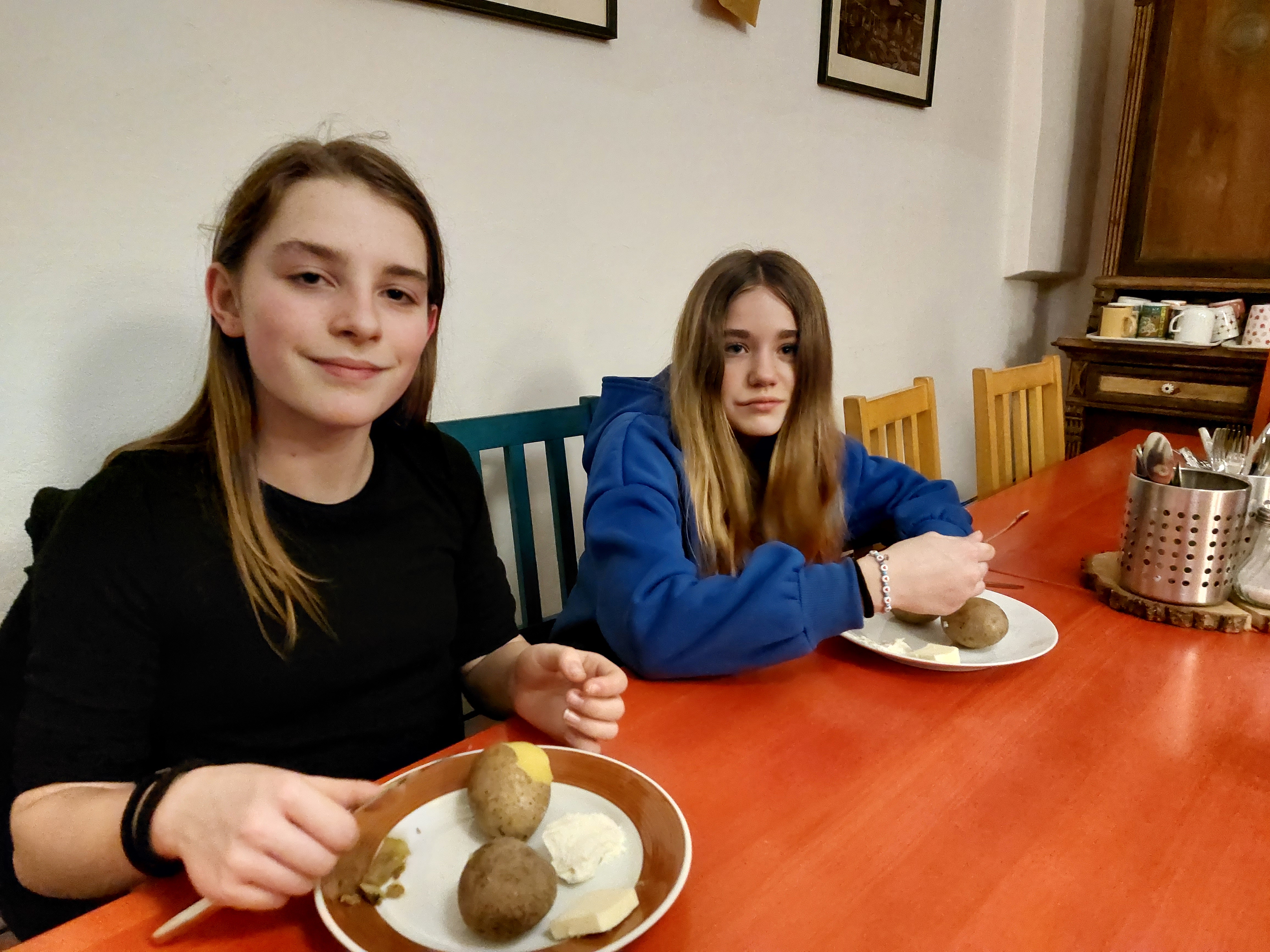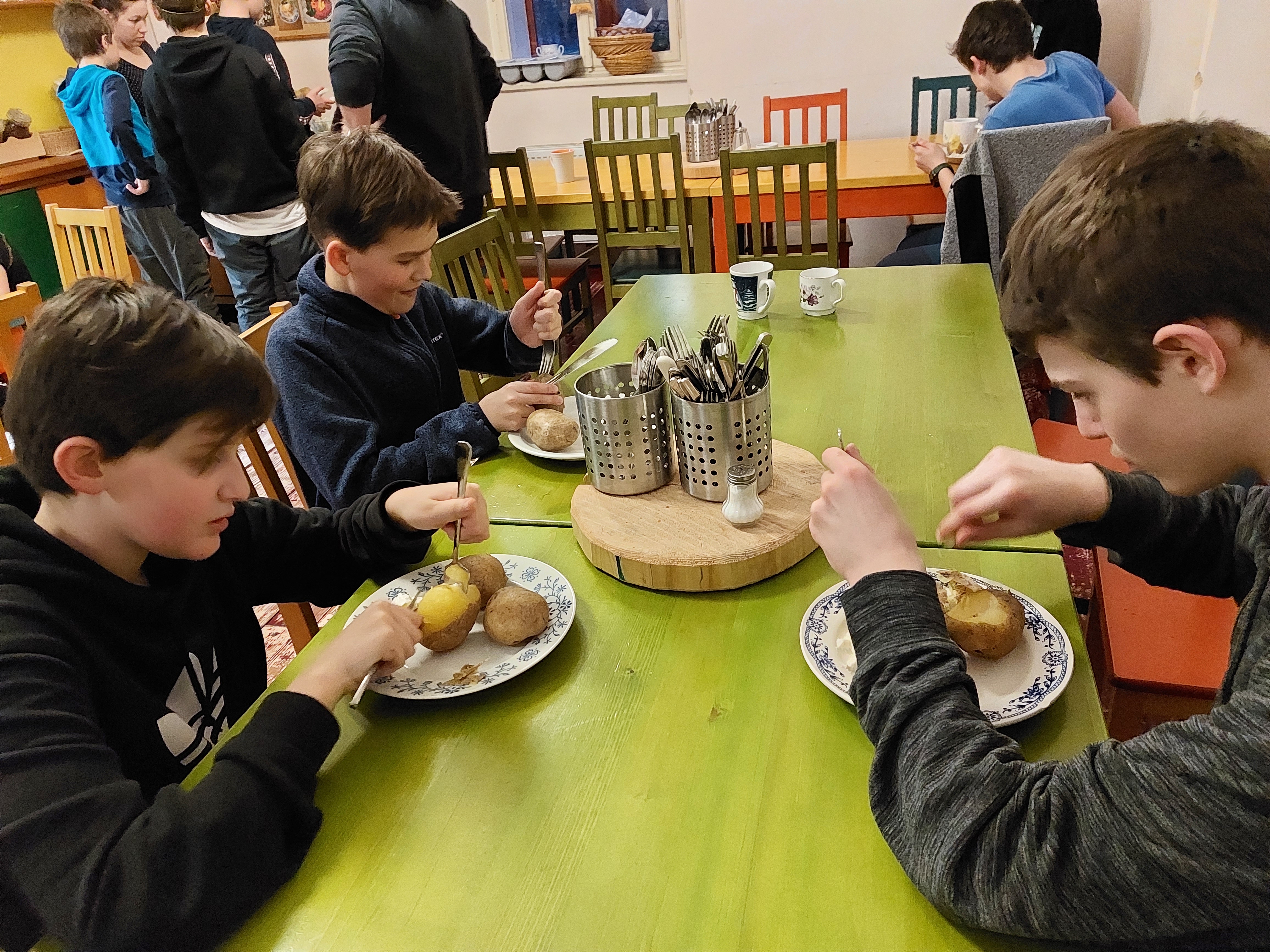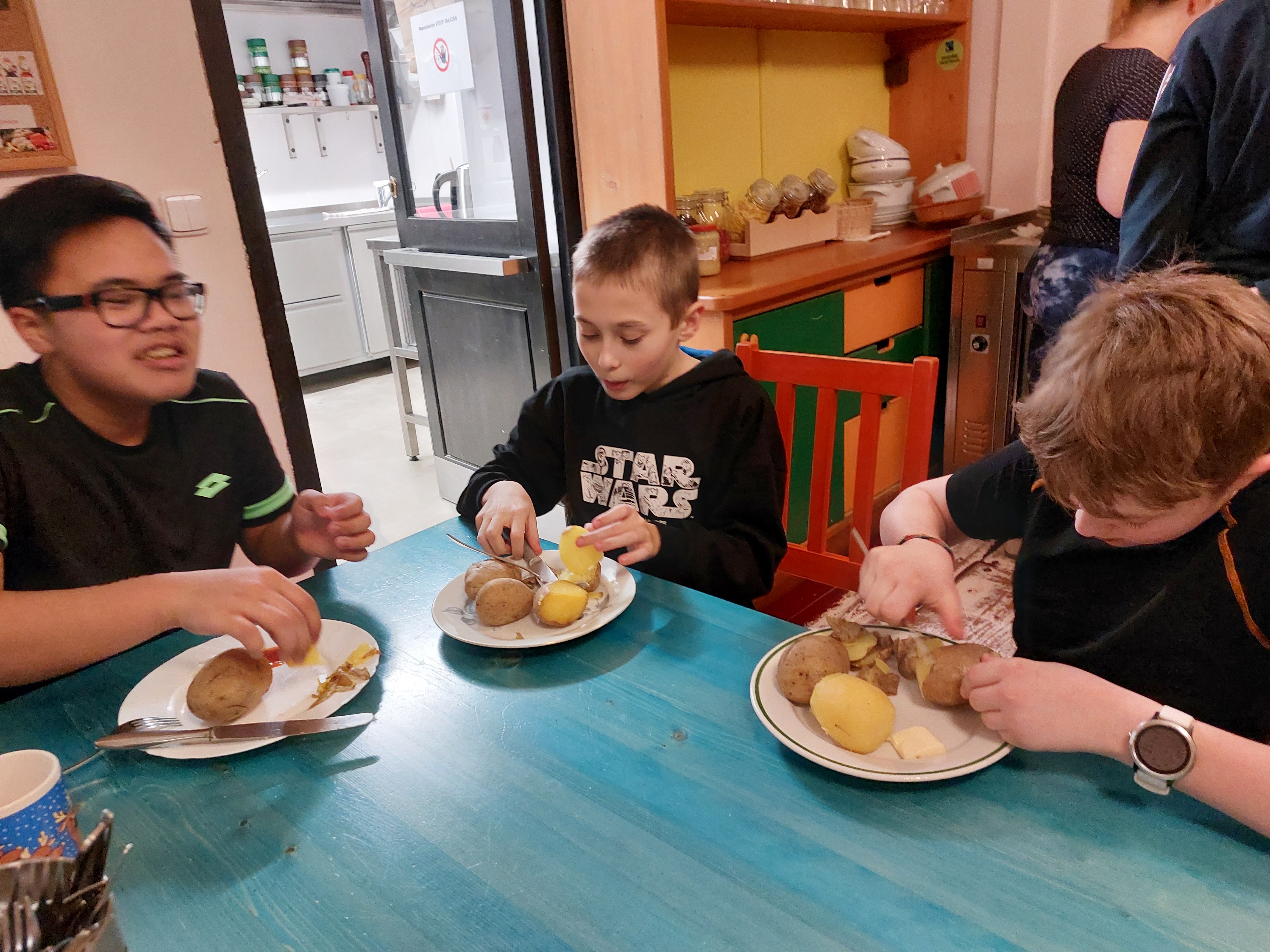 Večer některé překvapily brambory na loupačku a pak už nás čekala jen řízená relaxace a popovídali jsme si o vyhynulých zvířatech.