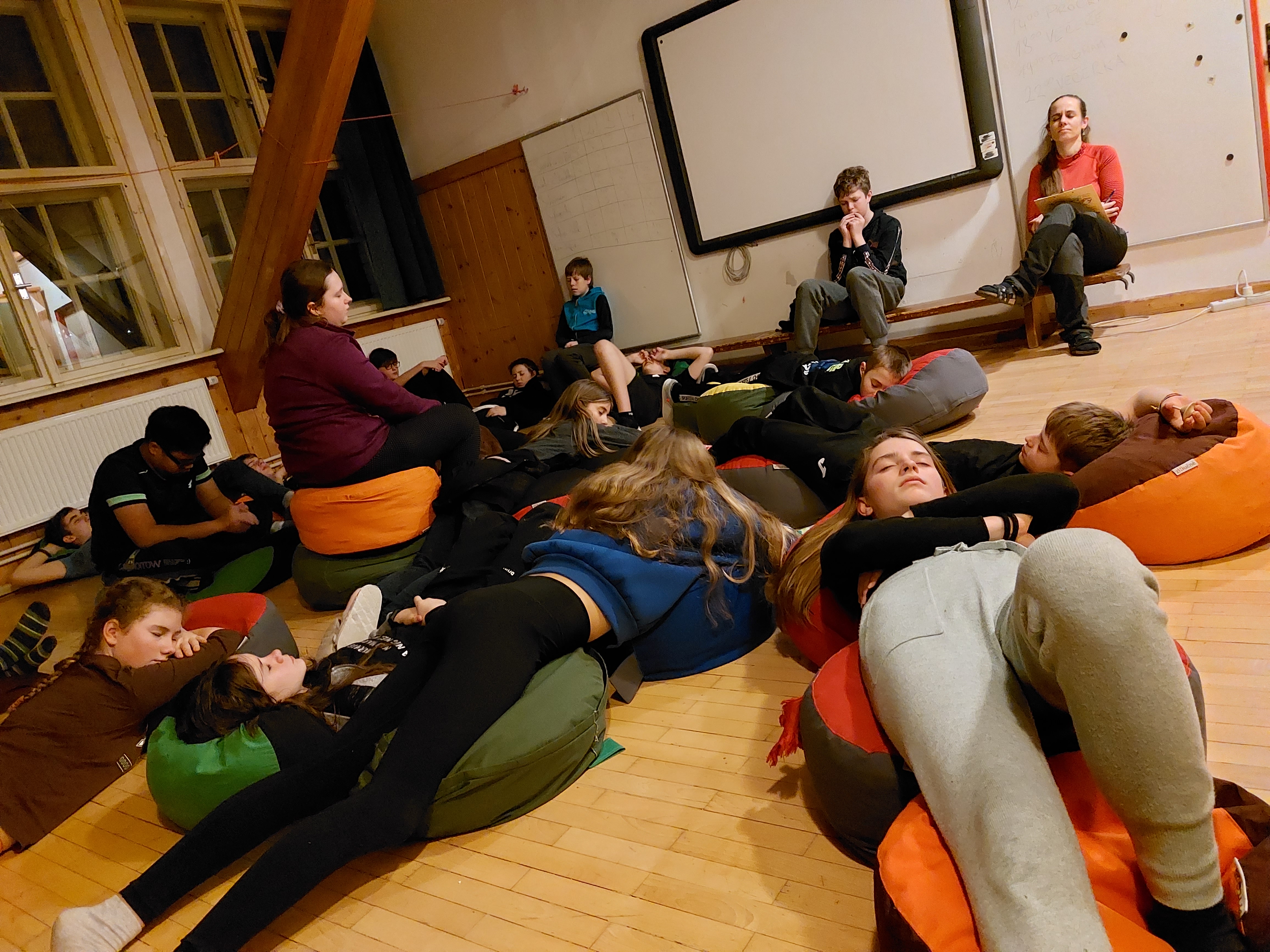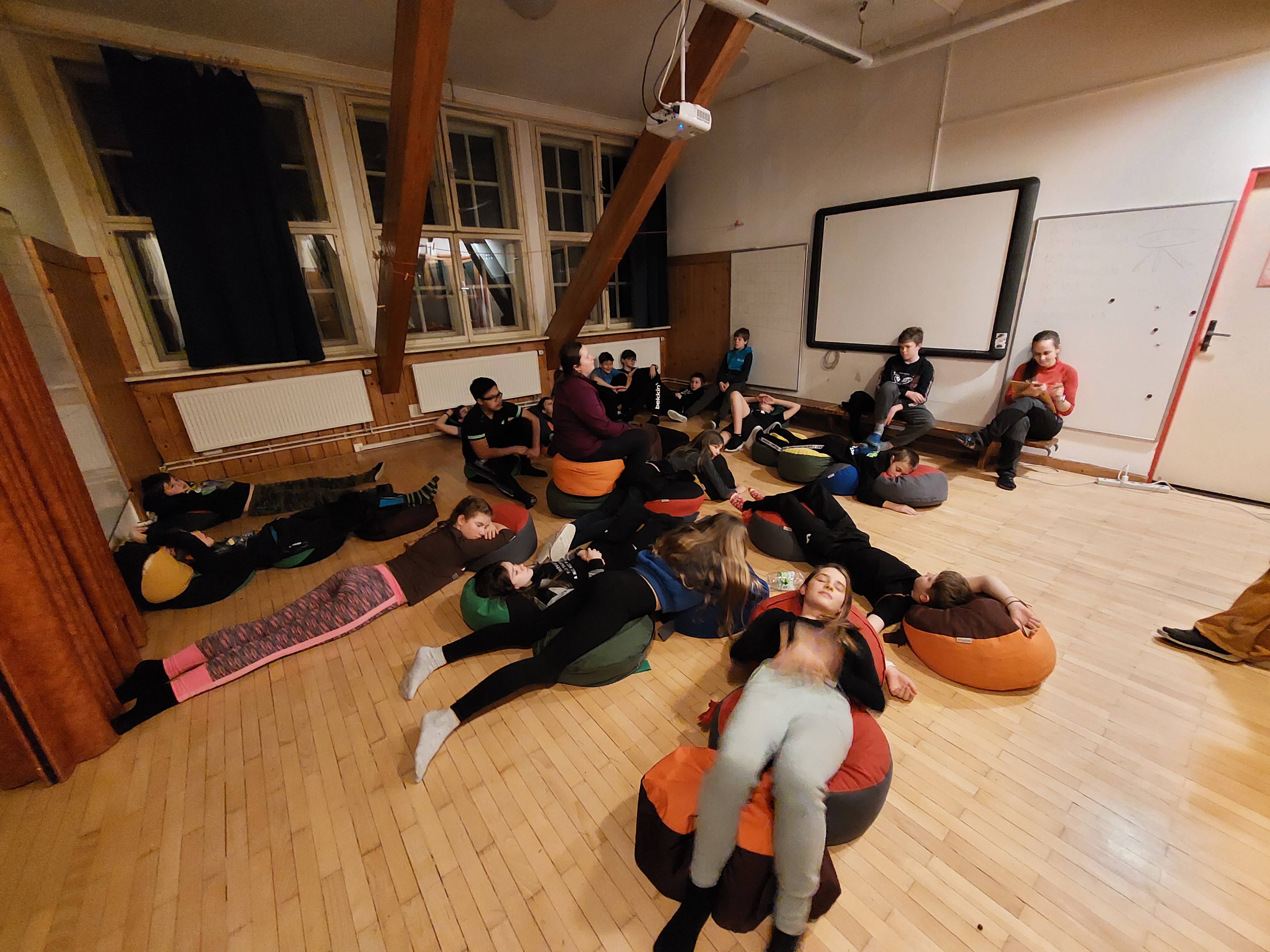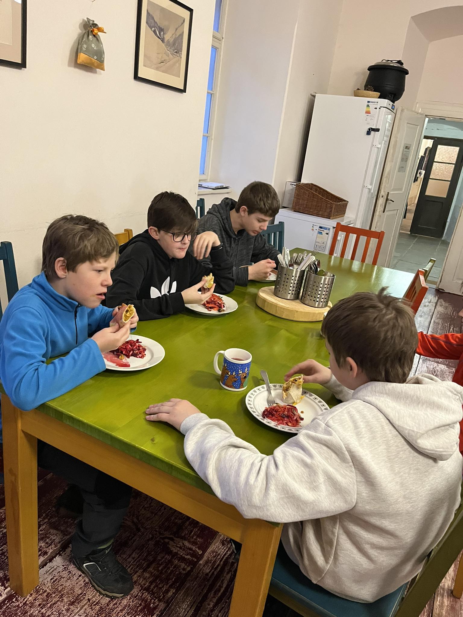 Večer některé překvapily brambory na loupačku a pak už nás čekala jen řízená relaxace a popovídali jsme si o vyhynulých zvířatech.
