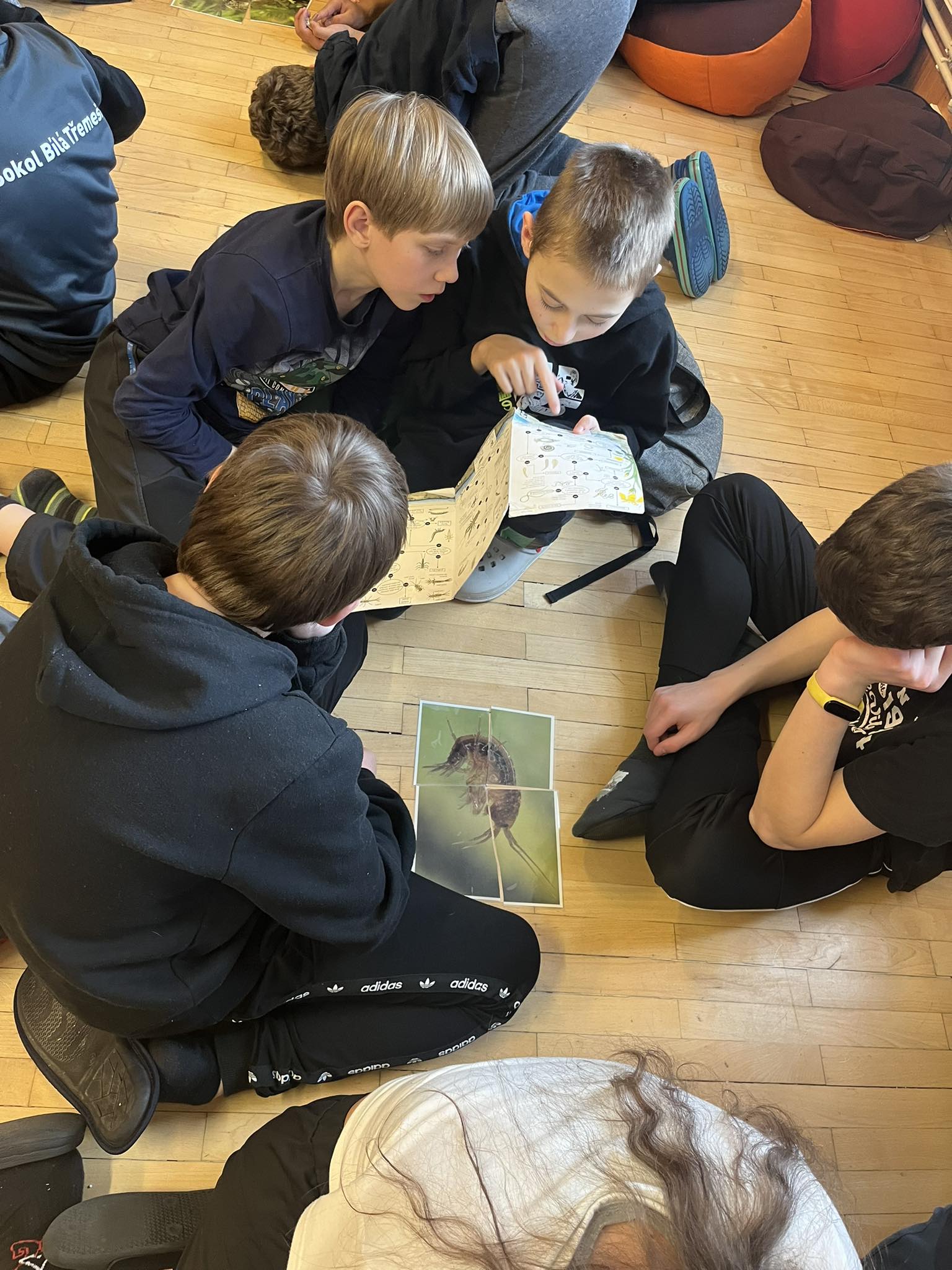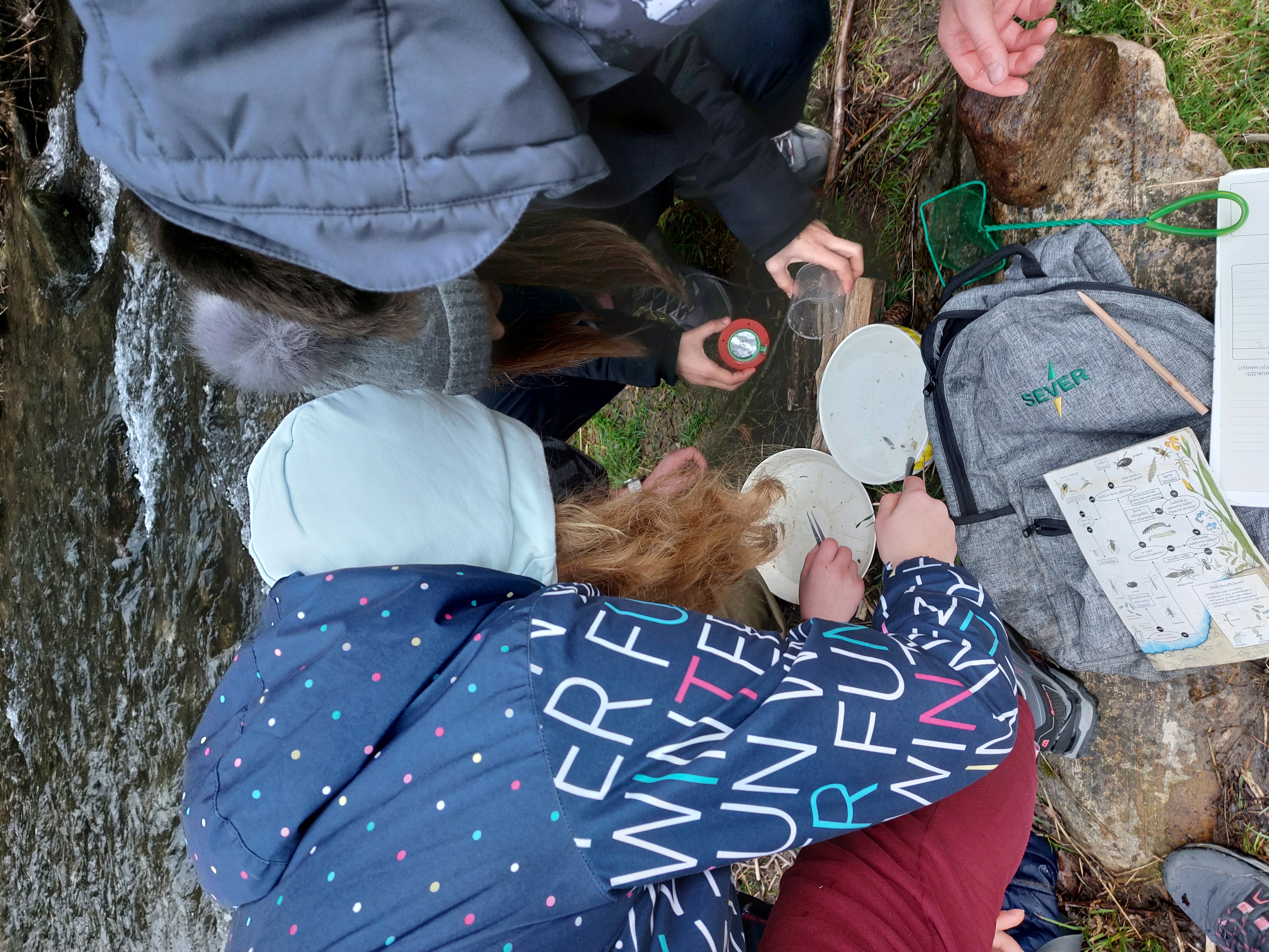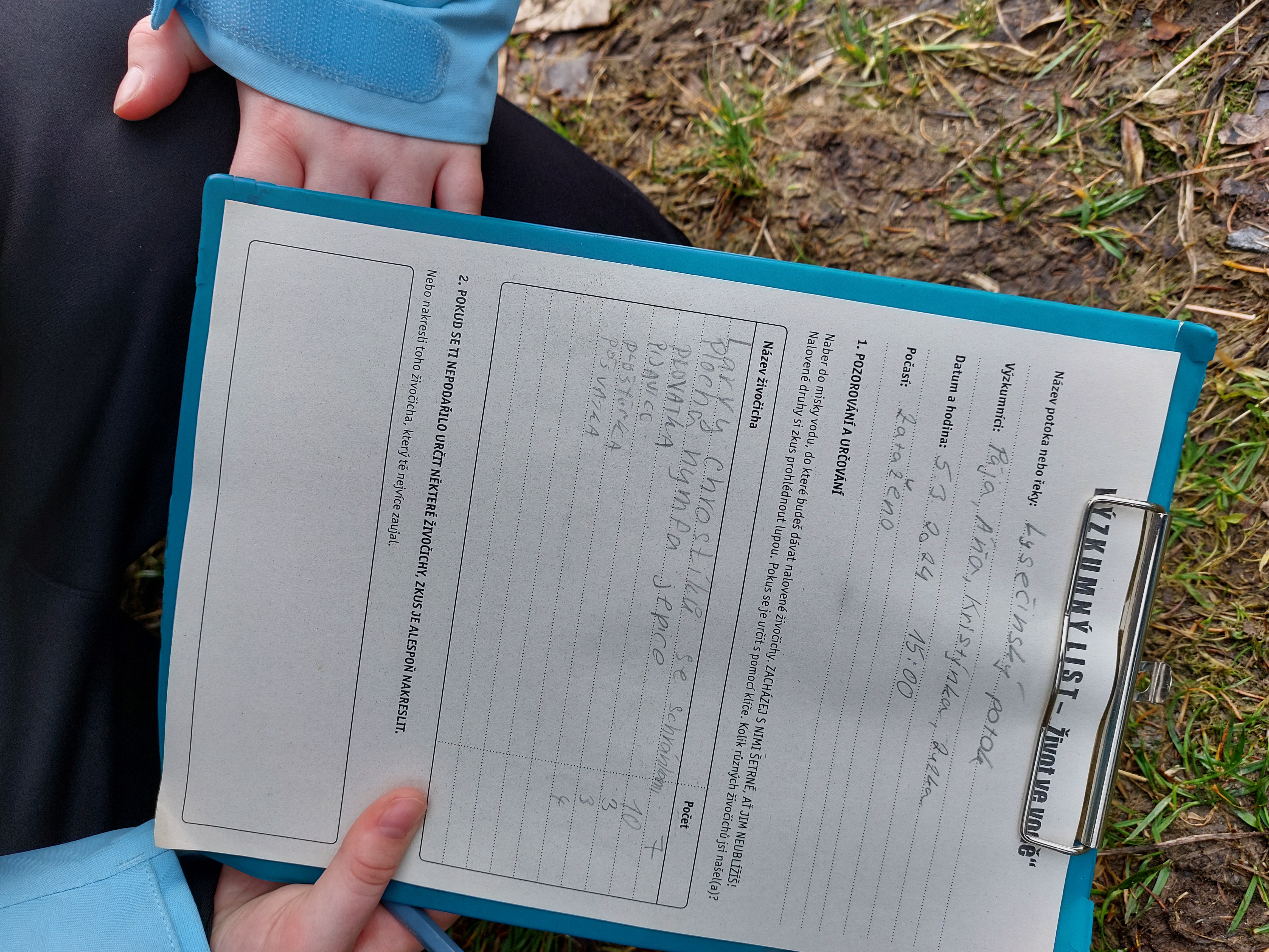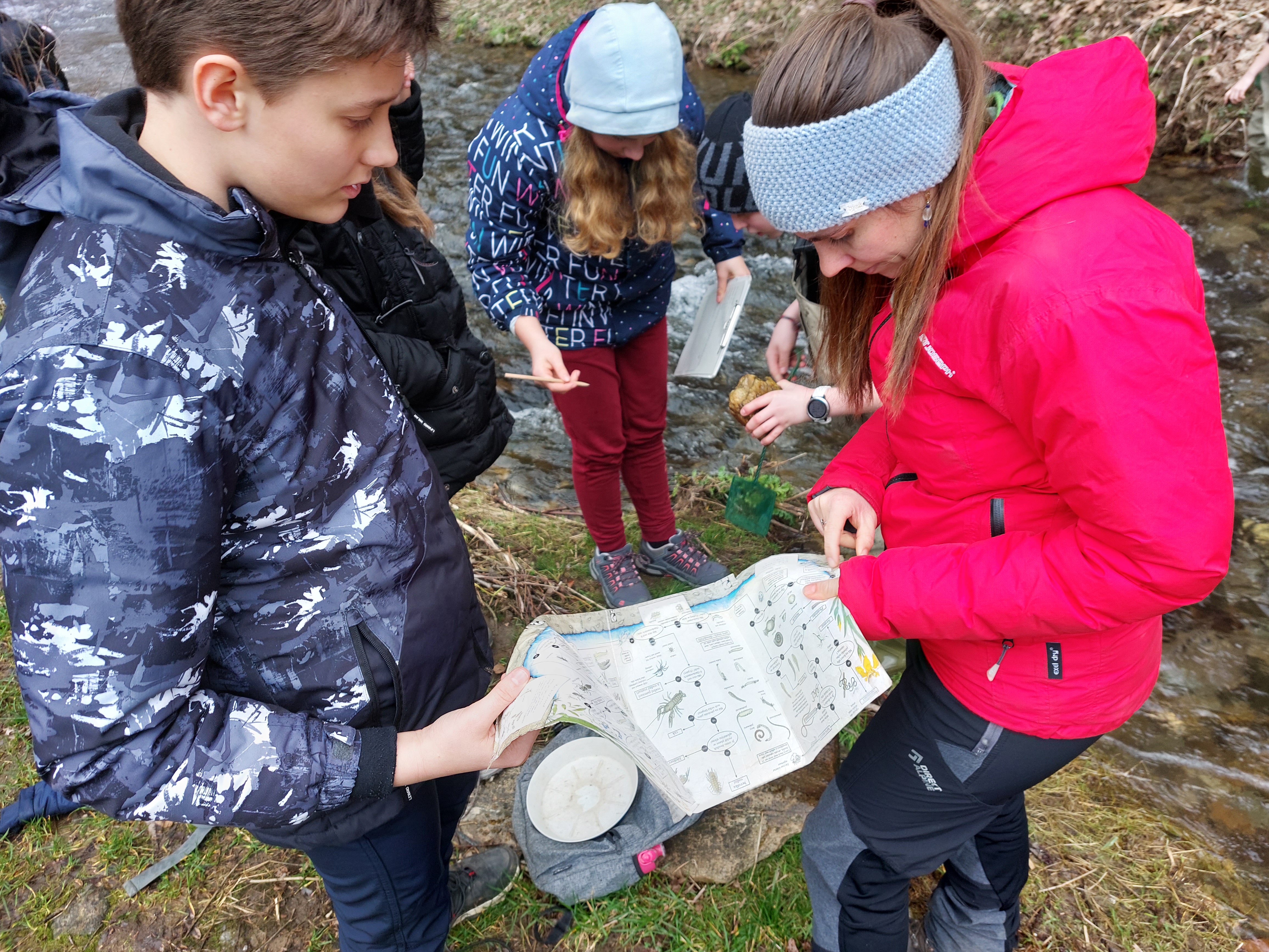 Odpoledne jsme šli přímo do terénu a zkusili si vlastni malý vědecký výzkum. Lovili jsme drobné živočichy z potoku a dle indicií určili jejich název a citlivost na znečištěné prostředí.