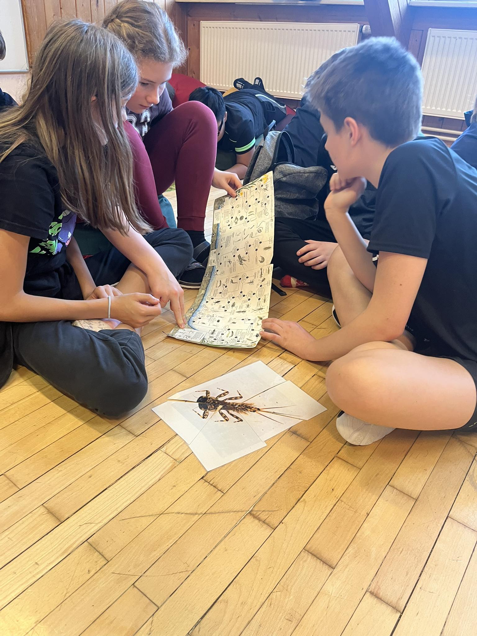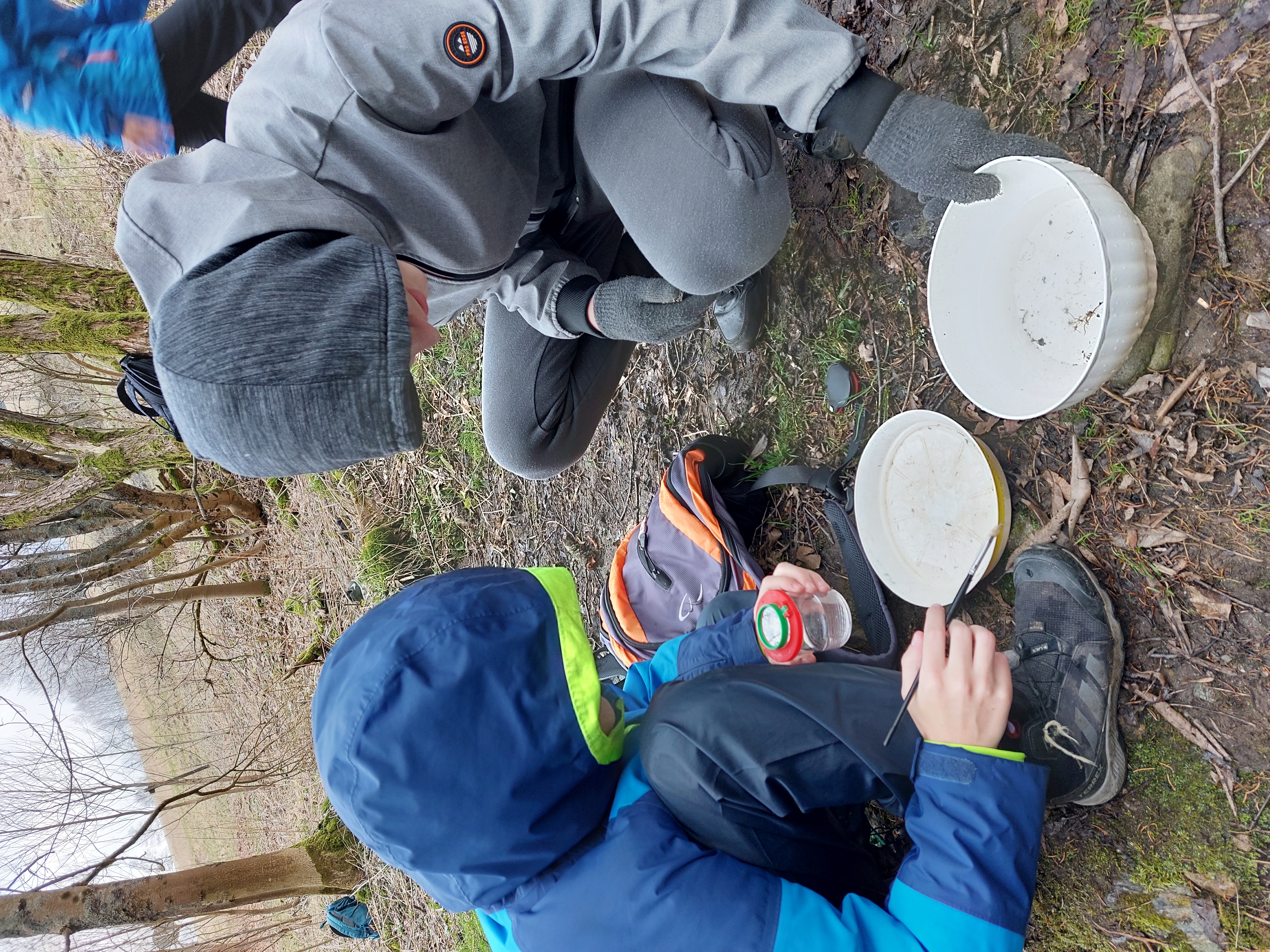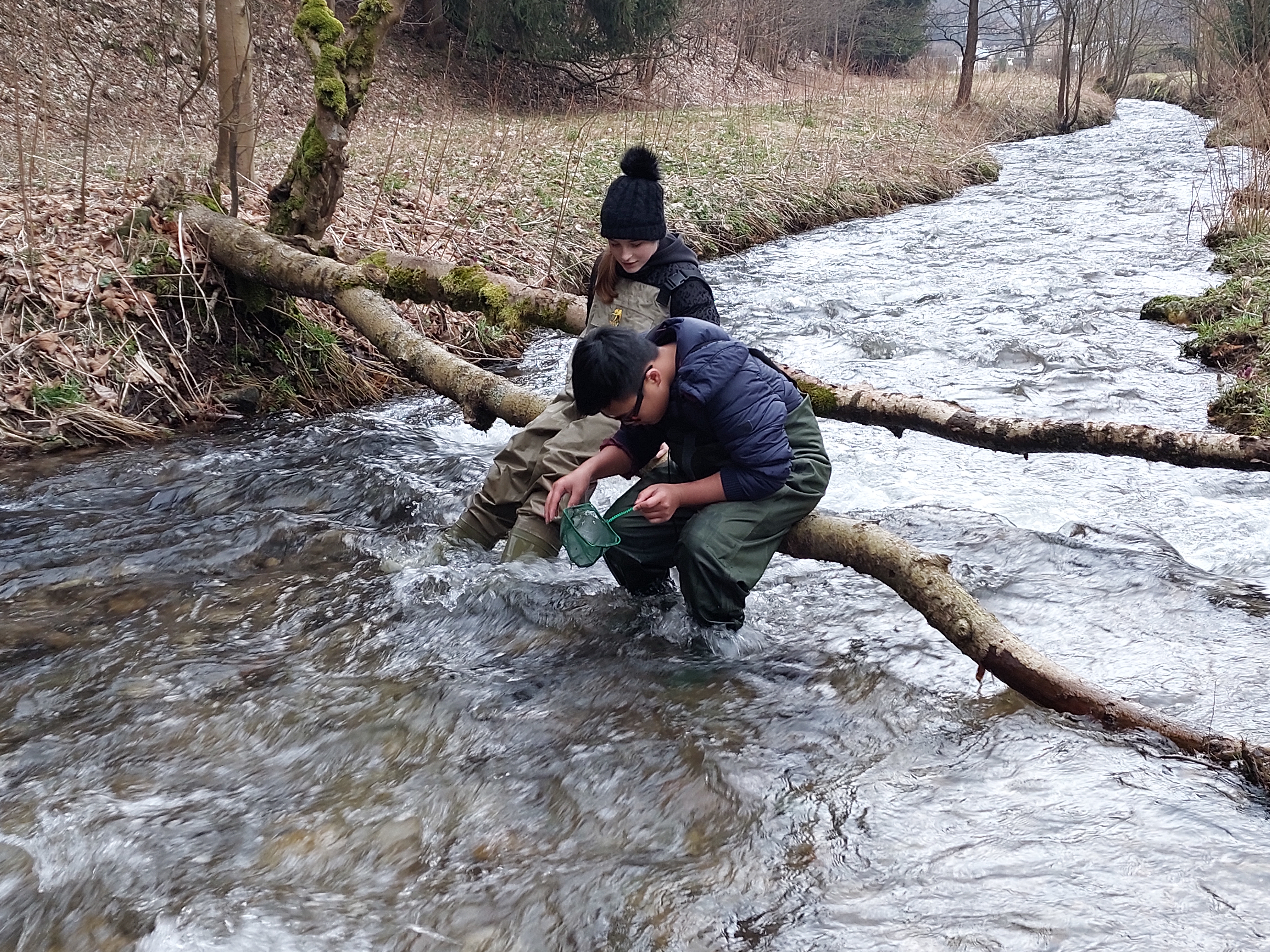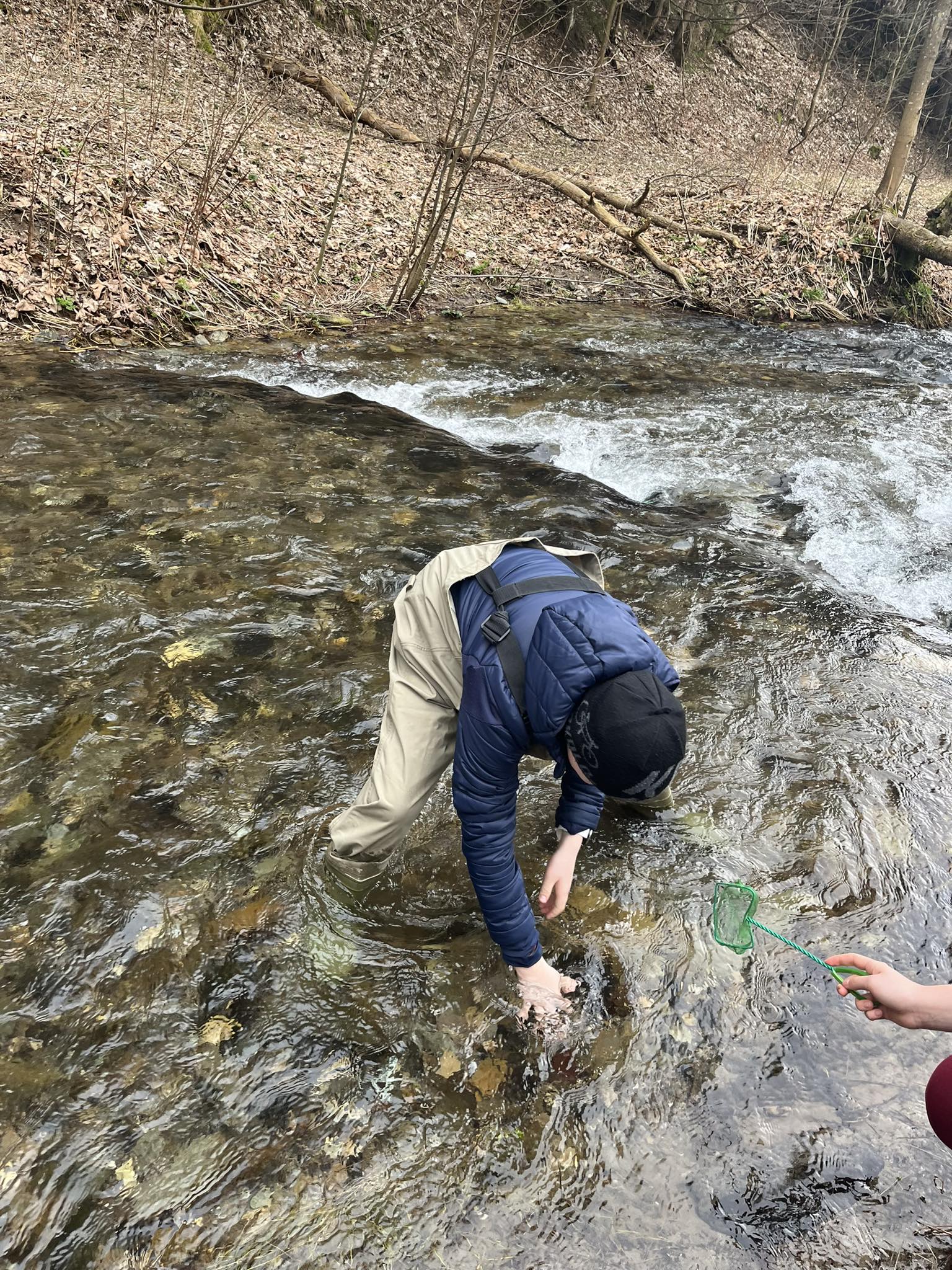 Odpoledne jsme šli přímo do terénu a zkusili si vlastni malý vědecký výzkum. Lovili jsme drobné živočichy z potoku a dle indicií určili jejich název a citlivost na znečištěné prostředí.