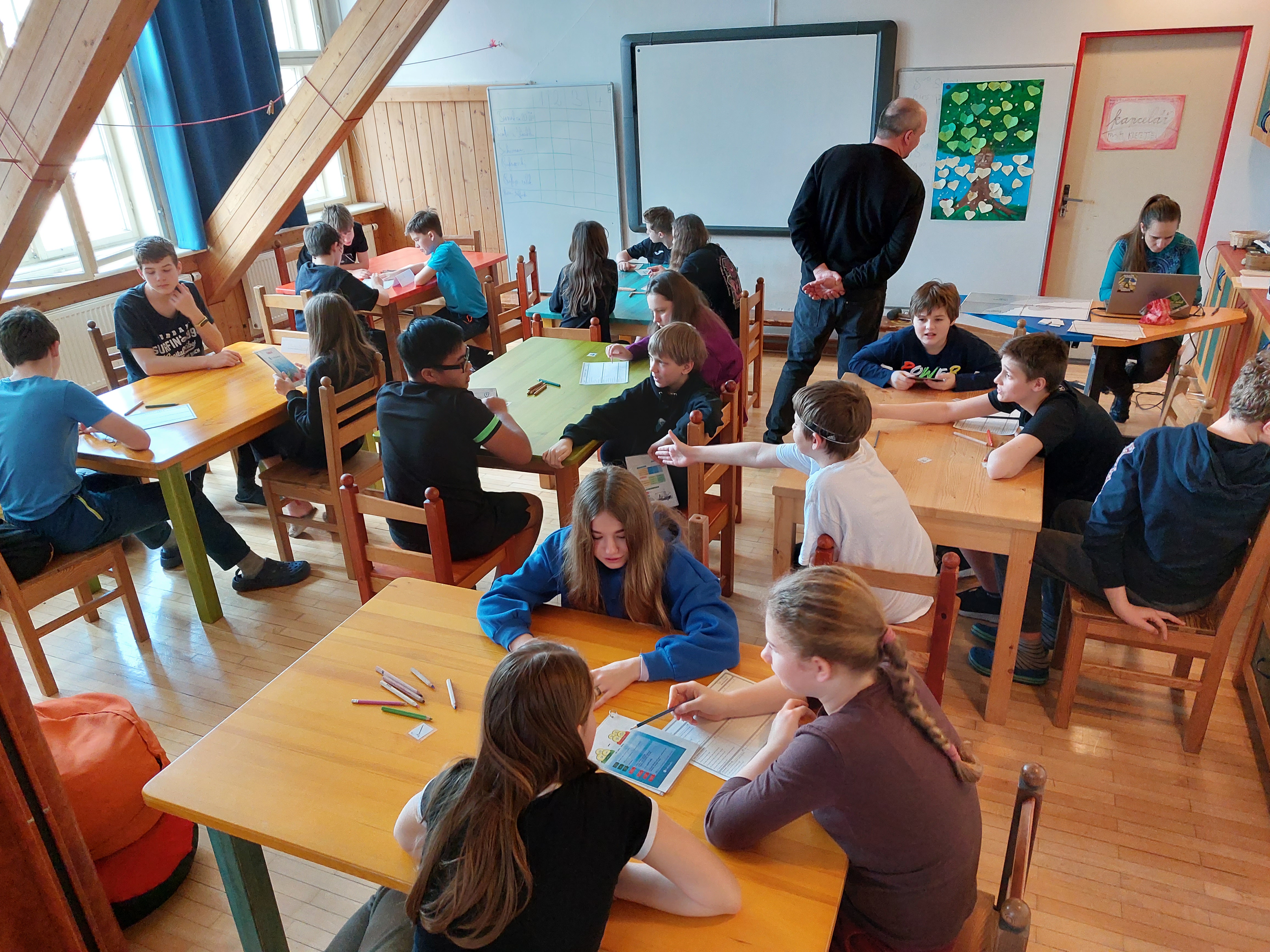 Dnešek jsme zahájili velkou simulační hrou - jako rybářské společnosti jsme se snažili zbohatnout lovem ryb. Krom přemýšlení, do kterých vod vlastní lodě poslat, jsme zažili i různé druhy aukcí. Finanční gramotnost v praxi! Také jsme zjistili, že ryb není v moři nekonečno a kdo je jednou nahoře, může být za chvíli velmi rychle dole..