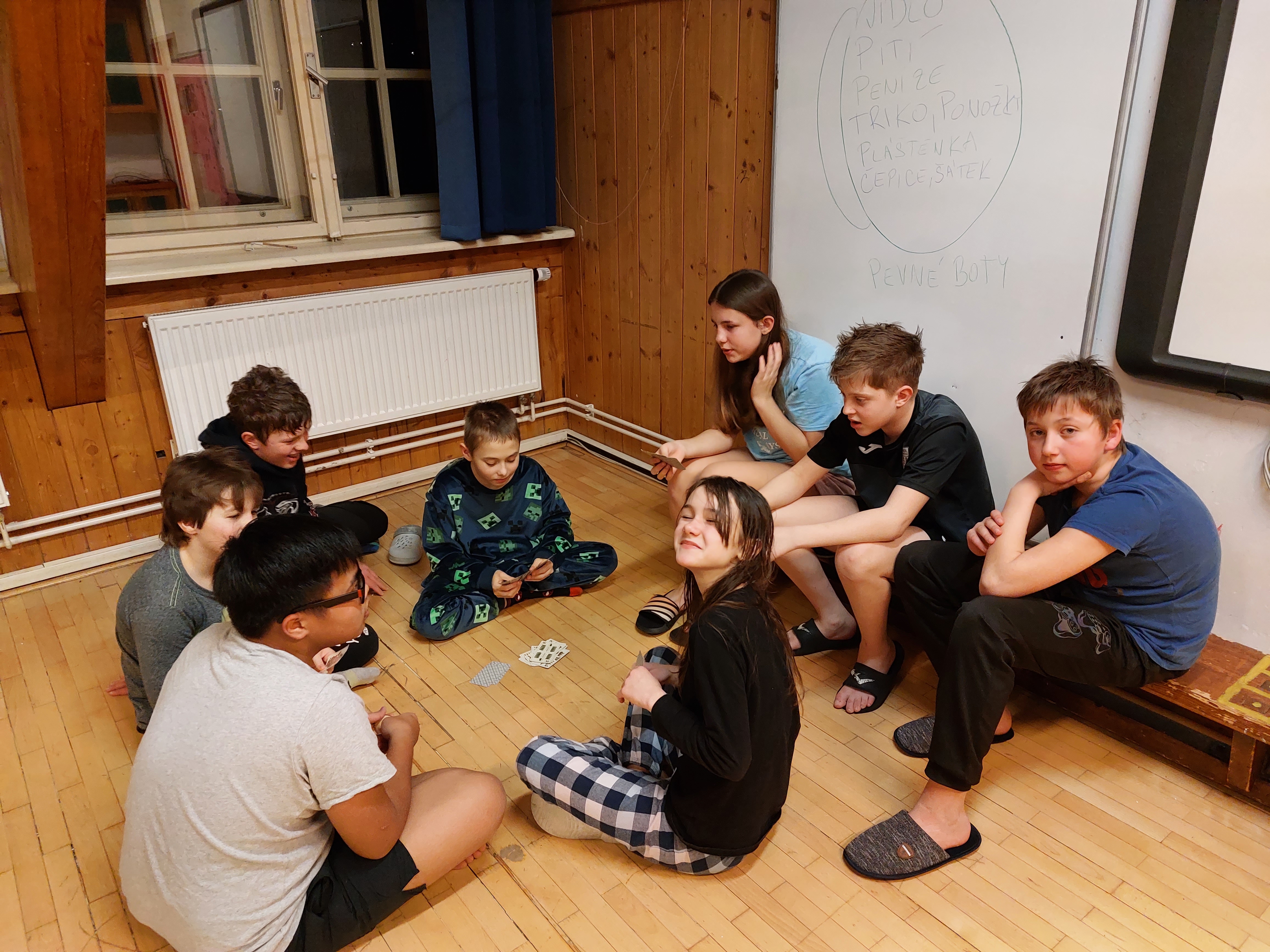 Večer si pro nás učitelky připravily "Večer odvážných". První (novodobá) zkouška odvahy byla, že jsme před večeří vypnuli a odevzdali mobilní telefony, které jsme dostali až ráno! Potom jsme si zahráli venku ve tmě na upíry a pikolu a na závěr nás čekala stezka odvahy. Krásně strávený den.