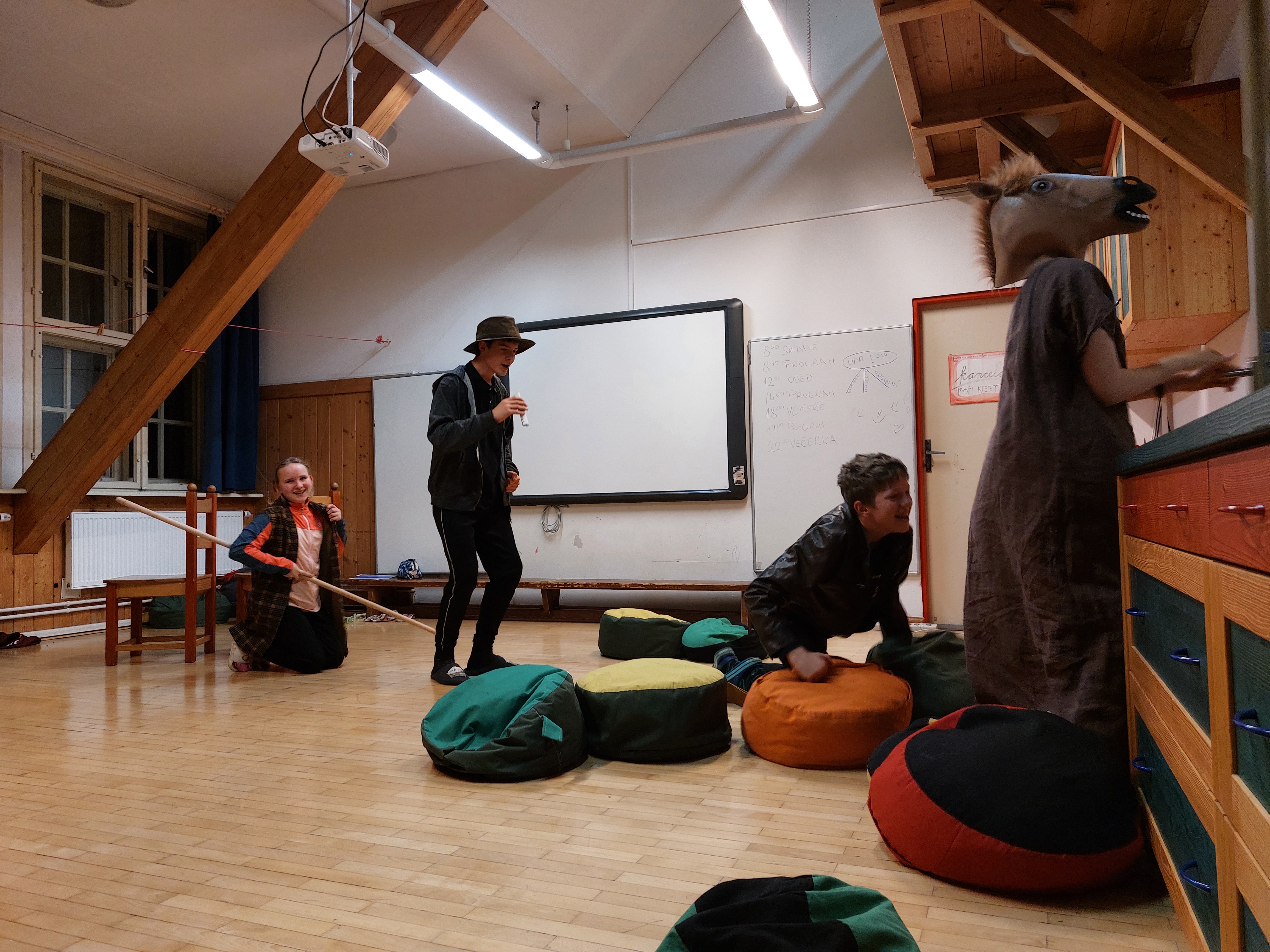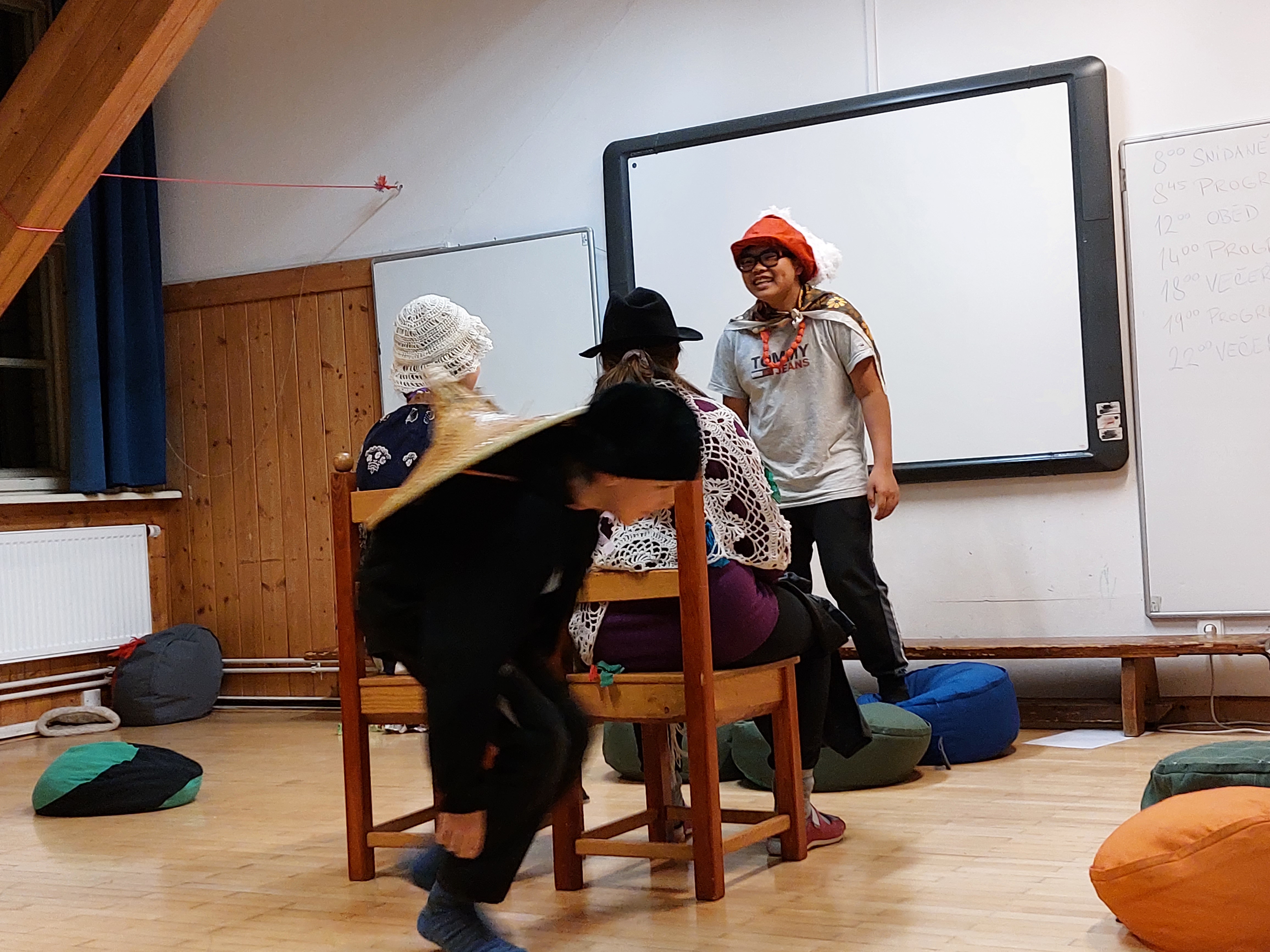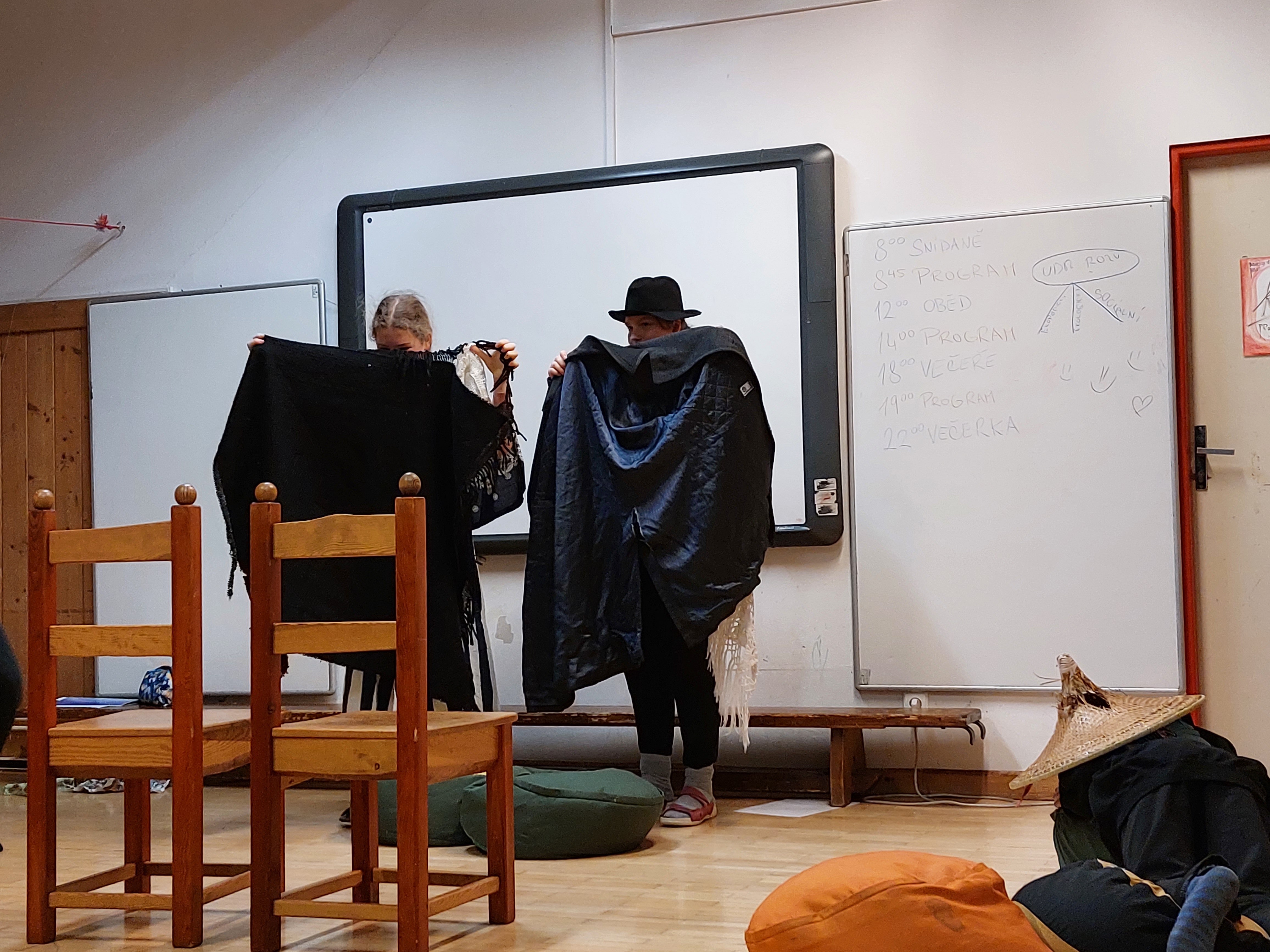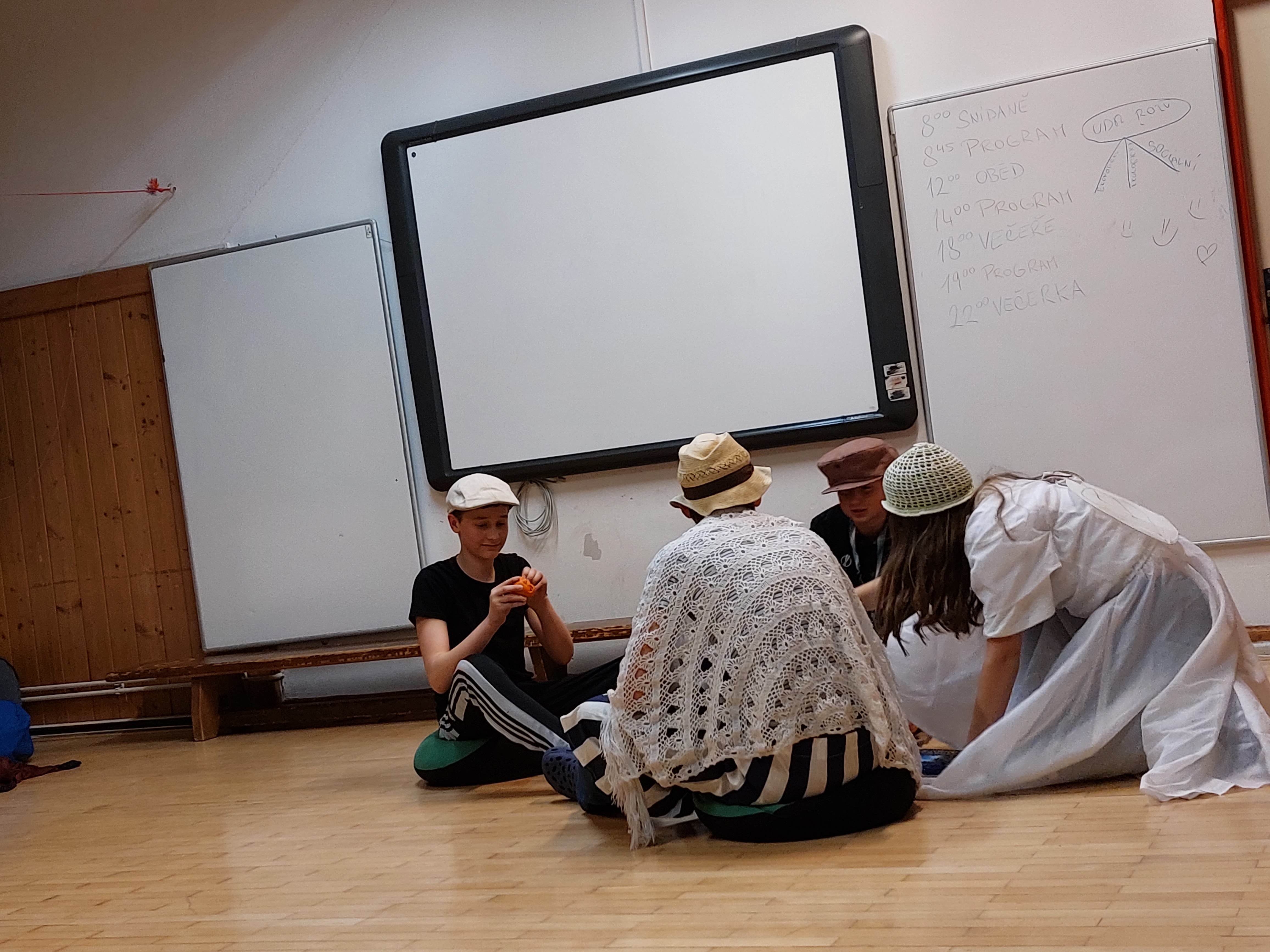 Večer byl potom vyhrazen pro divadlo. Musím říct, že jsme se opravdu hodně nasmáli, hlavně při kostýmních zkouškách. (Posuďte na fotografiích sami) :) Následovalo slíbené sledování fotbalu, balení kufrů a ještě pár drobných her. Začíná nás všechny mrzet, že už to pomalu končí..