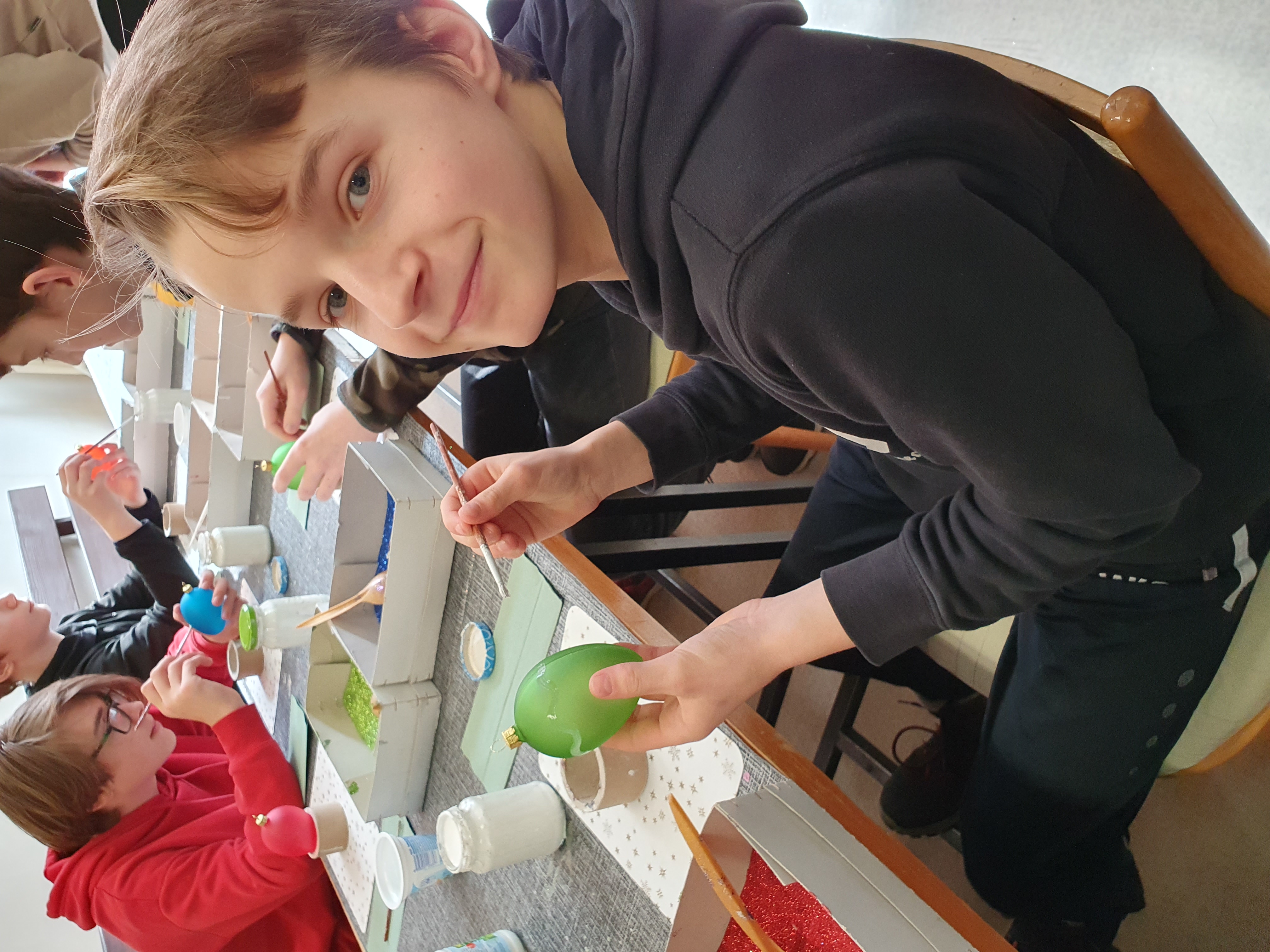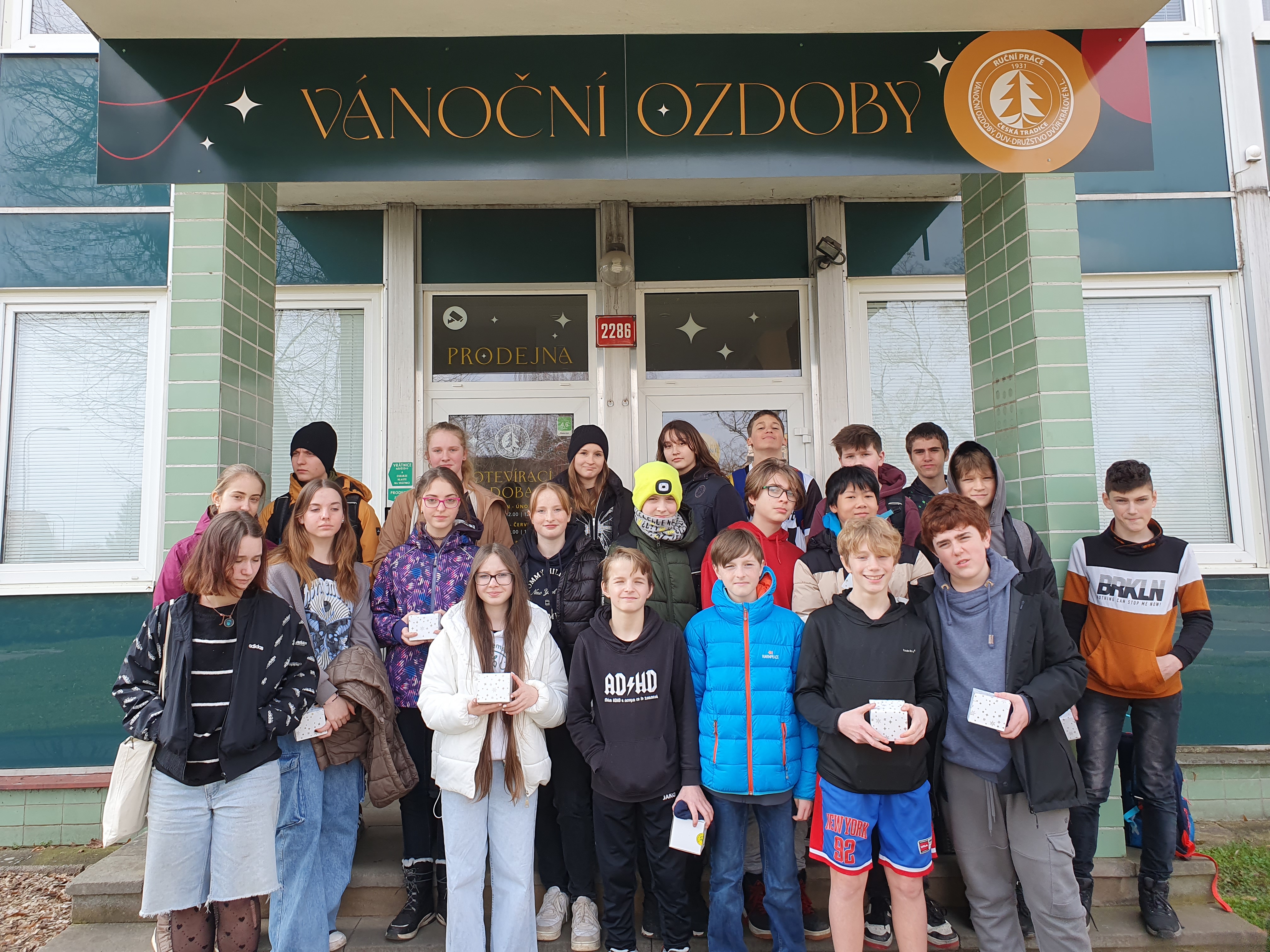 Před jarními prázdninami sedmáci zavítali do Vánočních ozdob. V první části exkurze nás čekal průzkum jednotlivými patry celé budovy. Měli jsme možnost zhlédnout téměř celý proces výroby ozdobiček. Během této jedinečné příležitosti jsme sledovali nahřívání skla a foukání, stříbření, máčení v barvách, malování i konečné balení ozdob. Děti se pozastavovaly nad tím, kolik práce se skrývá za precizními výrobky, které musí projít opravdu několika páry rukou, než z nich vznikne tak krásné dílko.