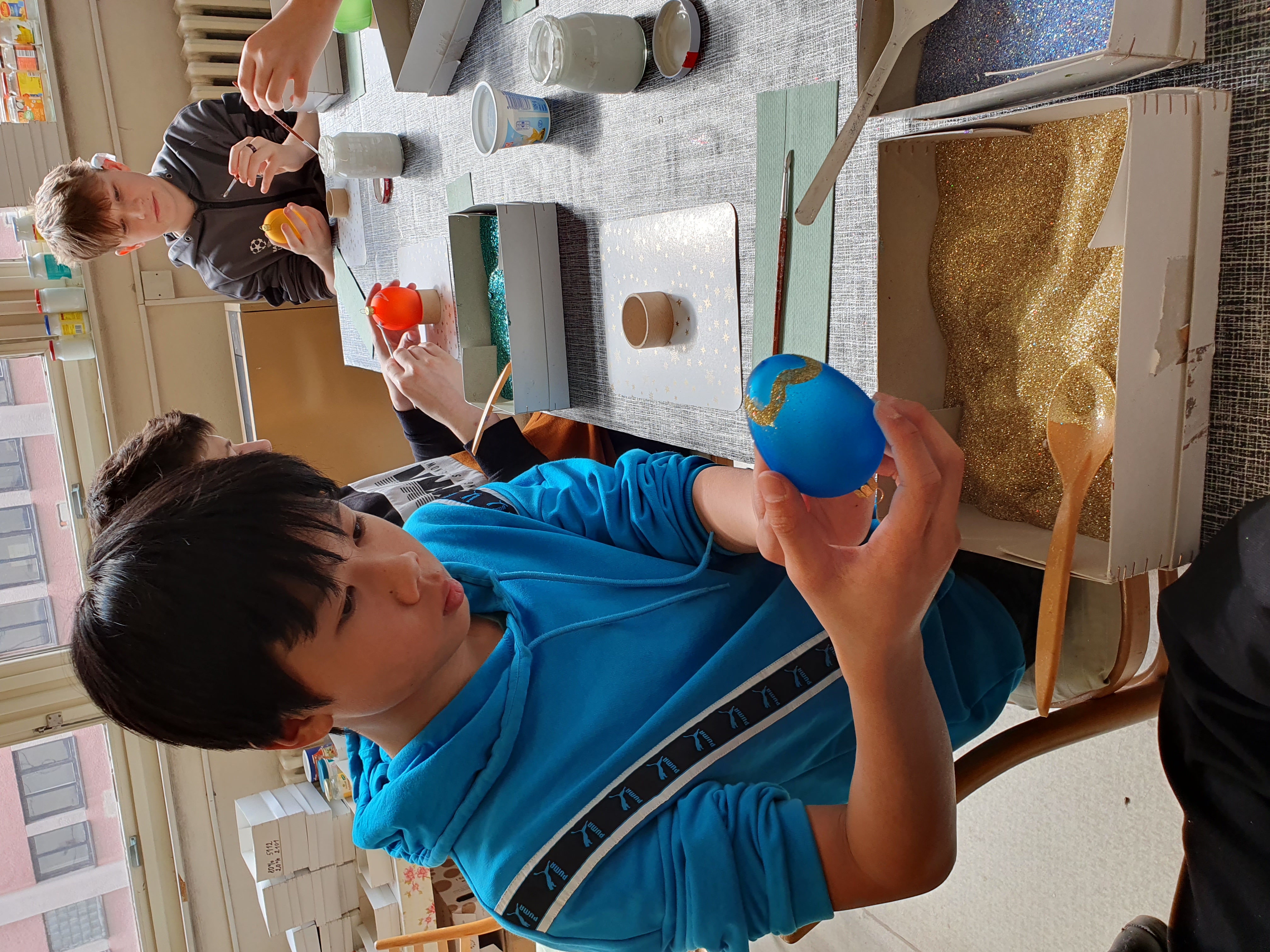 V druhé části na nás čekalo vlastní tvoření, abychom si vyzkoušeli malování na velikonoční vajíčko. Výtvory to byly vskutku originální, snad většina z nich přežila cestu do svých nových domovů.