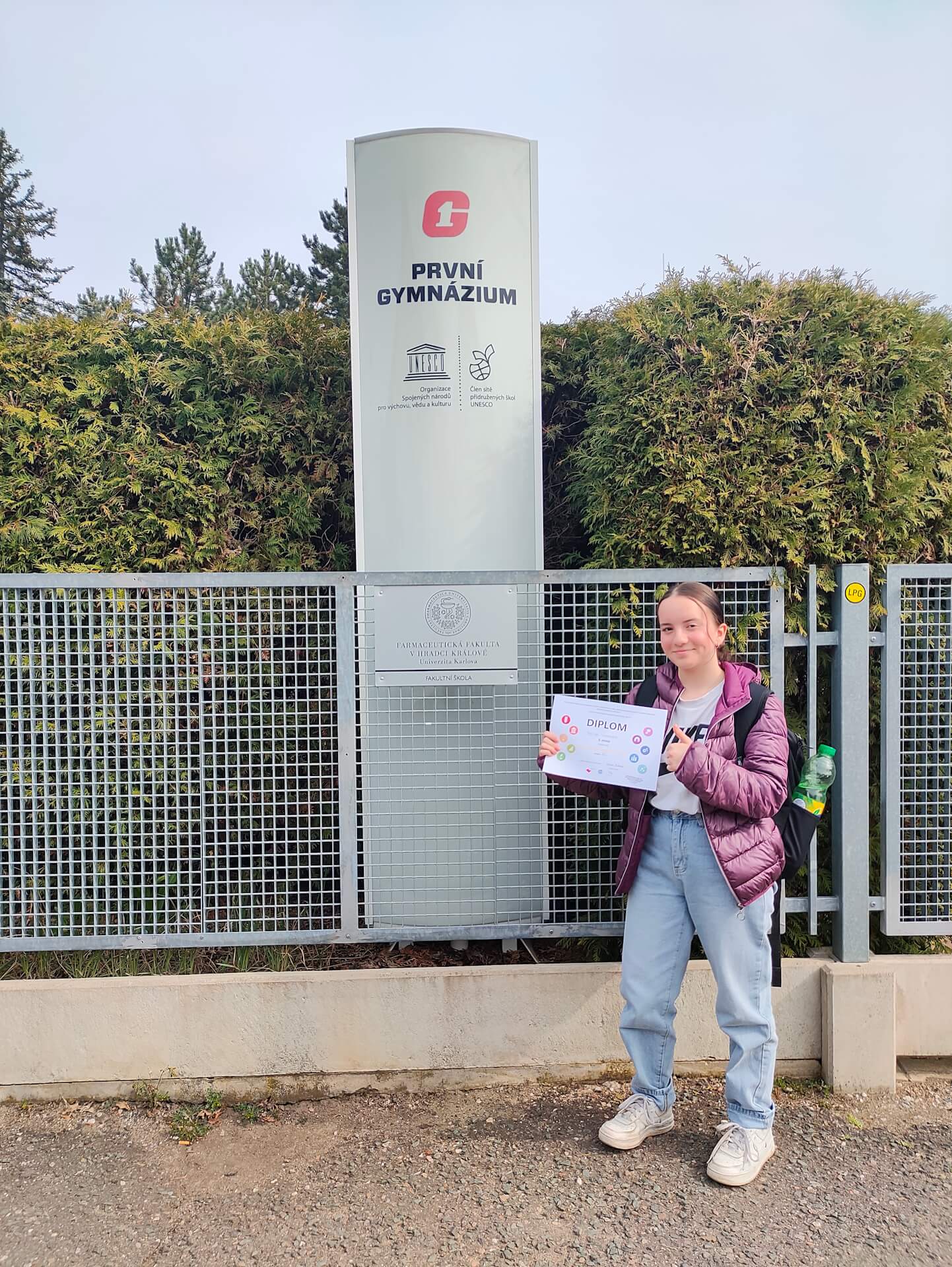 Nutno podotknout, že Martina se na tuto soutěž usilovně připravovala. Docházela dobrovolně na všechny hodiny, kde jsme se učili středoškolskou gramatiku, ve svém volném čase. Myslím, že s tímto přístupem máme příští školní rok znovu aspiranta na medailové umístění.