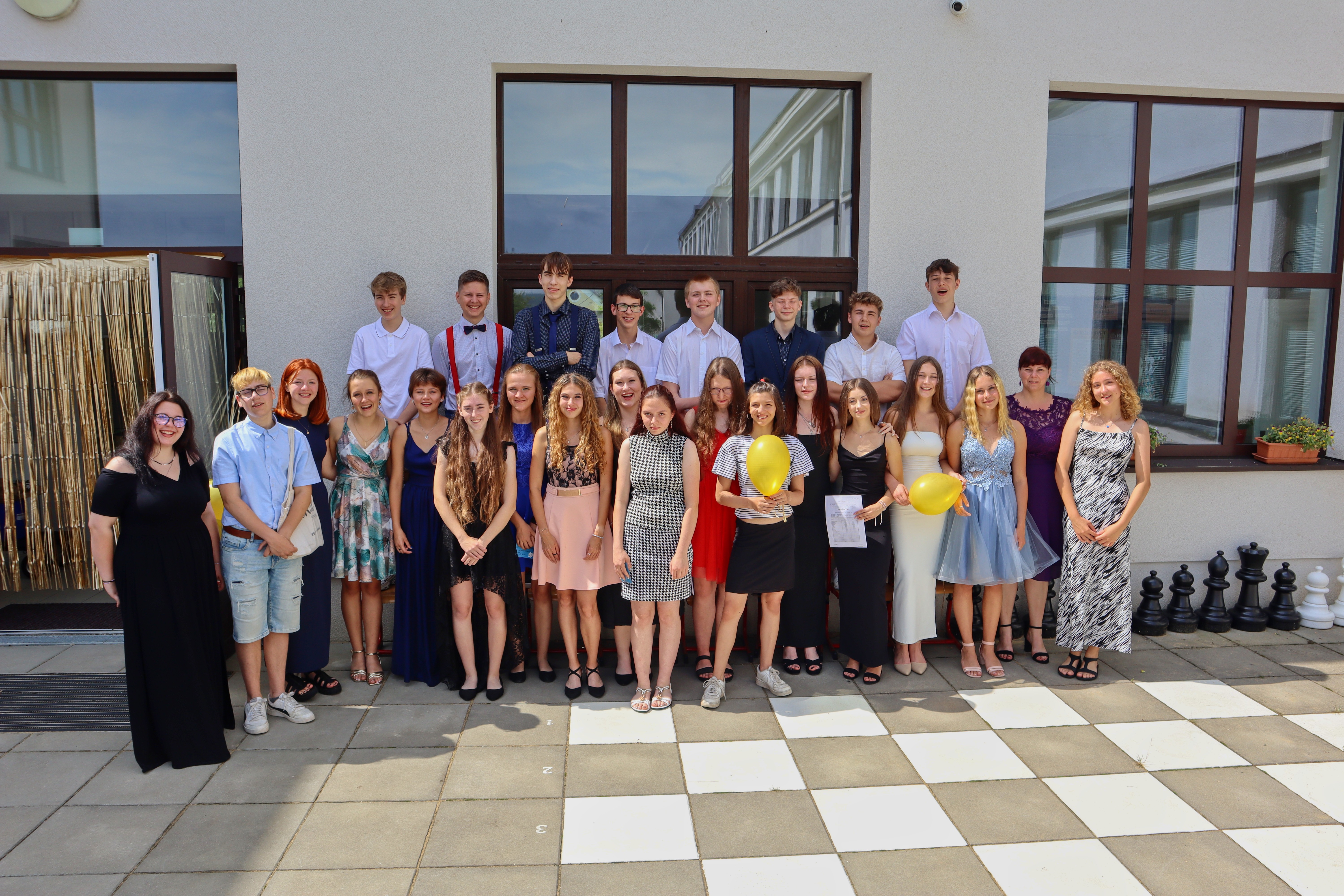 Poslední školní den se nesl ve znamení radosti a těšení na prázdniny, ale také smutku a loučení. Byl to poslední den, který strávili deváťáci společně v naší škole. Ráno jsme připravili venkovní posezení pro rodiče, kamarády a učitele a před desátou hodinou je přivítali v arboretu školy.