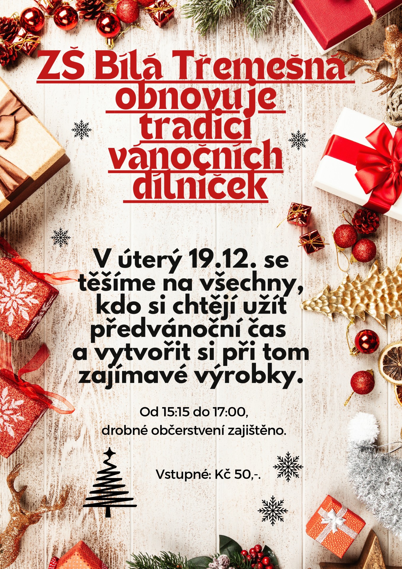 ZŠ Bílá Třemešná obnovuje tradici vánočních dílniček. Více ZDE.