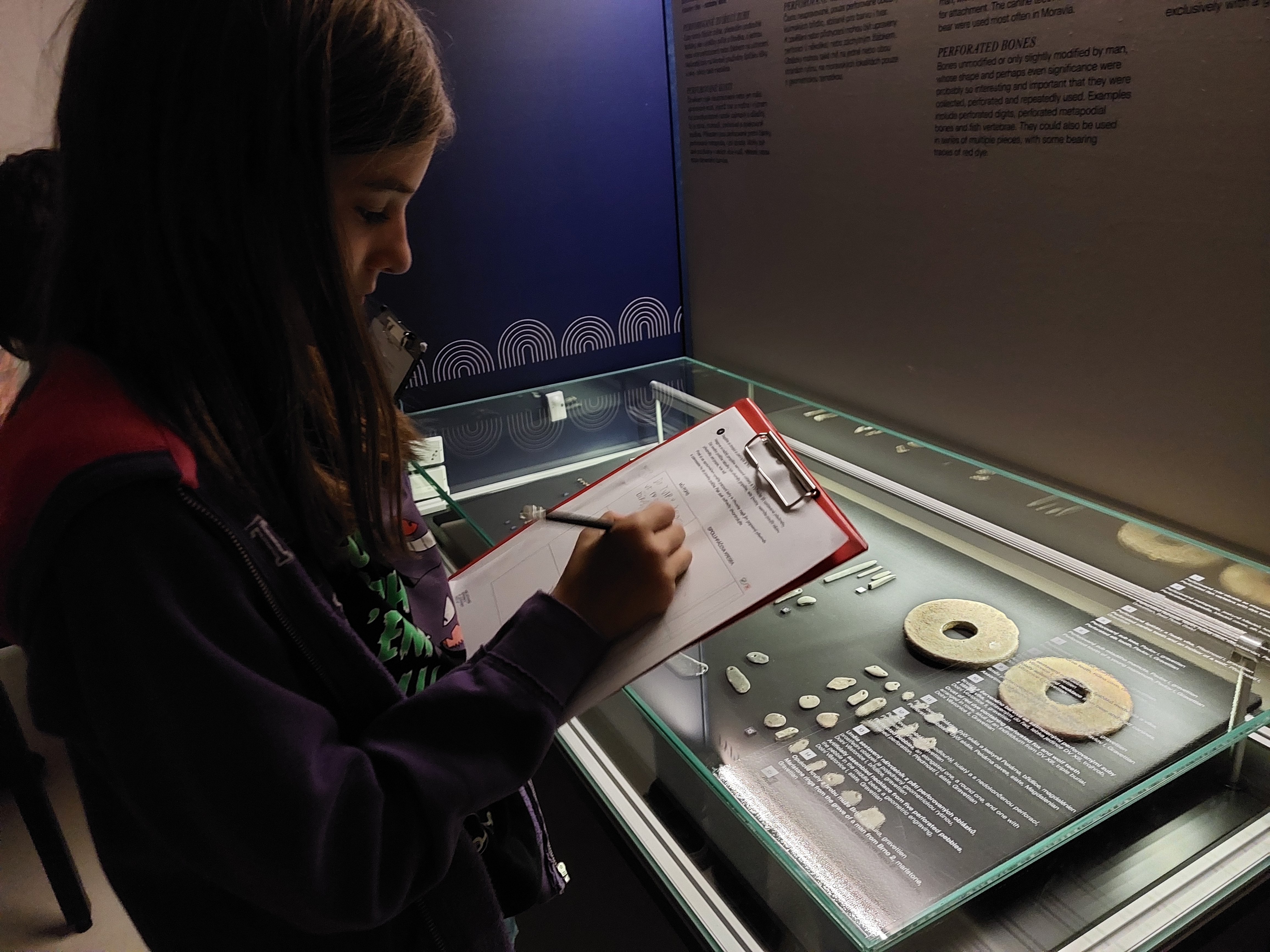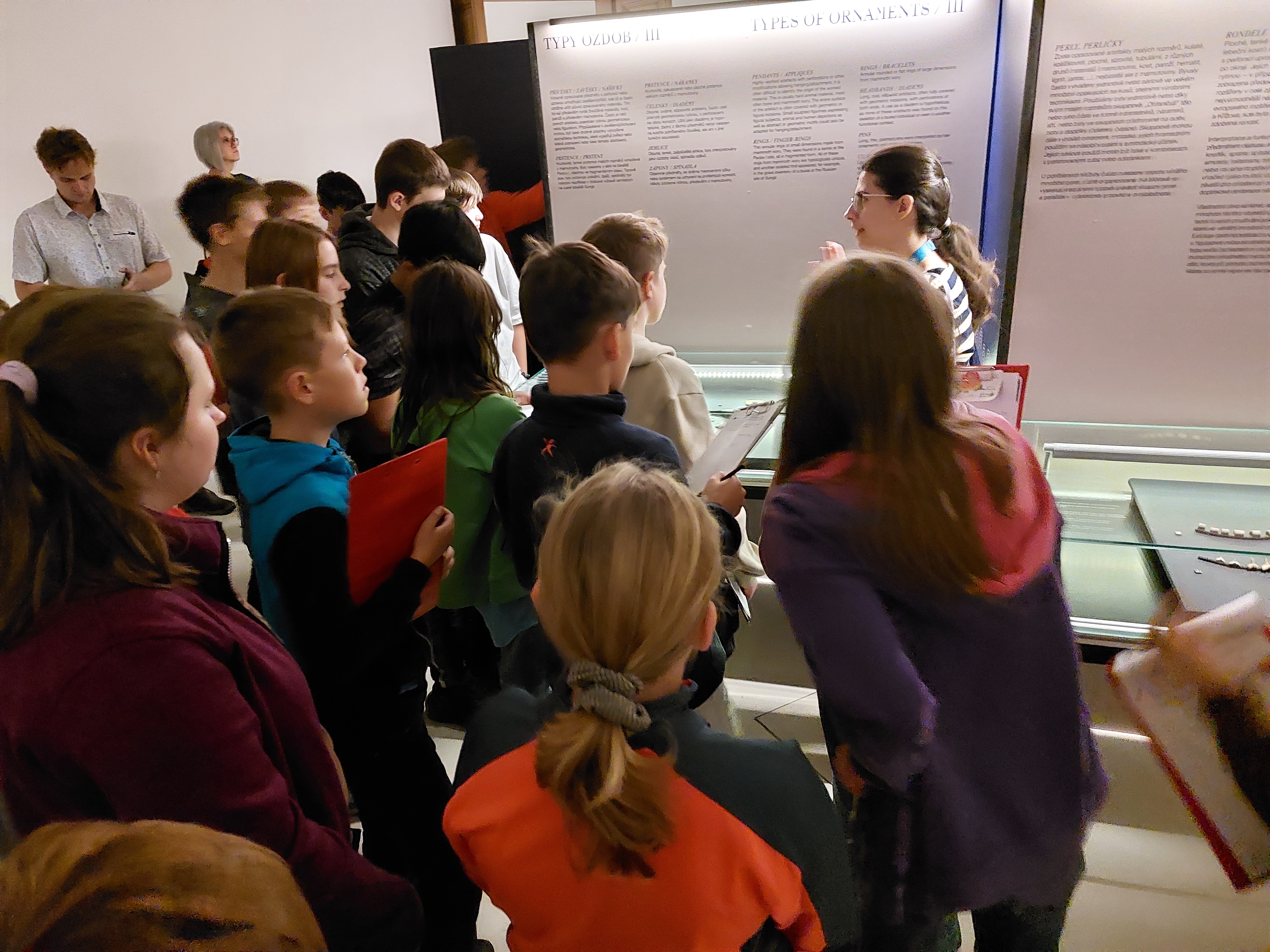 Kromě této nejcennější sošky obdivovali žáci také další artefakty nalezené v okolí Dolních Věstonic na jižní Moravě - šperky, drobné sošky, vše ze starší doby kamenné - paleolitu. Kromě samotné výstavy absolvovaly děti také lektorský výukový program a musely vyplňovat tematické pracovní listy.