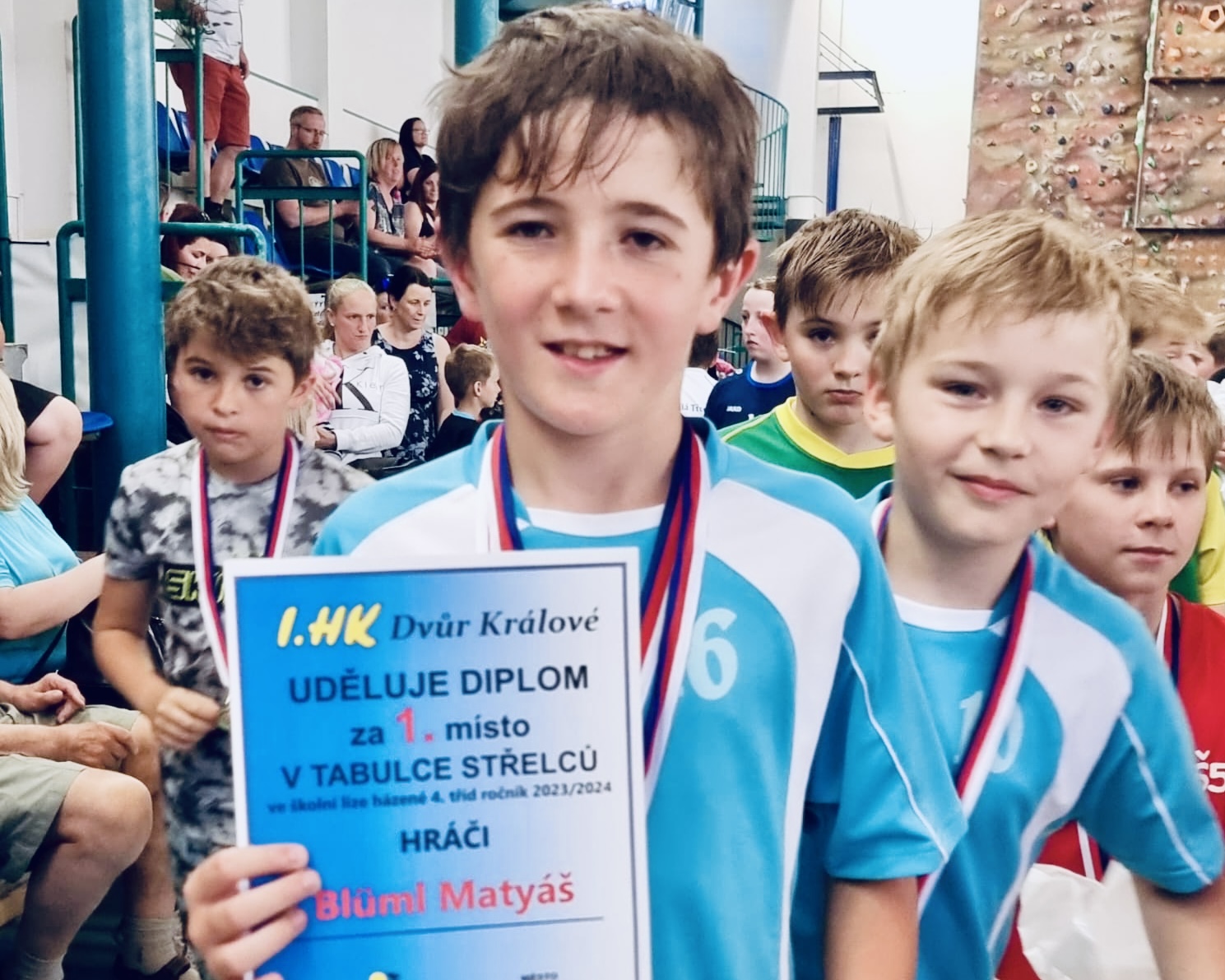 Obě kategorie absolvovaly všech 8 turnajů a celkem si tento sport vyzkoušelo bezmála 30 žáků naší školy. Čtvrťáci předváděli celou sezonu výborné týmové výkony, které završili 100% bilancí v posledním turnaji. Celkem se pak po právu stali vítězi celé ligy, kdy zapsali neuvěřitelných 26 výher, 2 remízy a pouze 4 prohry se skóre 198:80. Celkovou dominanci podtrhl v této kategorii ještě Matyáš Blüml, který se stal se 116 brankami i nejlepším střelcem.