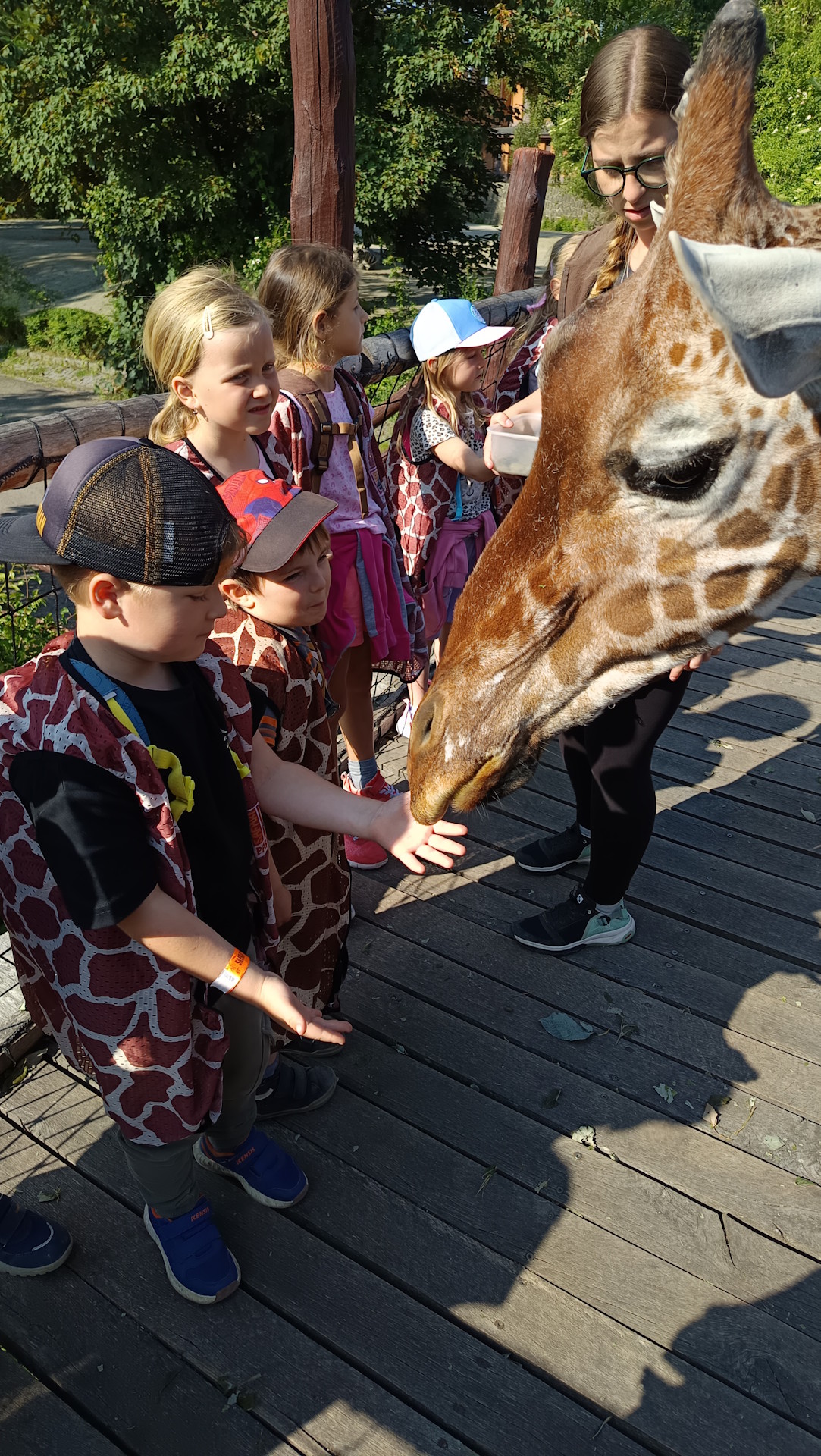 Ve čtvrtek 12. 6. se odvážní předškoláci společně s kluky z přípravné třídy vypravili do ZOO ve Dvoře Králové n/L. Tentokrát nešlo jen o procházku po zoologické zahradě a možnost podívat se do pavilonů se zvířaty. Děti využily mnohem více z toho, co ZOO nabízí, včetně přenocování v Safari kempu. Ve čtvrtek odpoledne se děti ubytovaly ve velkých stanech, rozloučily se s rodiči a vyrazily za dobrodružstvím. Čekala je jízda v Afrika Trucku po safari, krmení žiraf a procházka s lektorem po ZOO. Večer přišla jedna z největších zkoušek, a to spaní ve stanu s kamarády a paní učitelkou bez rodičů. Musím říci, že všechny děti noc zvládly na jedničku. Ráno nás kromě sluníčka do nového dne vítali zebry, žirafy a pakoně, kteří měli výběh hned u našich stanů. Společně s nimi jsme i posnídali. Poté jsme zabalili své batůžky, a ještě vyrazili do pavilonů za zvířátky a také na oblíbený lanový hrad. Po obědě následovala vířivka a brouzdaliště, které si děti užívaly až do odjezdu.