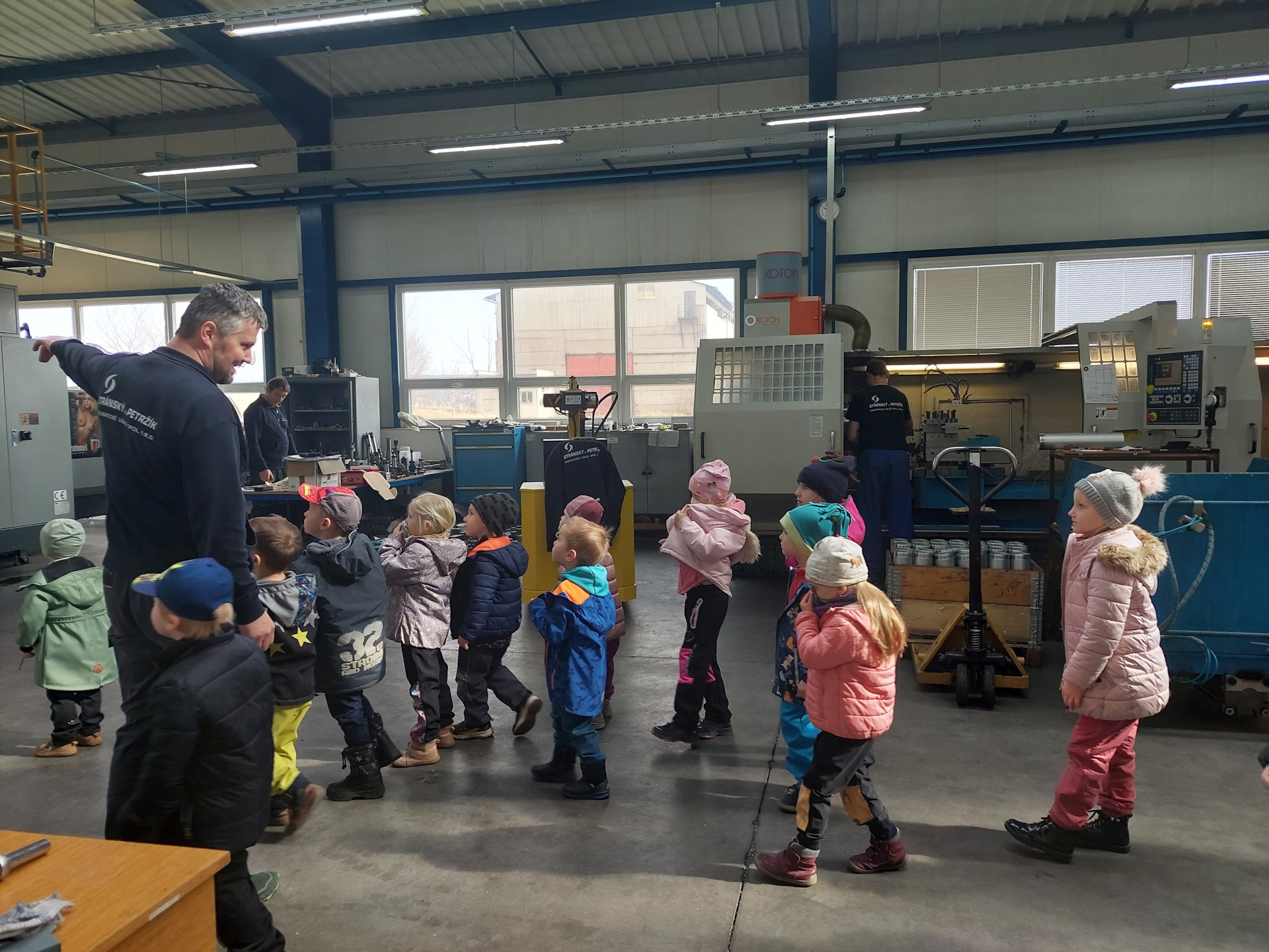 V druhém týdnu jsme měli možnost navštívit restauraci. Pan kuchař dětem ukázal prostory, kde se vaří obědy a večeře. Servírka dětem dovolila umýt půllitry a předvedla přípravu kávy. Na závěr byla pro všechny připravena velká hostina, a tak děti odtud odcházely s plnými bříšky pizzy a ovocného džusíku. Dále jsme se šli podívat do nové hasičárny. Dva dobrovolní hasiči dětem vysvětlily, co všechno obnáší být hasičem. Ukázali nám celou výbavu včetně hasičských vozů. Děti měly možnost si nasadit helmu a vlézt do auta a stát se tak na okamžik malých hasičem. Naše poslední návštěva proběhla ve firmě Stránský a Petržík. Dokonce nás samotný mistr provedl celým areálem a ukázal nám různé malé a velké stroje v provozu.