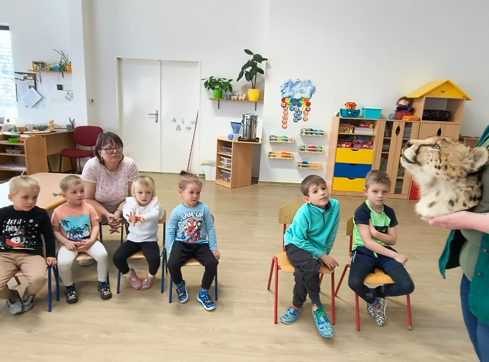 V pátek 14.2.2025 k nám do školky zavítala návštěva ze Zoo Dvůr Králové nad Labem. Dvě zaměstnankyně přišly děti seznámit s několika druhy zvířat, které můžeme v naší Zoo spatřit. Přednáška byla zpestřena o fotografie, části těl zvířat například: kopyta, kůže, vycpaná hlava levharta, kosti, na které si děti mohly sáhnout. Ale také sebou přivezli ukázat tři druhy živého hmyzu. Prvním byly strašilky, které mohou vypadat jako větvička, listy nebo třeba kus kůry a dokonale tak splývat s prostředím. Druhým byl Zlatohlávek somálský, který byl donedávna neznámým druhem afrického Zlatohlávka. Třetím a posledním byl obrovský šváb.