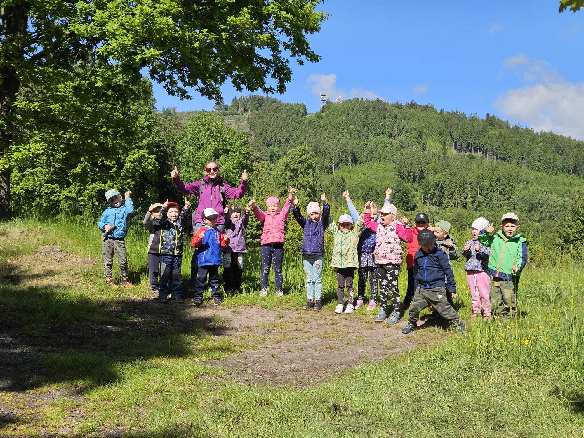 Celý týden od 19.5.2025 do 23.5.2025 si děti povídaly o zvířátkách ze statku. A proto jsme se v pátek vydali na delší túru až do Lázní pod Zvičinou. Už po cestě jsme viděli krávy s telátky, kočky, psi a v lázních na nás čekali ovečky, poníci, oslíci a samozřejmě čuníci. A na závěr malého výletu si odvážlivci vylezli na rozhlednu s vyhlídkou do kraje.