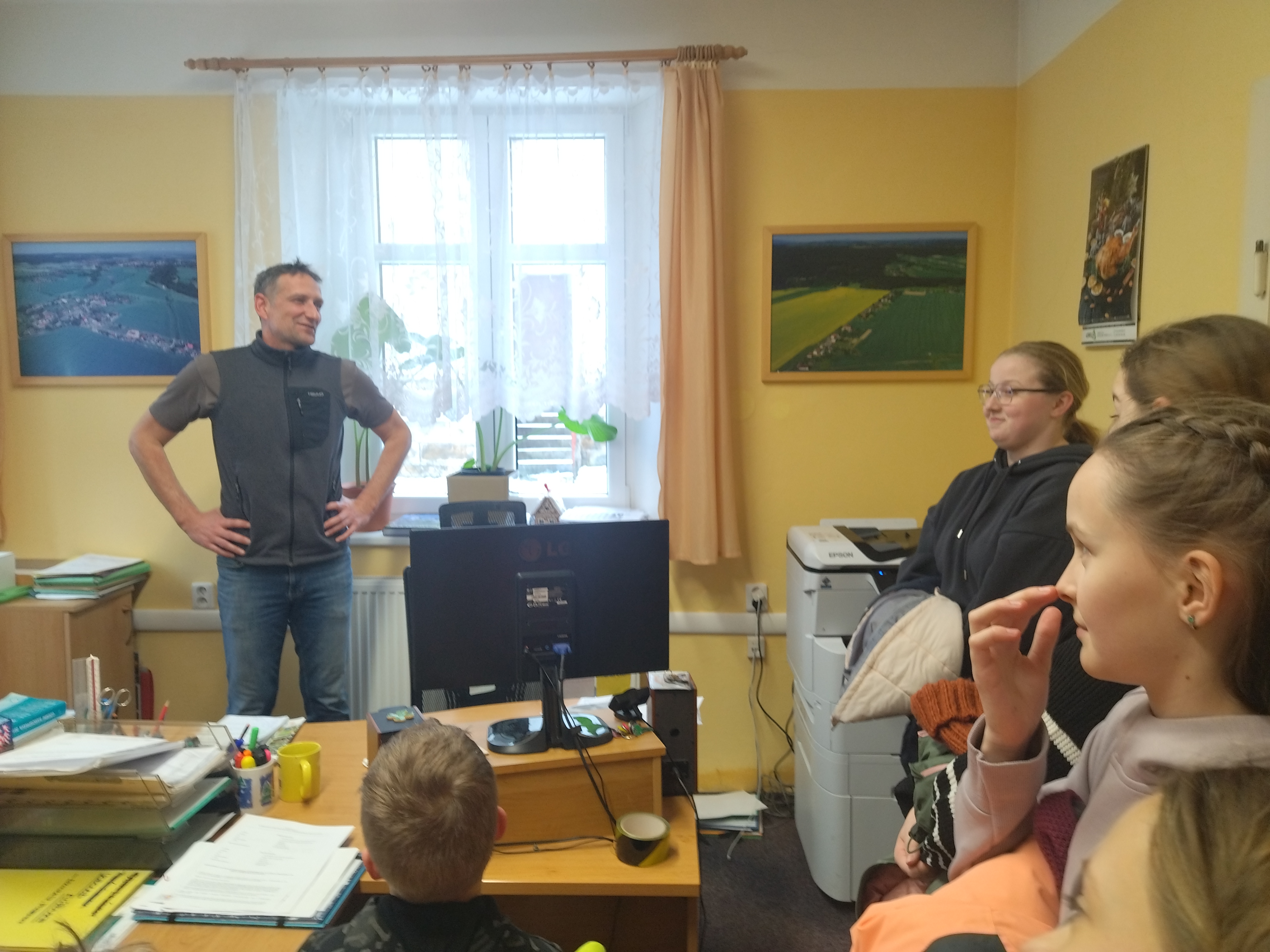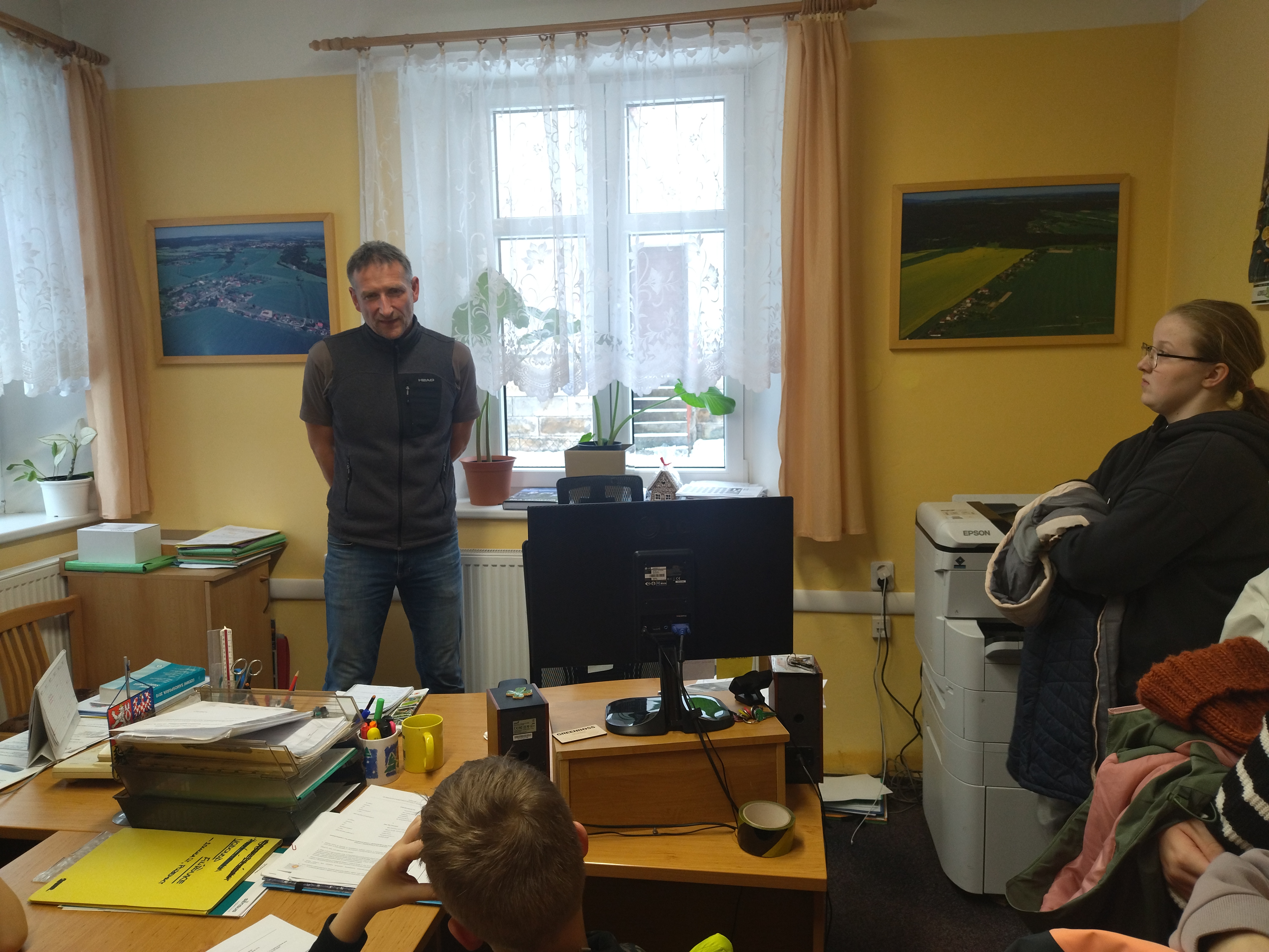 V rámci předmětu člověk ve společnosti právě probíráme fungování obce a její financování, takže bylo nasnadě, že jsme museli navštívit i muže k tomu nejpovolanějšímu – starostu naší obce pana Štěpána Čeňka.