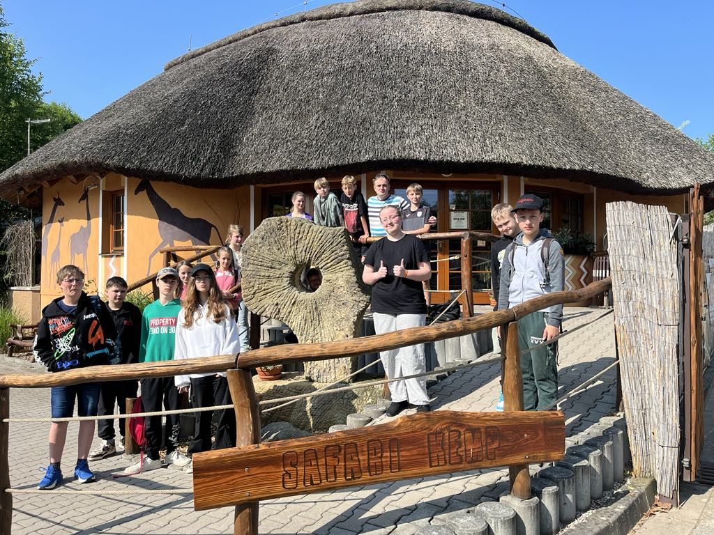 Po návratu dostali žáci rozchod po klasické části zoo ukončený společným obědem. Následovalo ubytování v kempu, stavění vlastních stanů nebo seznámení se se stany erárními upravenými do africké podoby. Poté vedly kroky mnohých na volejbalový kurt, kde většina třídy, teď nepočítám holky, které hrají tuto hru závodně a jen kroutily očima, zkoušela hrát cosi jako odbíjenou, i když nám to ne vždy šlo. Důležité ale byly úsměvy na tvářích a radost všech.
