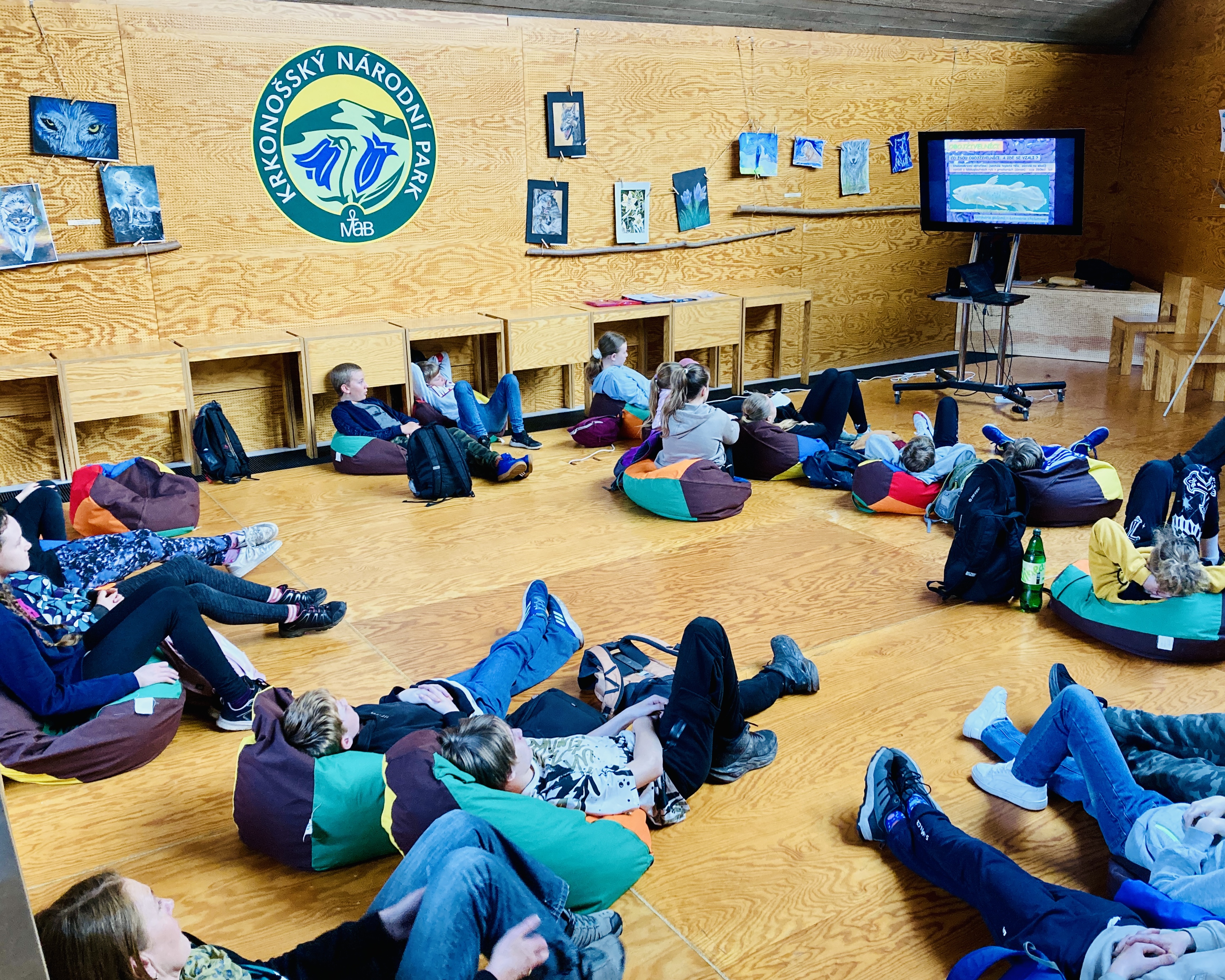 Poslední den před velikonočními prázdninami si žáci 6.A zpestřily výjezdem do Vrchlabí. Zde na ně čekal program od správy KRNAPu. Jeho hlavním tématem byli obojživelníci Krkonoš. Po teoretickém úvodu, kdy byli představeni zástupci žijící v Krkonoších, ale i v rámci celé ČR, si žáci otestovaly nabyté vědomosti v poznávací hře. Ta byla zaměřena na zorničky žab. Nejúspěšnější týmy získaly i pěkné přírodopisné publikace.
