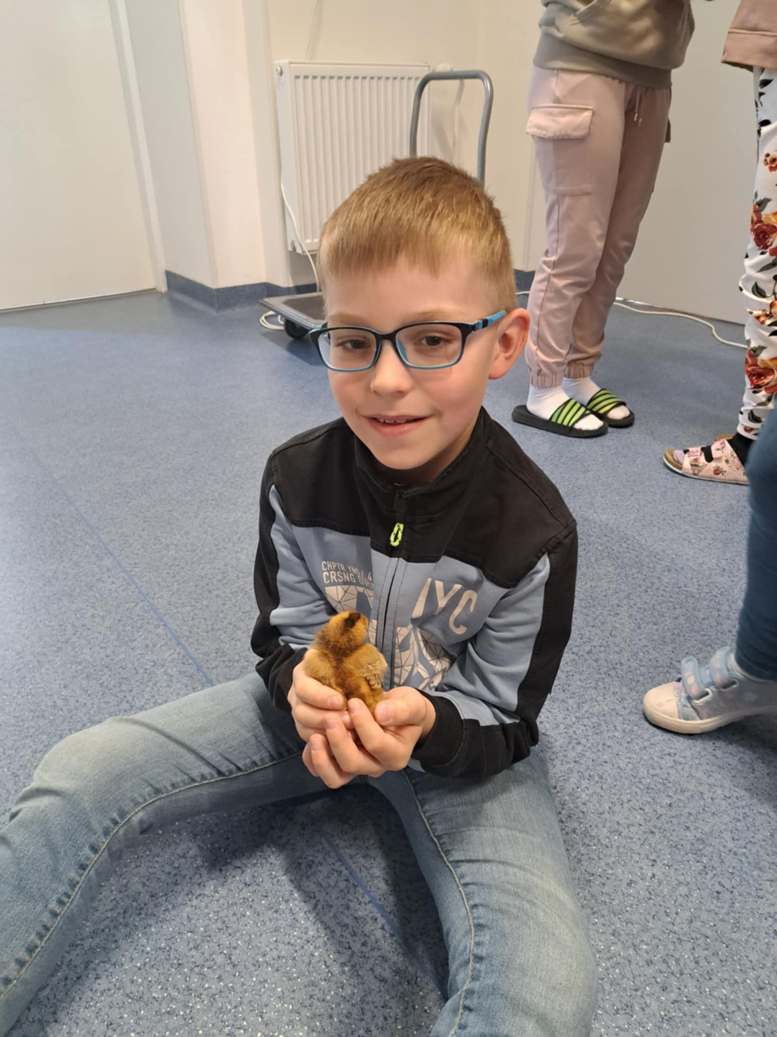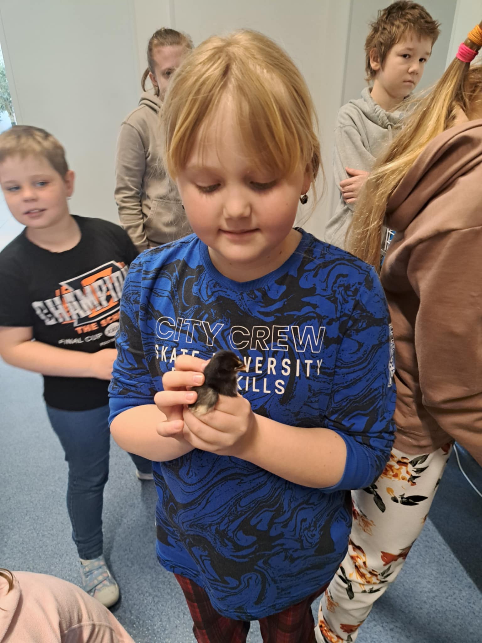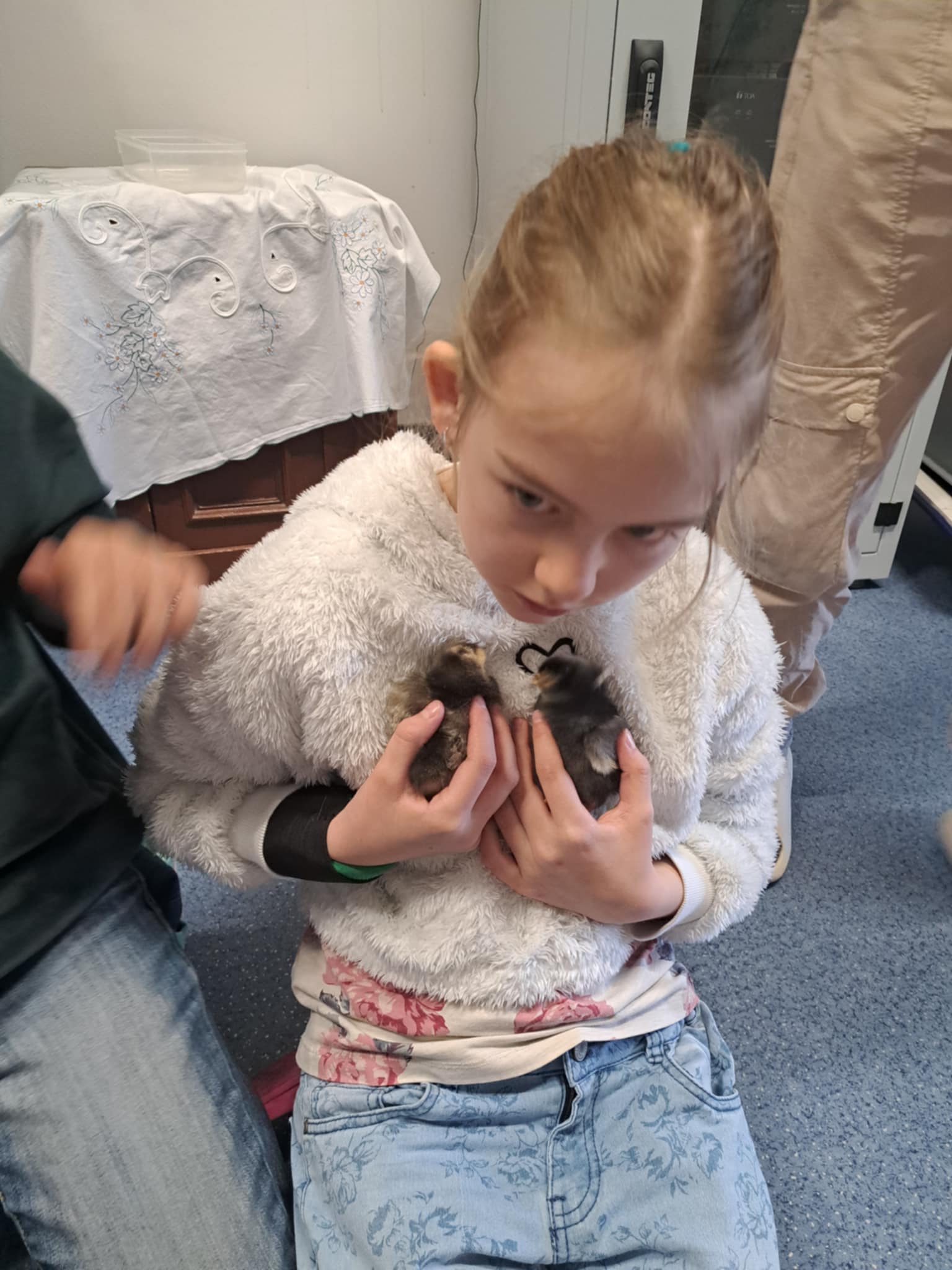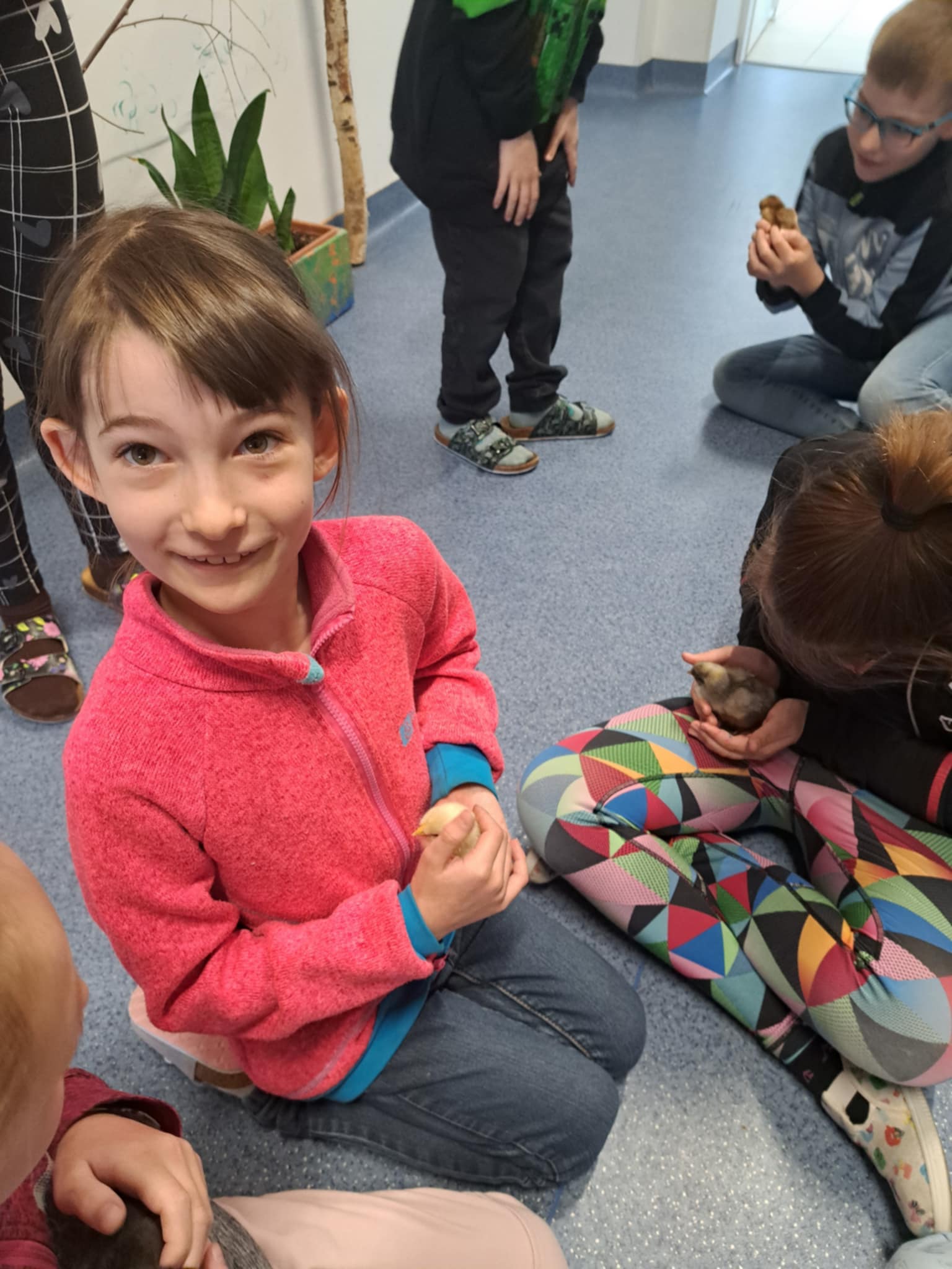 Nakonec si je všichni mohli pohladit a dozvědět se něco o tom, jak kuřátka rostou a co všechno potřebují.