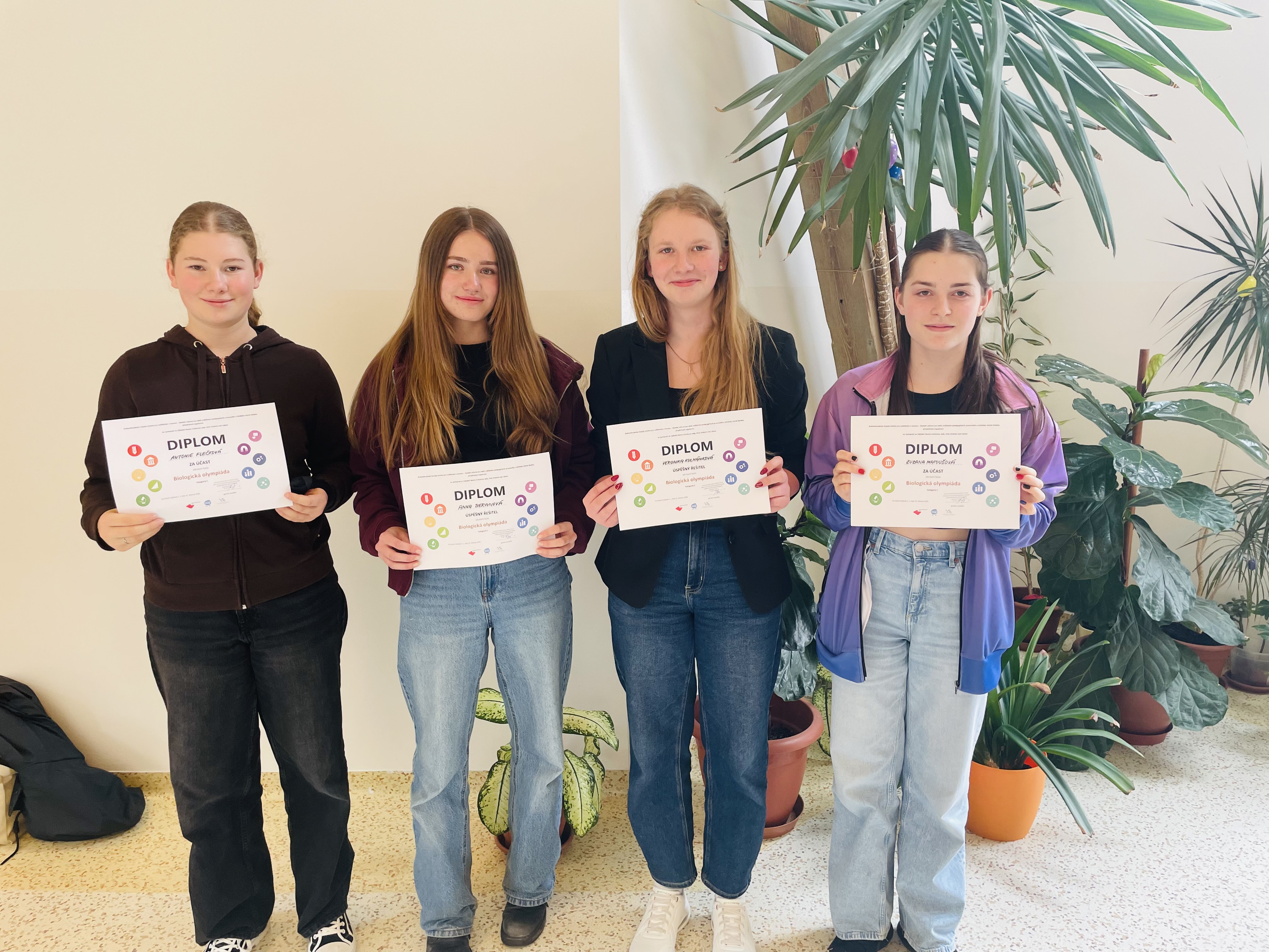 Mimořádného úspěchu dosáhla Anička Beranová, která obsadila 7. místo. Dále se holky umístily na 14. (Verča Kulhánková) a 16. (Antonie Flečková) místě a byly tak úspěšnými řešitelkami. Zuzka Matoušová obsadila krásné 31. místo z celého okresu. Holkám moc děkujeme za reprezentaci školy a s některými stálicemi se budeme těšit příští rok.
